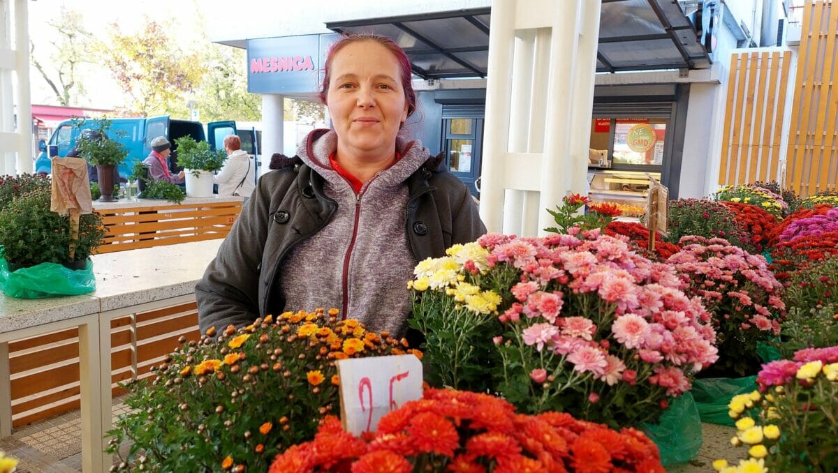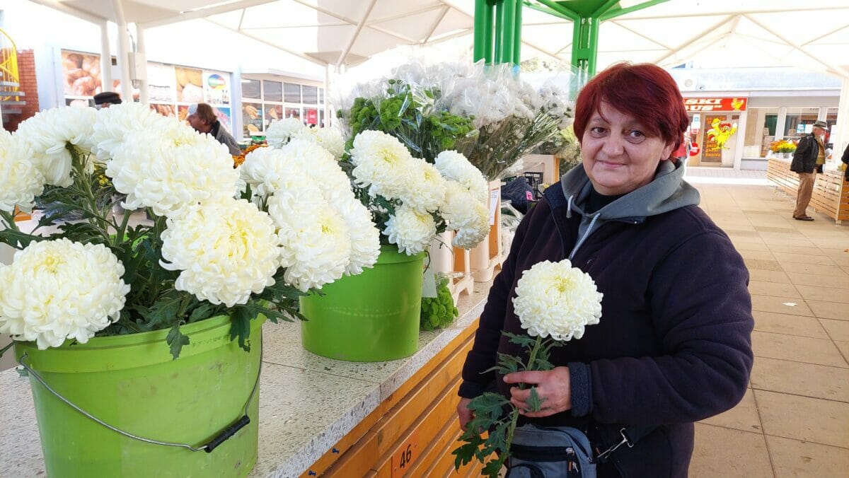 S njom se ne bi složila druga Ljiljana na tržnici, ona iz OPG-a Tkalčec, koja je prodavala rezano cvijeće – granu krizanteme šmit za 15 kuna, a buket krizantema za 35 kuna, uz dodatan adut u rukavu – kiselo zelje za 18 kuna po kilogramu.