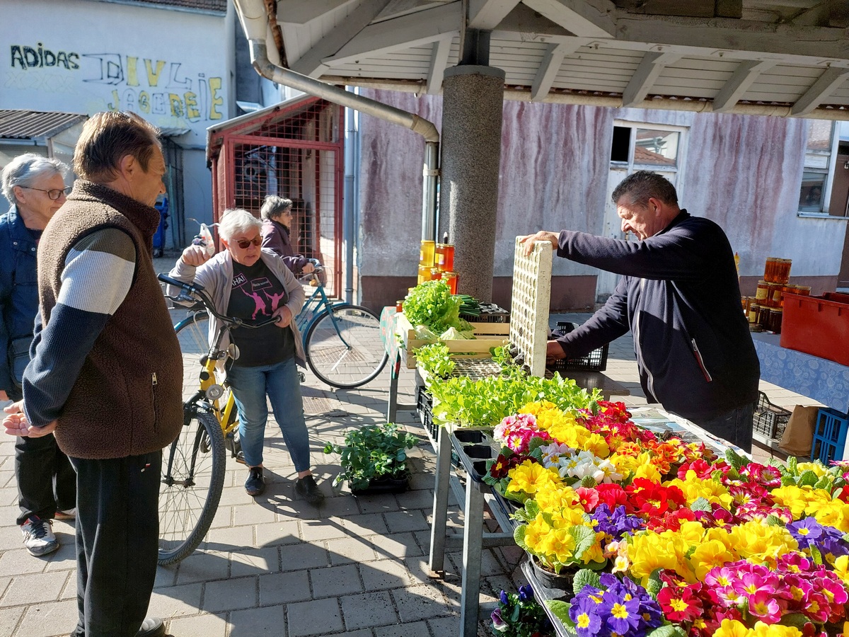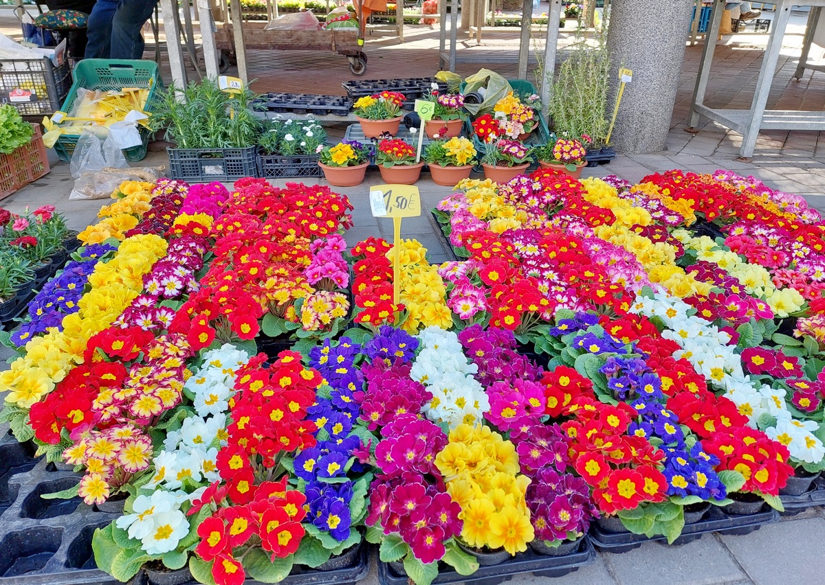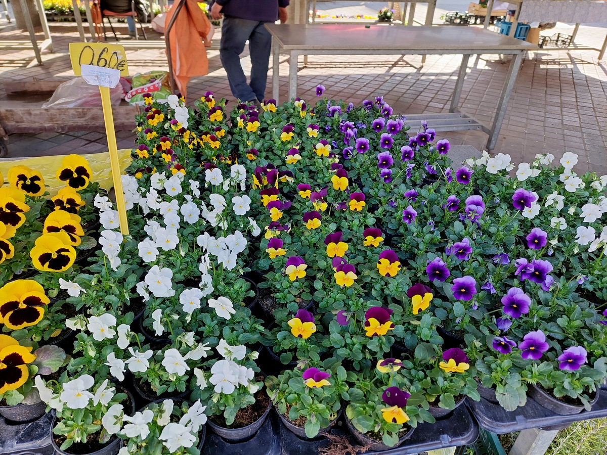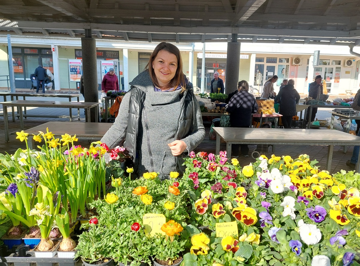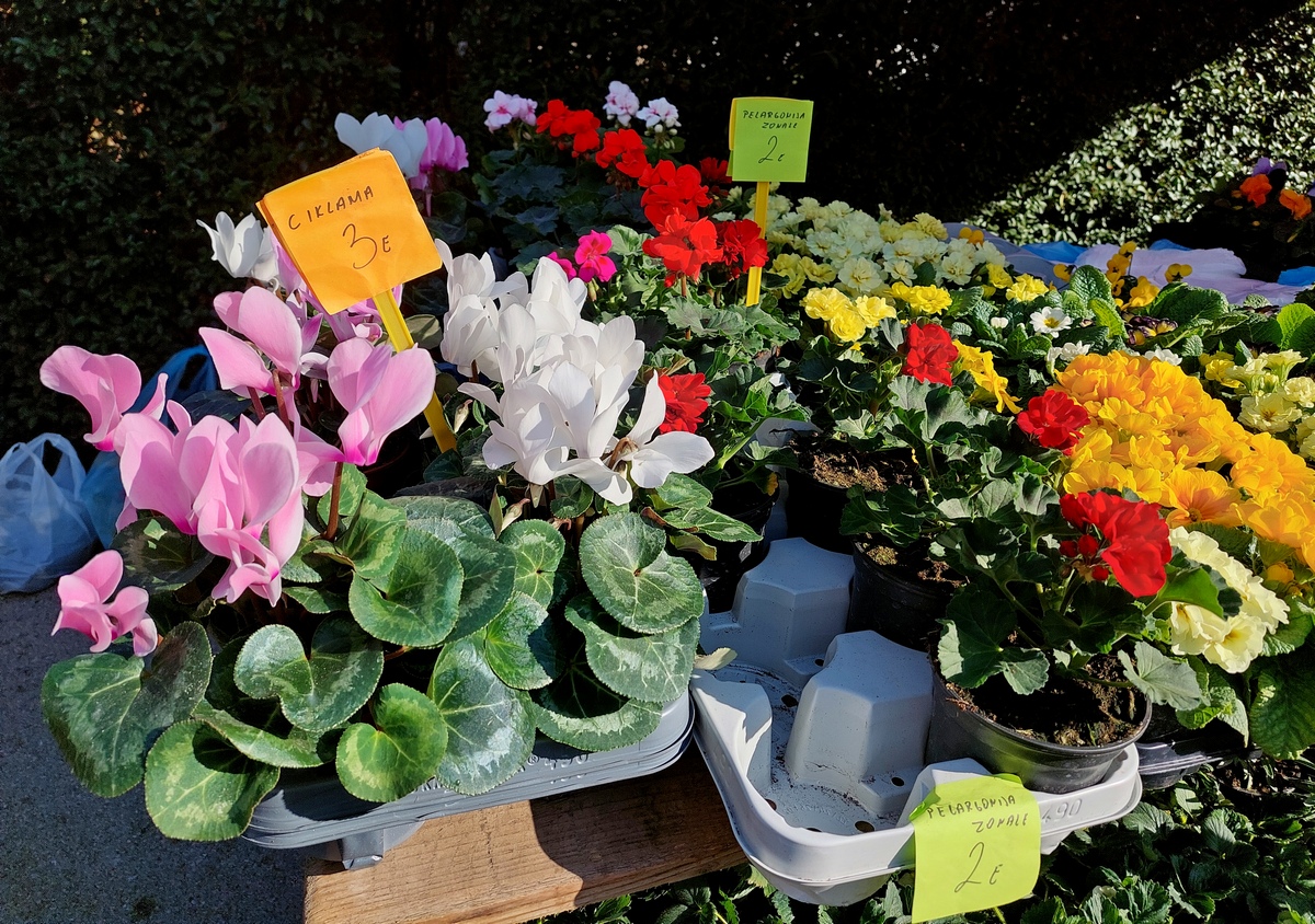 Ovdje ćete pronaći sadnice proljetnog cvijeća u raznim bojama, od jaglaca (1,50 eura), zumbula (2 eura), tratinčica (0,70 – 1 euro), karanfila (1,50 – 3 eura) do maćuhica (0,60 eura) i cikama (3 eura).
