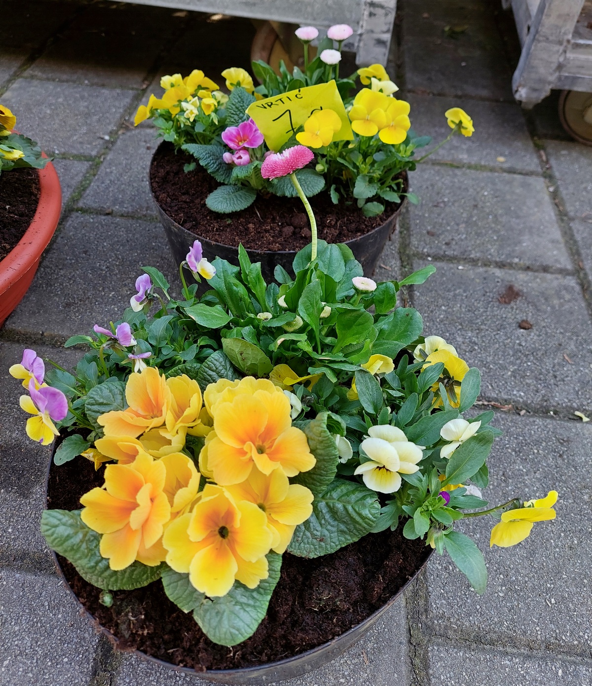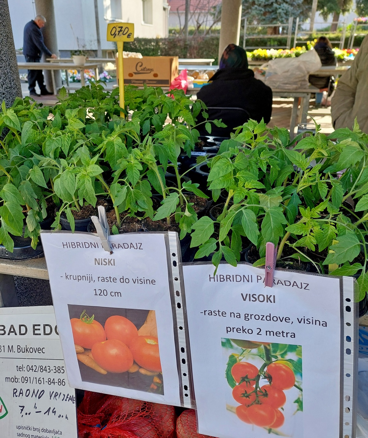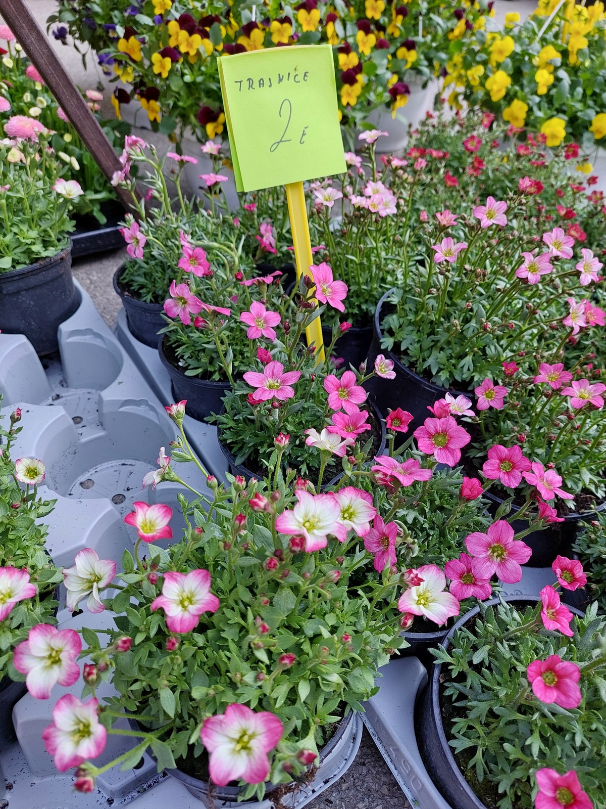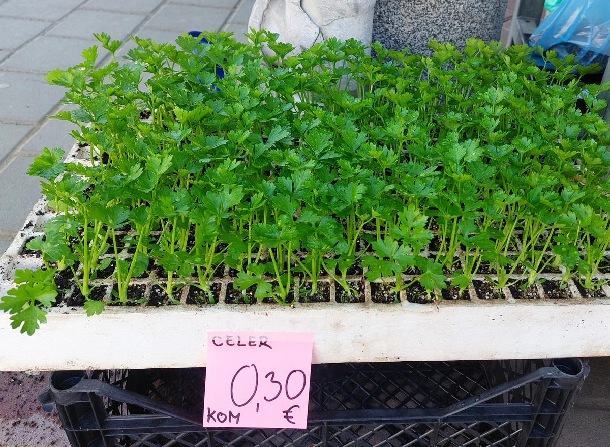Ovdje ćete pronaći sadnice proljetnog cvijeća u raznim bojama, od jaglaca (1,50 eura), zumbula (2 eura), tratinčica (0,70 – 1 euro), karanfila (1,50 – 3 eura) do maćuhica (0,60 eura) i cikama (3 eura).