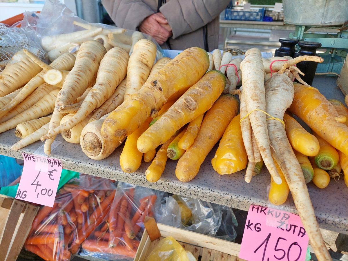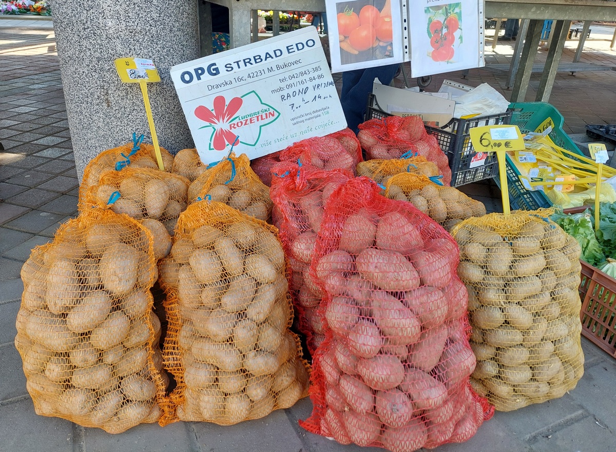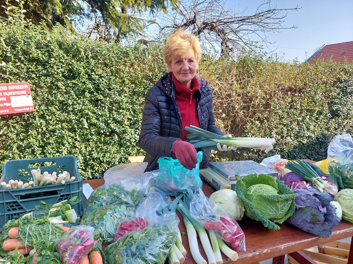 Krumpir u pakiranju od 10 kg prodaje se po cijeni do 6 do 10 eura, ovisno o sorti, glavica zelene salate kristalke 1,50 eura, zatim zelje i mrkva za 1,50 eura po kilogramu, vezica mladog luka 1,50 eura, paketić za grincajg 1,50 eura, celer 2 eura po kilogramu, pasternjak 4 eura po kilogramu te poriluk i kelj za 3 eura po kilogramu. Tu je i matovilac u pakiranju od 150 grama za 1,50 eura.