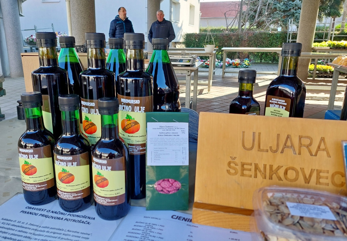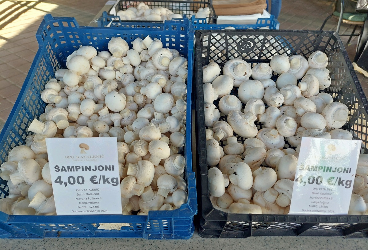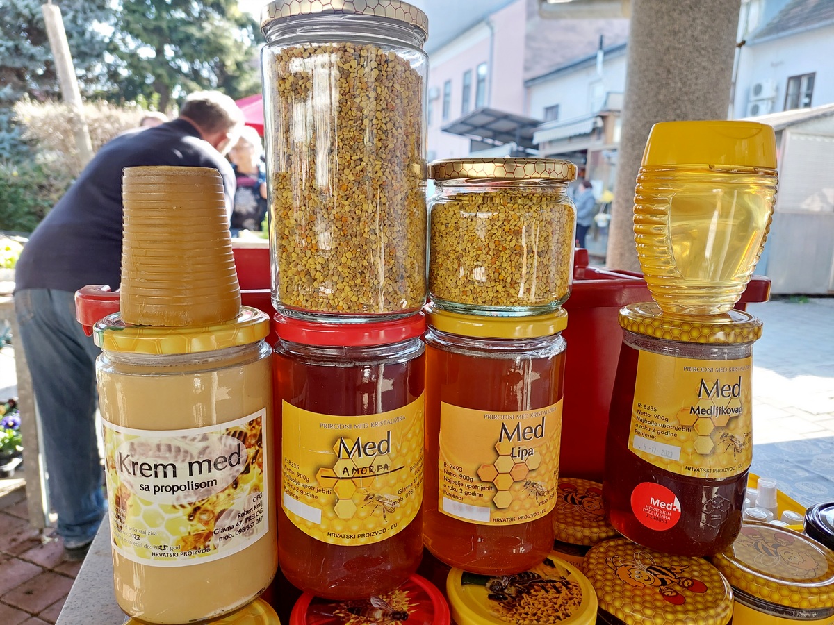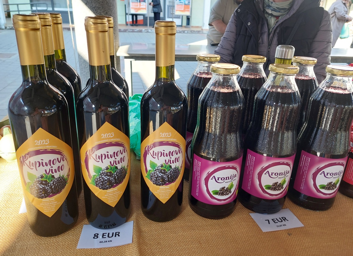 Tu je i velik izbor meda (u prosjeku veća staklenka je 10 eura), kupinovo vino (8 eura), sok od aronije (7 eura), džem od kupina ili jagoda (4 eura), kukuruzno brašno (1,5 eura/kg), bučino ulje (1 lizra za 20 eura), bijeli šampinjoni (4 eura po kilogramu) te razne vrste tjestenine i mlinci (po 2 eura).