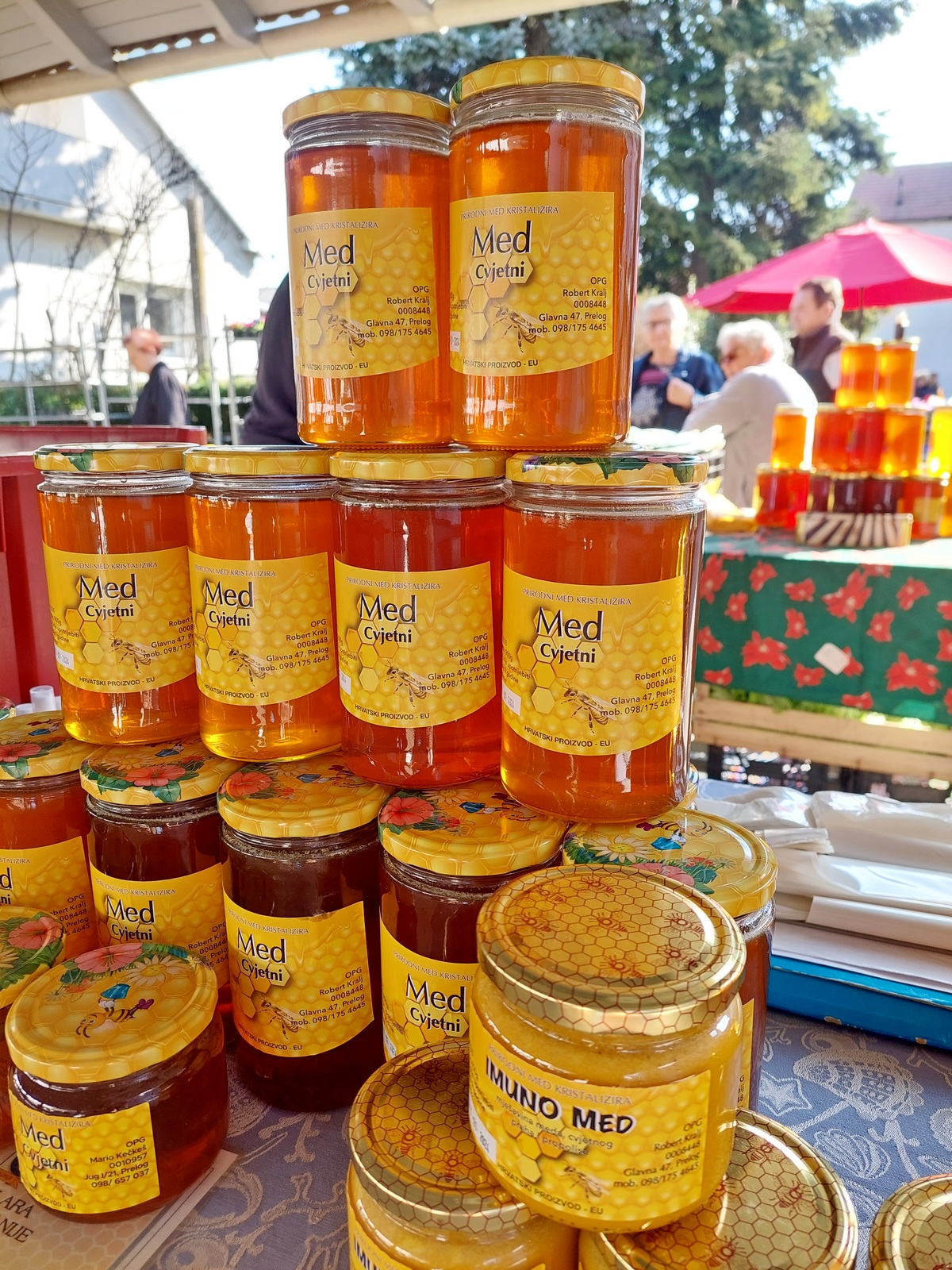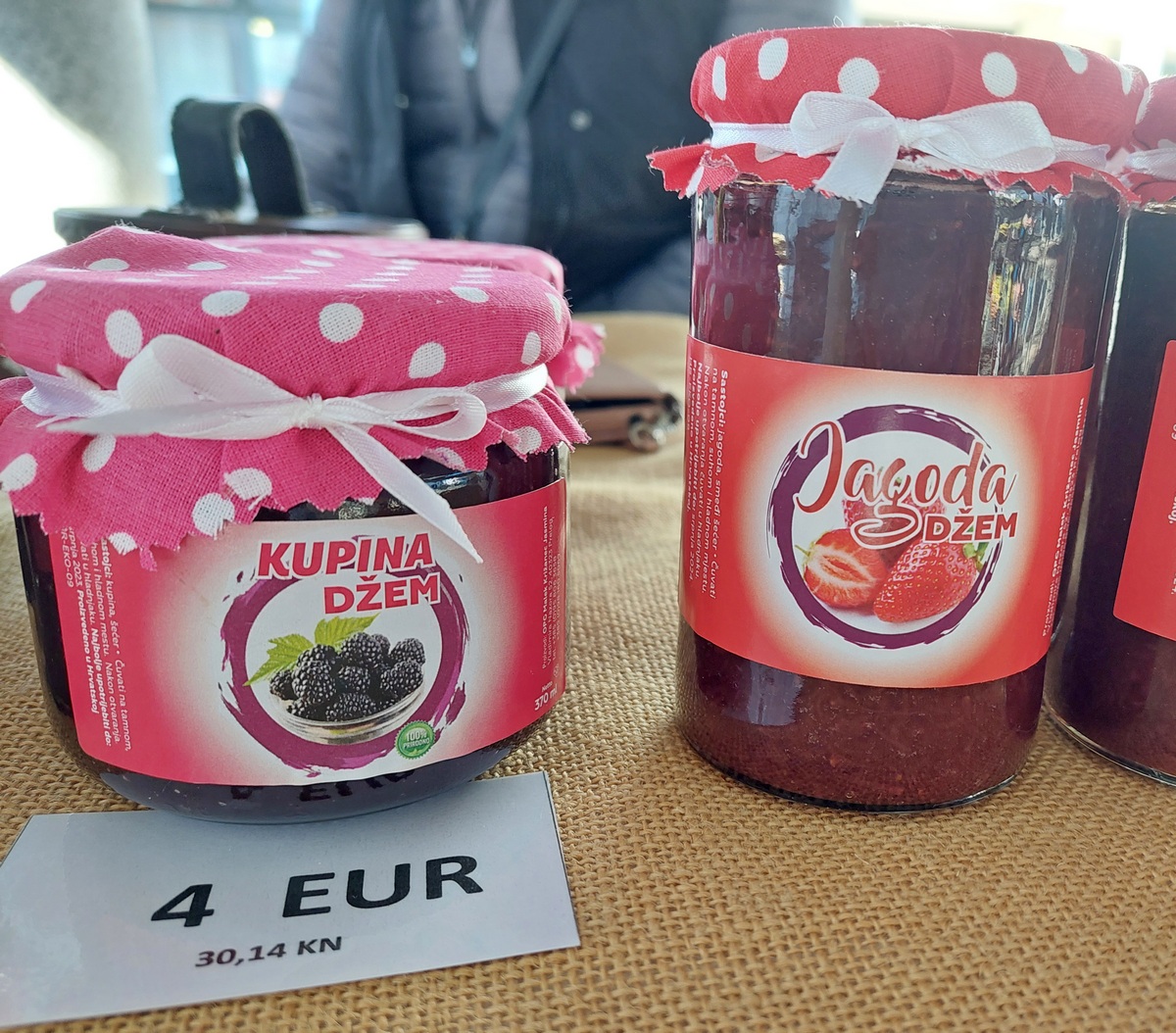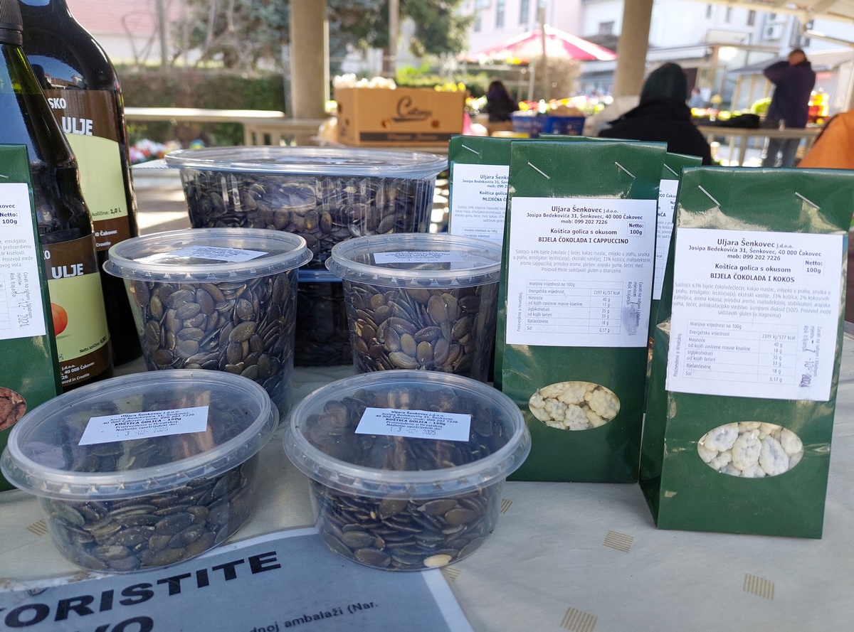 Tu je i velik izbor meda (u prosjeku veća staklenka je 10 eura), kupinovo vino (8 eura), sok od aronije (7 eura), džem od kupina ili jagoda (4 eura), kukuruzno brašno (1,5 eura/kg), bučino ulje (1 lizra za 20 eura), bijeli šampinjoni (4 eura po kilogramu) te razne vrste tjestenine i mlinci (po 2 eura).
