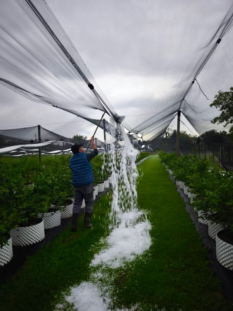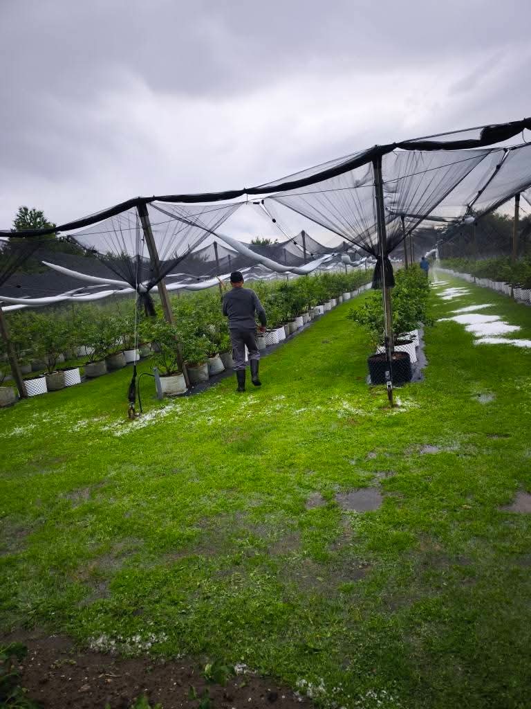 Nevrijeme je u utorak poslijepodne zahvatilo dijelove Međimurja, a najviše štete zabilježeno je u Knezovcu, gdje je padala tuča. Na udaru se našla i plantaža borovnica i aronije OPG-a Car, čiji su vlasnici na društvenim mrežama podijelili fotografije ledom prekrivenog nasada.