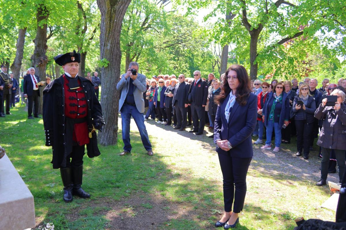 „Hrvatska je bila svedena na „ostatke ostataka nekad slavnog hrvatskog kraljevstva“, otomanske snage pod svojom vlašću držale su gotovo cijeli europski istok i jugoistok, a naše plemstvo borilo se za očuvanje svojih posjeda i vlastiti opstanak. Bili su to događaji su to o kojima su ispričane mnoge priče, ispjevane pjesme, a poginuli junaci uzdignuti među hrvatske nacionalne velikane. Njihova borba i tragična sudbina nadahnula je generacije hrvatskih domoljuba i boraca za nacionalnu slobodu i samostalnost. Vremena danas su drugačija. Hrvatska i Austrija prijateljske su zemlje, članice jedinstvenog europskog demokratskog prostora. Povijesne sukobe, poput ovog u kojem su stradali Zrinski i Frankopan prepustili smo povjesničarima, no ne zaboravljamo ih.“, kazala je gradonačelnica Cividini.