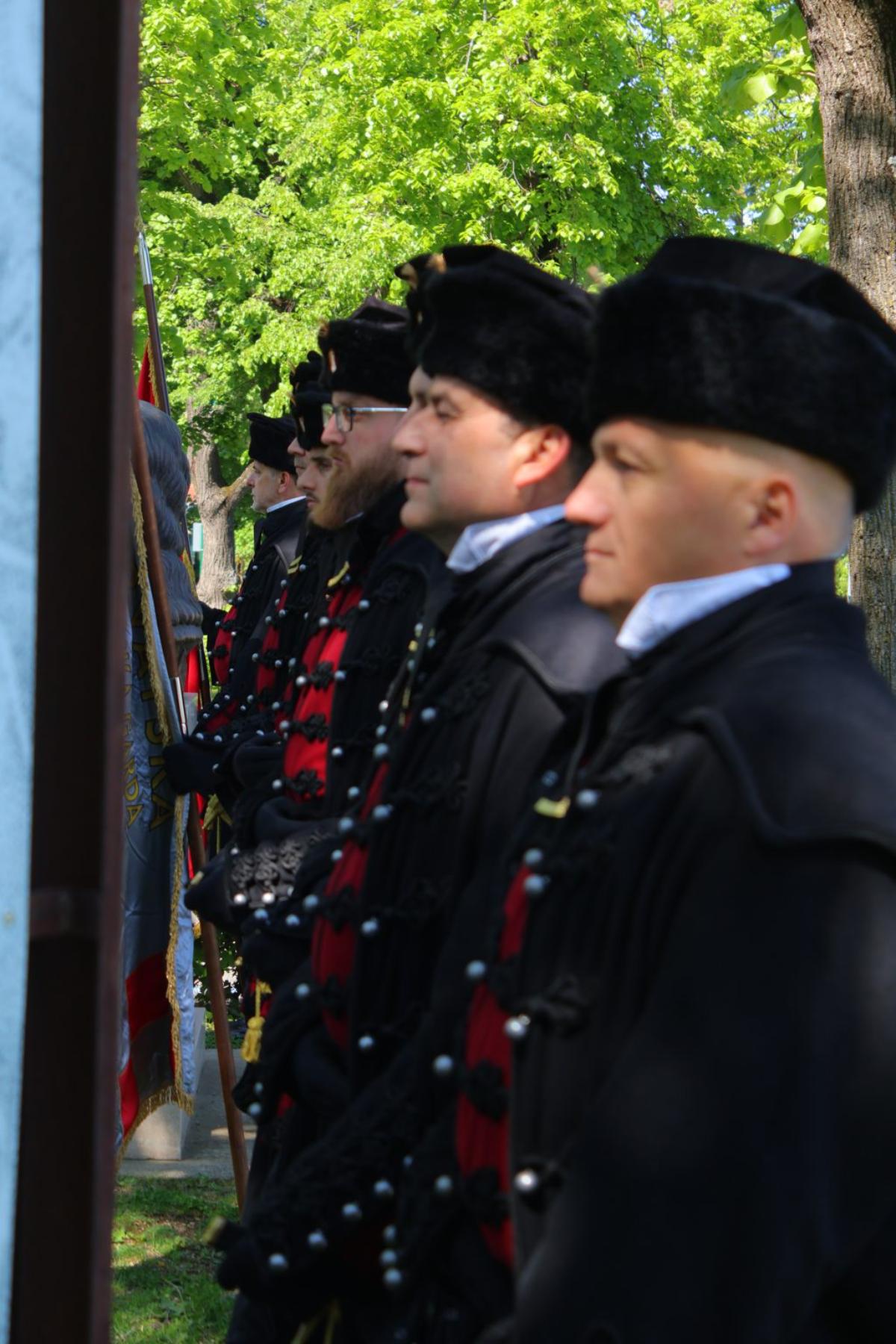 Svečanost održana ove nedjelje započela postrojavanjem gardista, svečanim mimohodom te polaganjem vijenaca i paljenjem svijeća kod spomenika Zrinskom i Frankopanu, u gradskom parku Bečkog Novog Mjesta.