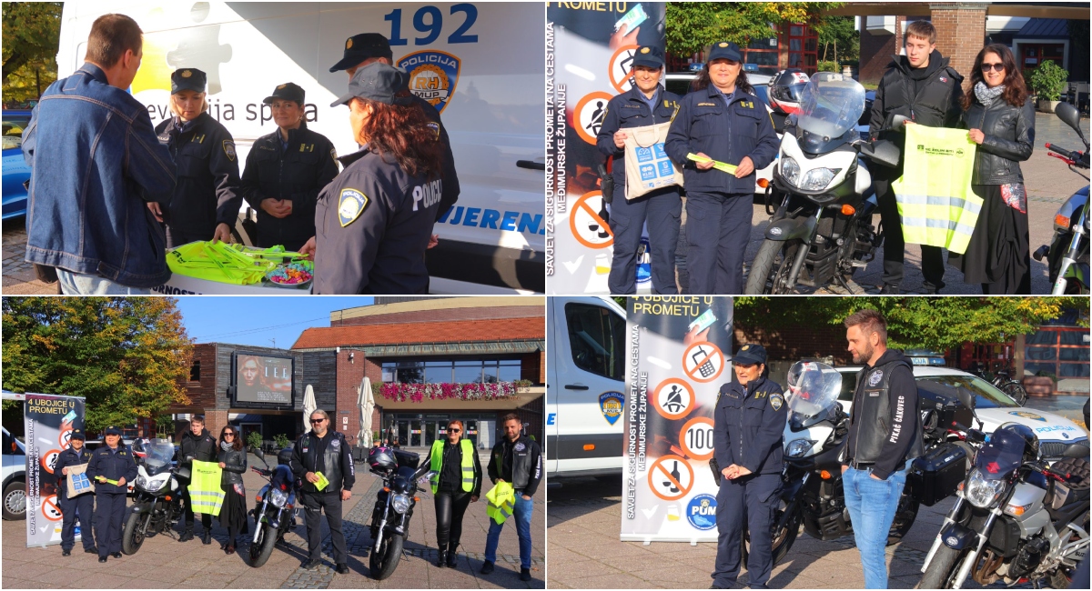 Tim povodom na čakovečkom Trgu Republike policijski službenici Policijske uprave međimurske provodili su preventivno-edukativne i promidžbene aktivnosti o sigurnom sudjelovanju motociklista u prometu uz neposredan kontakt s posjetiteljima te su promicali poželjno i sigurno ponašanje motociklista u prometu. Na postavljenom info-pultu dijelili su promidžbene materijale 5. Nacionalnog dana sigurnosti cestovnog prometa te su kroz razgovor savjetovali i upoznavali vozače, ali i ostale sudionike u prometu sa zakonskim propisima i ukazivali na posljedice prometnih nesreća, a podršku samom projektu i akciji dala je i gradonačelnica Grada Čakovca Ljerka Cividini.
