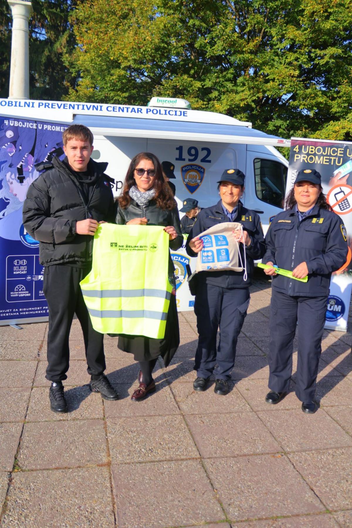 Tijekom preventivnih aktivnosti najsavjesnijim vozačima i putnicima u vozilima, kao i na samom Trgu Republike, uručeni su promidžbeni materijali pribavljeni sredstvima Nacionalnog plana sigurnosti cestovnog prometa (reflektirajući prsluci i trakice, prigodni privjesci) i Vijeća za prevenciju grada Čakovca (bljeskalice i torbe) te prigodni letci “Čuvajte život, vežite pojas”, “Biciklisti pažnja”, “Autosjedalica uvijek i bez iznimke”, “Pješaci sigurno u prometu”.