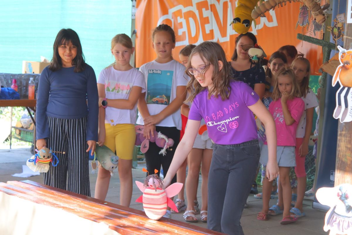 Lutkarska radionica bila je posvećena kukcima u obliku stolnih lutaka. Djeca su u jedinstvenom prostoru Vrteka svaki dan stvarala neki svoj svijet, ali i istraživala onaj postojeći nekad i ne vidljiv golim okom. Uz pomoć voditelja izrađivali su lutke prema vlastitim crtežima, „nacrtima“. Također, kroz samu radionicu prošli su pregršt lutkarskih igara i vježbi te savladali osnove lutkarske tehnike stolnih lutaka. Pred kraj kampa zajednički su stvorili kratki scenski prikaz s lutkama, gdje je njihova mašta i „igrivost“ u potpunosti došla do izražaja.