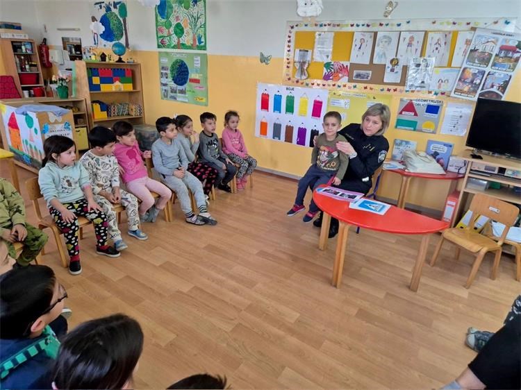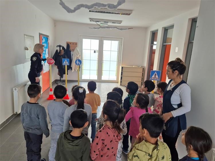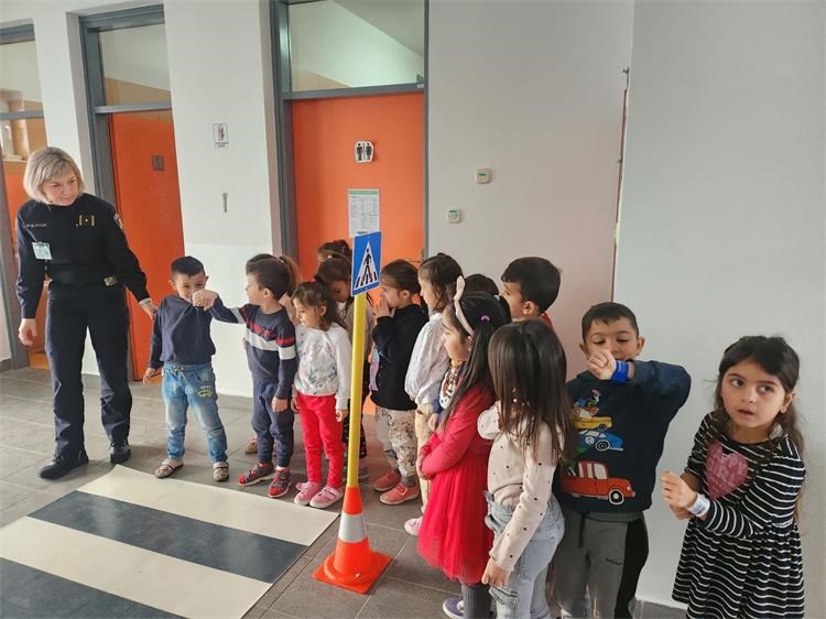 Akcija je započela interaktivnim predavanjem policijske službenice. Djeca su sa zanimanjem slušala o osnovnim pravilima ponašanja na cestama, kako prelaziti cestu, što znači svjetlo na semaforu, kako se voziti u automobilu i zašto je važno uvijek biti pažljiv. Policijska službenica na jednostavan i djeci primjeren način objasnila im je što znače osnovni prometni znakovi, poput znaka za pješački prijelaz, pješačku i biciklističku stazu, kao i znak stop.