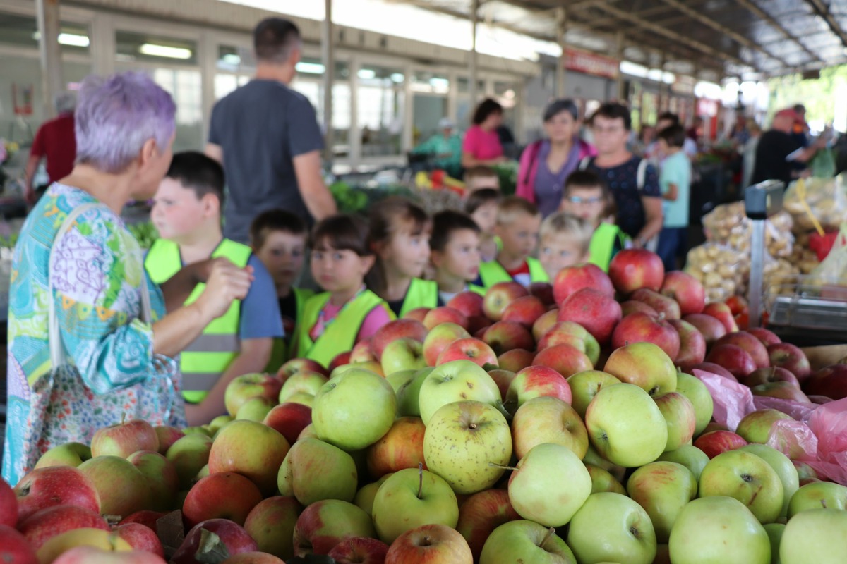 FOTO U edukativnoj šetnji tržnicom osnovnoškolci i vrtićarci učili o zdravoj hrani i proizvodima podravskih polja