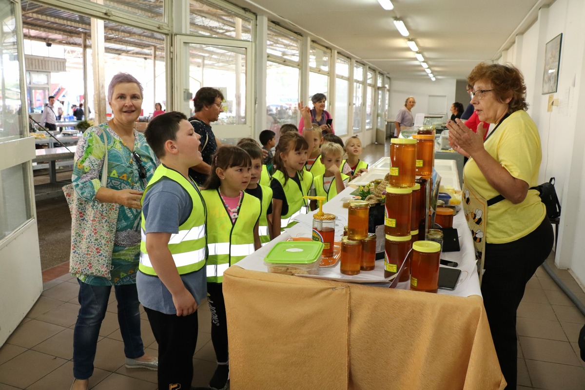 U sklopu Europskog tjedna mobilnosti na gradskoj tržnici u Koprivnici održana je edukativna šetnja za učenike i vrtićarce. U posjet su najprije došli učenici 7.e razreda OŠ Braća Radić sa svojom razrednicom Ines Vađunec, a kasnije skupina Špekulice iz Dječjeg vrtića Tratinčica. Djeca su prošetala kroz plac, vidjela raznoliku i svježu ponudu voća, povrća i cvijeća, a i sami su rekli kako njihovi roditelji imaju povrtnjake te sami rade zimnicu. Na štandu s medom i pčelarskim proizvodima degustirali su pravi podravski med, a naučili su i ponešto o svetom Ambroziju, zaštitniku pčelara.