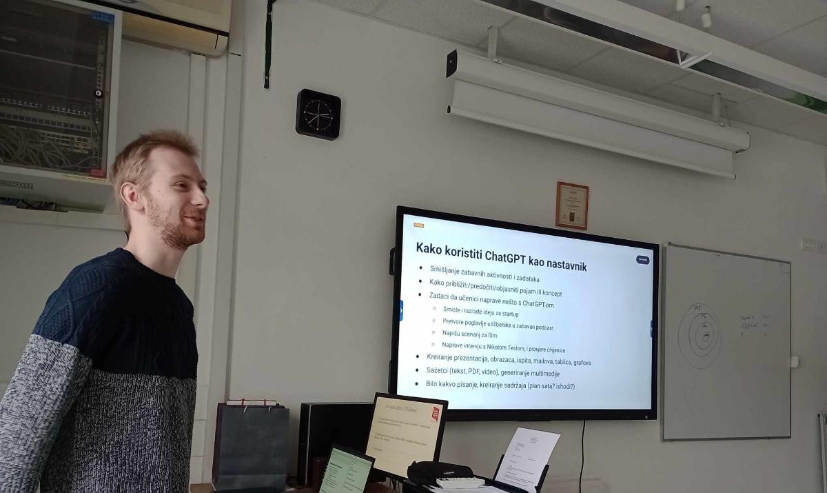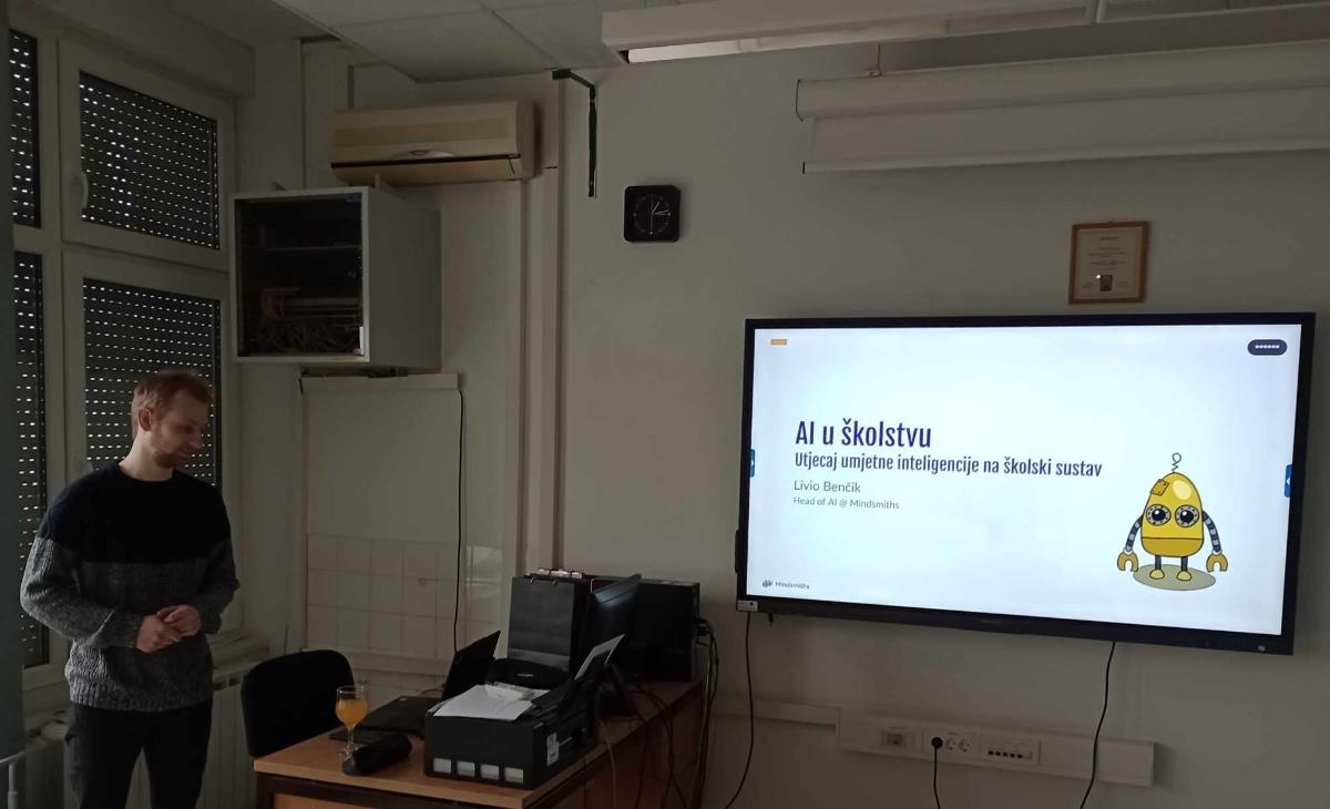 Prvi dio skupa pod nazivom Utjecaj umjetne inteligencije na školski sustav vodio je Livio Benčik – voditelj odjela umjetne inteligencije u Mindsmiths Inc., koji je kroz predavanje i radionicu objasnio načela rada umjetne inteligencije, kako koristiti umjetnu inteligenciju kao alat u novim kurikulima te kako koristiti znanja sa stručnog skupa u radu s učenicima.