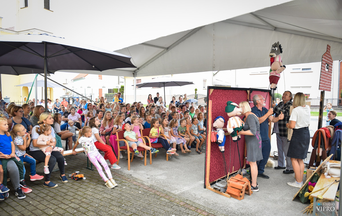 U poslijepodnevnim satima, najmlađi su mogli uživati u predstavi „Tri praščića“, u izvedbi Kazališta Lectirum. Ova predstava, inspirirana narodnom pričom, kombinacija je lutkarske i igrane izvedbe s glumcem koji pripovijeda radnju te s djecom, i svom ostalom publikom, komentira pojedine scene. Predstavu je dramatizirao i režirao Mladen Čutura, koji u predstavi i glumi, dok su svojim glasovima lutke oživjeli: Ksenija Pajić, Katarina Perica Kirin i Pero Juričić.