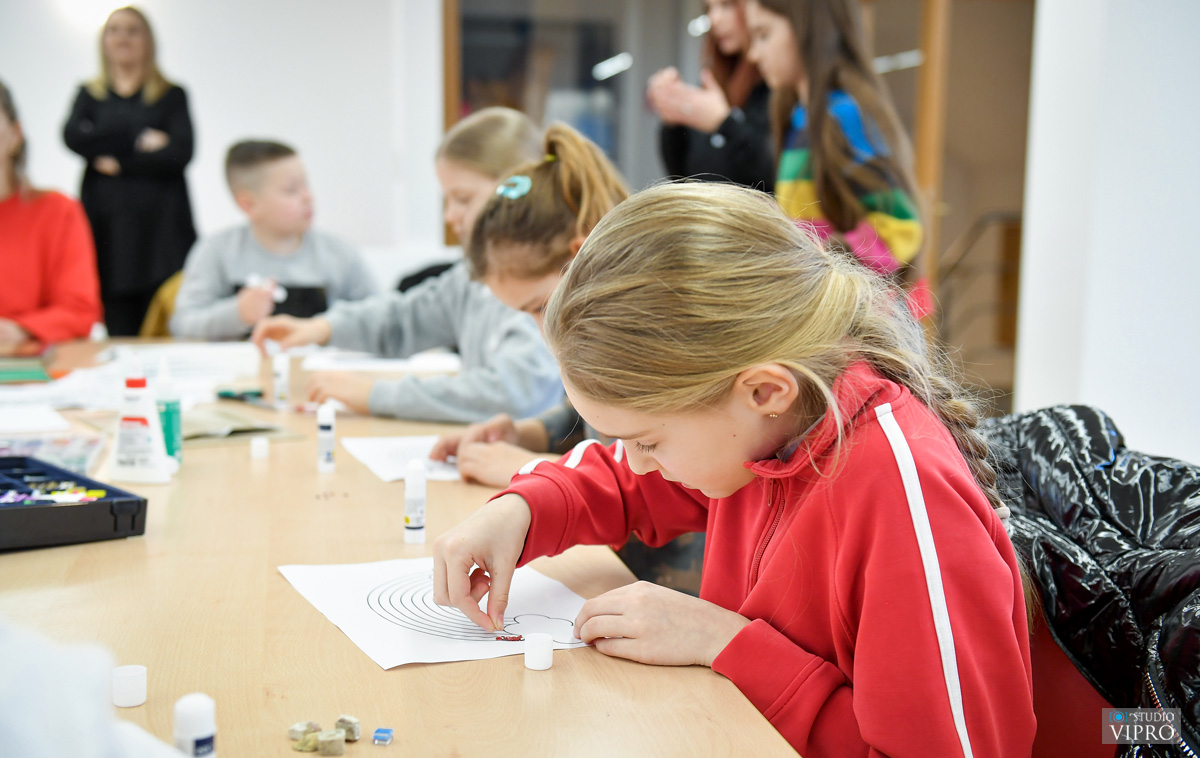 Nakon edukativnog dijela, uslijedio je praktični i kreativni segment radionice, u kojem su polaznici radionice izrađivali vlastite mozaike koristeći raznobojni papir, cirkone i ukrasne kamenčiće. Cilj radionice bio je približiti djeci ovu posebnu umjetničku tehniku koja je danas sve rjeđe prisutna u svakodnevnom životu, a istovremeno potaknuti njihovu kreativnost i razvijati finu motoriku kroz zabavan i inspirativan rad. Radionica je ujedno bila prva u ciklusu radionica nastalih u suradnji Muzeja Croata insulanus i Kreativne agencije Međjimurje.jpg, a kojima se nastoji potaknuti djecu da praznike provode na kreativan i produktivan način.