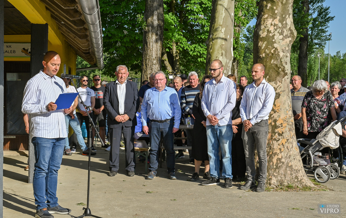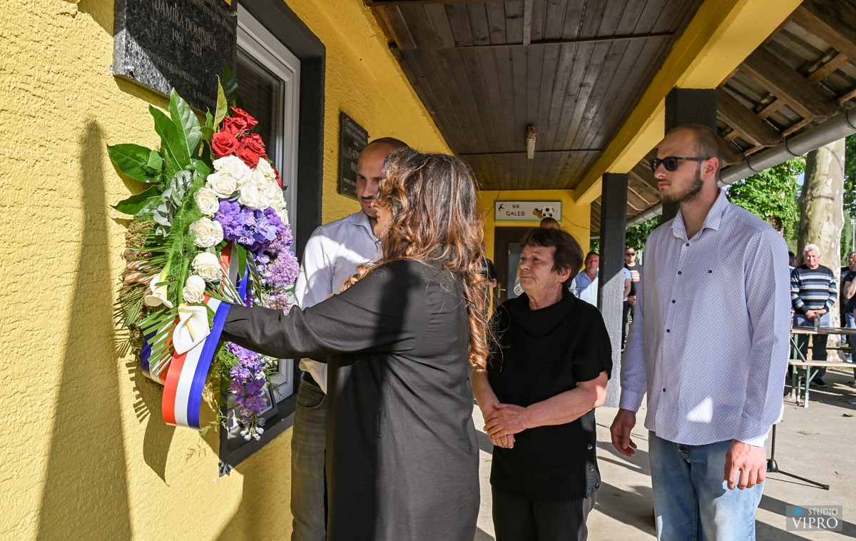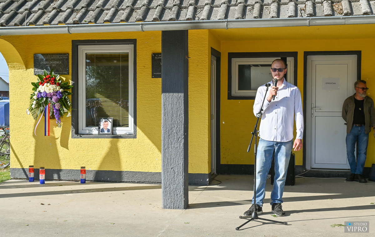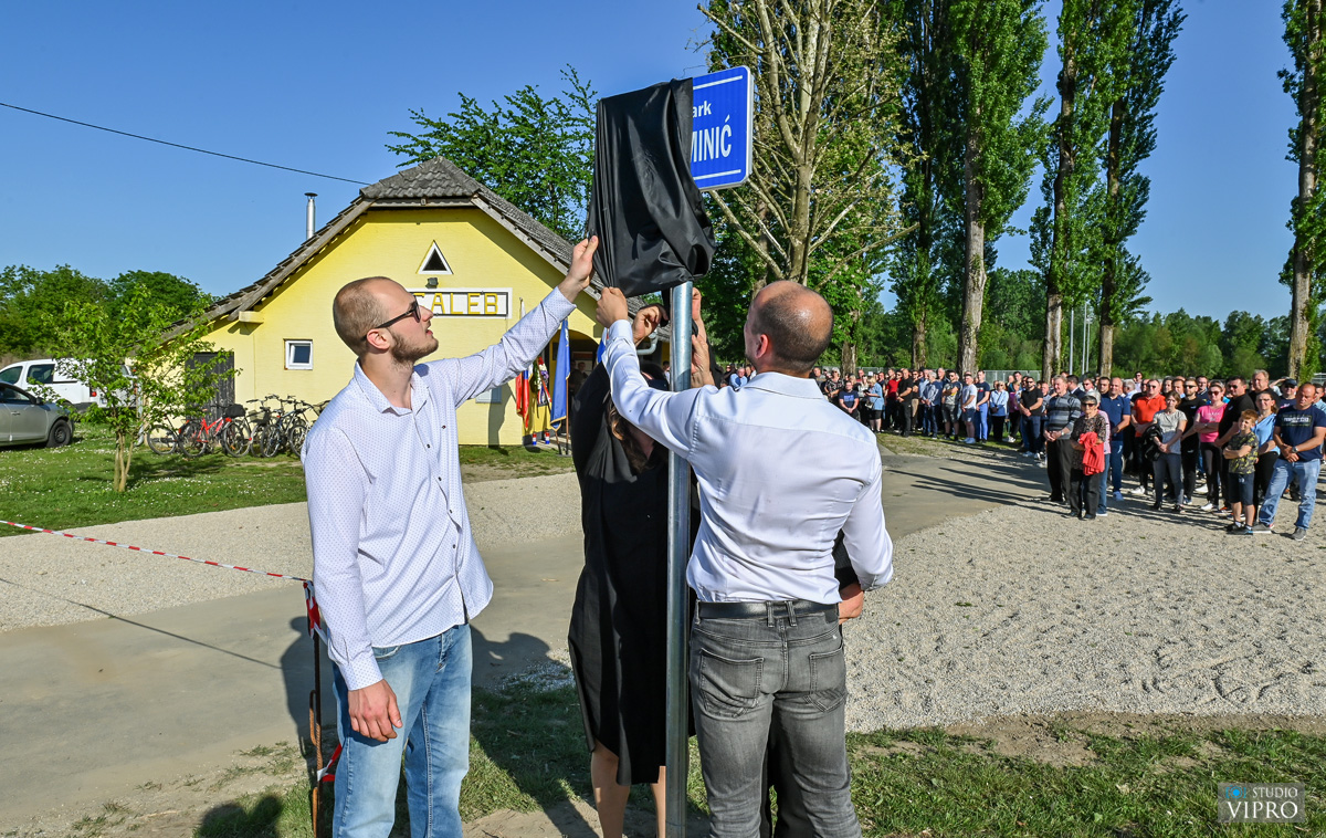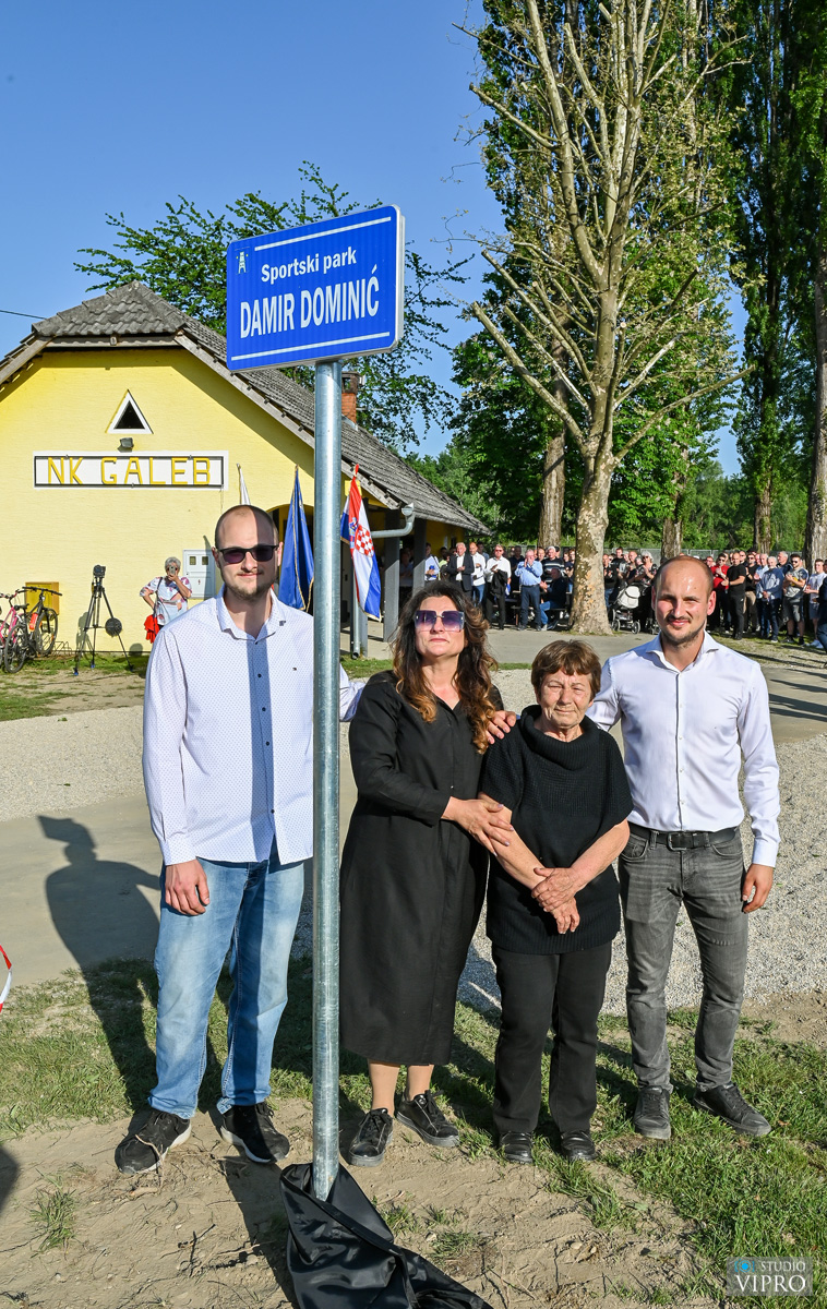 Svima su se kratko obratili Ivan Sokač, ispred Nogometnog kluba Galeb iz Oporovca te gradonačelnik Ljubomir Kolarek. U ime obitelji svima se zahvalio Martin Dominić, a nakon toga, uz himnu Galeba, članovi obitelji, mama Anđela, supruga Suzana te sinovi Luka i Martin, simbolično su otkrili ploču s nazivom „Sportski park Damir Dominić“ te prigodnom sadnjom drveta obilježili ovaj dan.