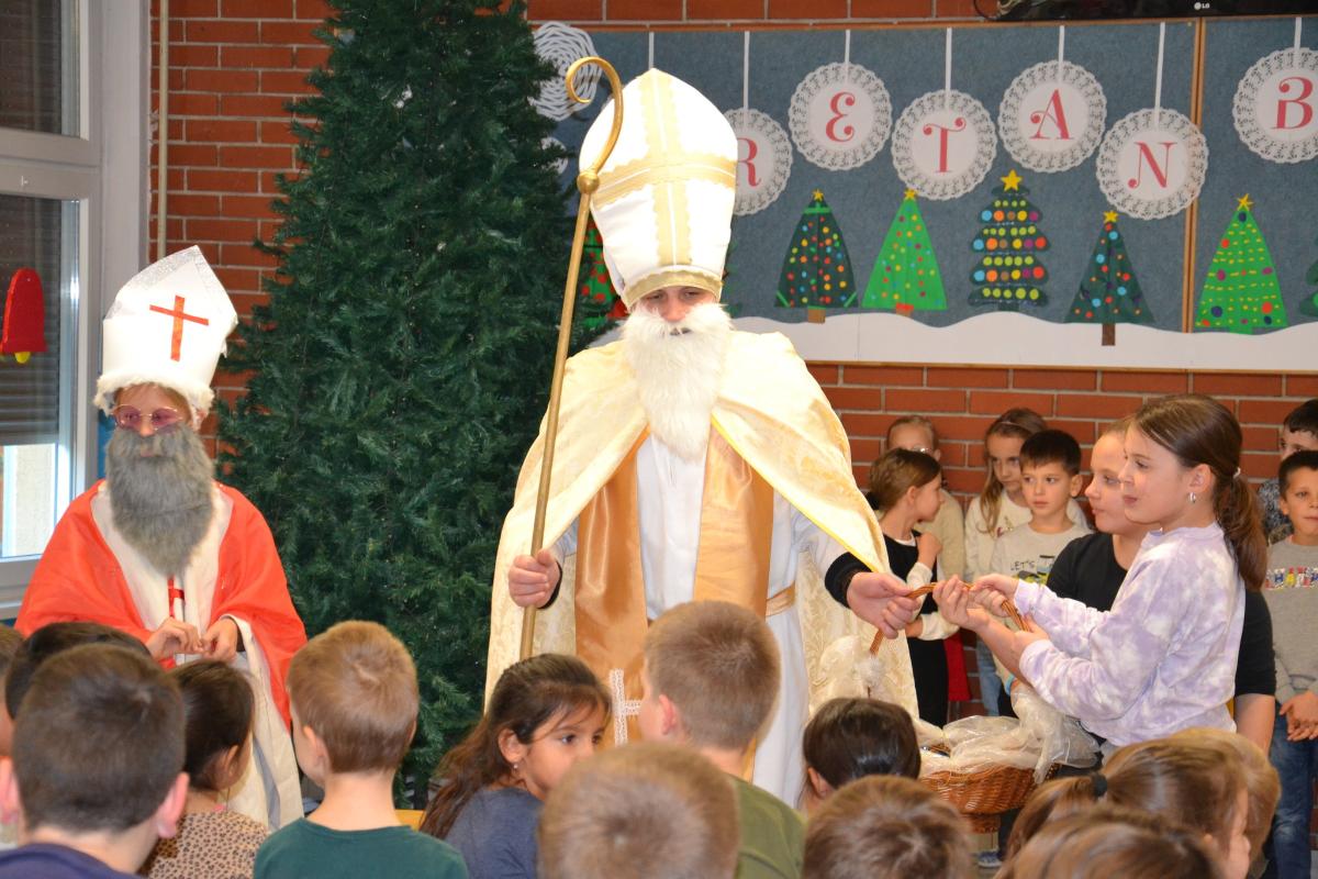 – Ove godine, uz veselje i radost, naši učenici i učitelji proslavili su njegov dolazak na poseban način. Sv. Nikola posjetio je našu školu i obradovao sve prisutne, donoseći poklone učenicima i učiteljima. Pokloni nisu bili samo materijalni, već su nosili i snažnu poruku ljubavi, zajedništva i međusobnog poštovanja. Na taj način svi su se podsjetili koliko je važno biti ljubazan, darežljiv i spreman pomoći onima koji nas okružuju. Uz podjelu poklona, sv. Nikola je uputio i nekoliko pozitivnih poruka, potičući učenike da budu dobri i odgovorni, kako prema sebi, tako i prema drugima. Ovaj dan bio je prilika za sve nas da se podsjetimo na vrijednosti koje nas povezuju i na važnost zajedništva u našoj školskoj zajednici.