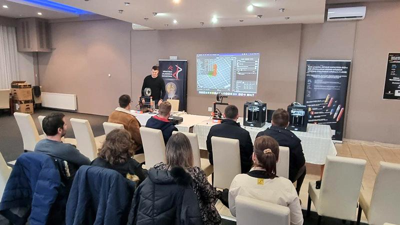 Na radionicama su predavači polaznicima u prvom djelu prezentirali teorijski dio i upoznavanje sa programima potrebnim za crtanje i pripremu 3D modela (za 3D printere Wanhao i Prusa) gdje su ujedno bili upoznati i sa raznim vrstama filamenta dok je drugi dio namijenjen praktičnom korištenju i samom isprintu modela na 3D printerima gdje su se prije svega printali zaštitni viziri koji su bili prijeko potrebni medicinskim radnicima u vrijeme COVID-19 krize, a ujedno su polaznici mogli printati modele i figure po svojem odabiru.
