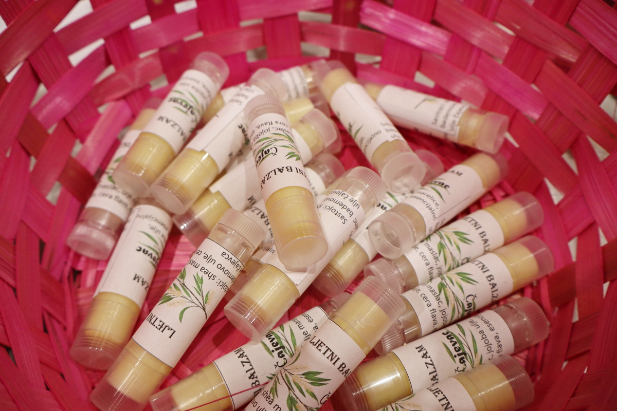 – Svake godine proširujemo naše ideje, krenuli smo sa sapunima, pa smo se okrenuli na ekstrakciju eteričnih ulja iz bilja i sad su nam najtraženiji balzami za usne na bazi ulja jojobe i karite maslaca s kvalitetnim esencijalnim eteričnim uljima, kao što su ružino drvo, slatka naranča, grejp, egipatski geranij i dr. – opisuje Dorotea Žvorc, koja u OŠ Donji Kraljevec s djecom izrađuje i sirup od maslačka, gavezovu mast i dr. Nedavno su izumili i čaj od 7 vrsti mente koji je postao veliki hit.
