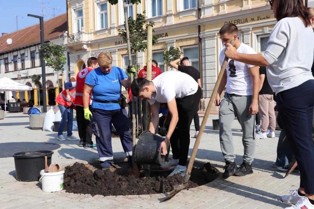 Učenici 4.b razreda Gimnazije Fran Galović sa svojom razrednicom Kristinom Bukvić i djelatnicima Komunalca obilježili su Europski tjedan mobilnosti sadnjom novih stabala koja će krasiti Zrinski trg.