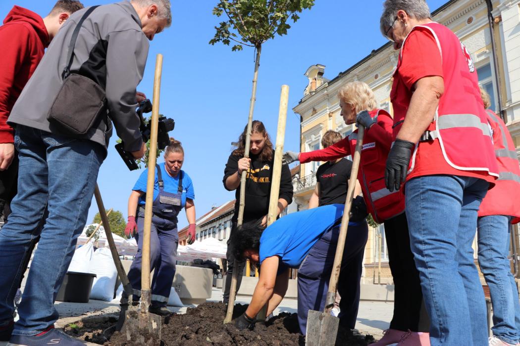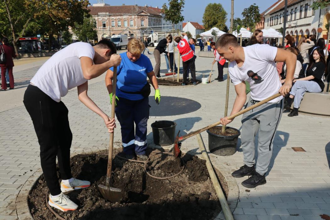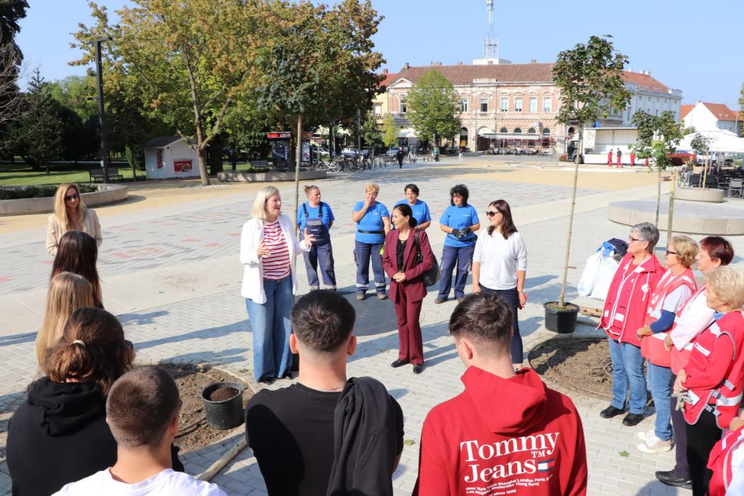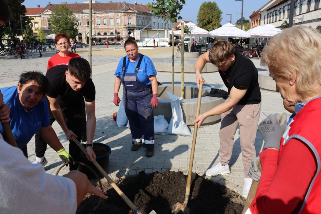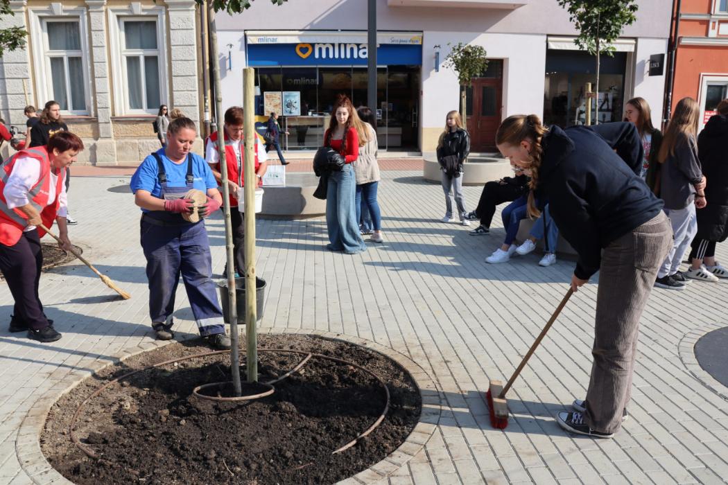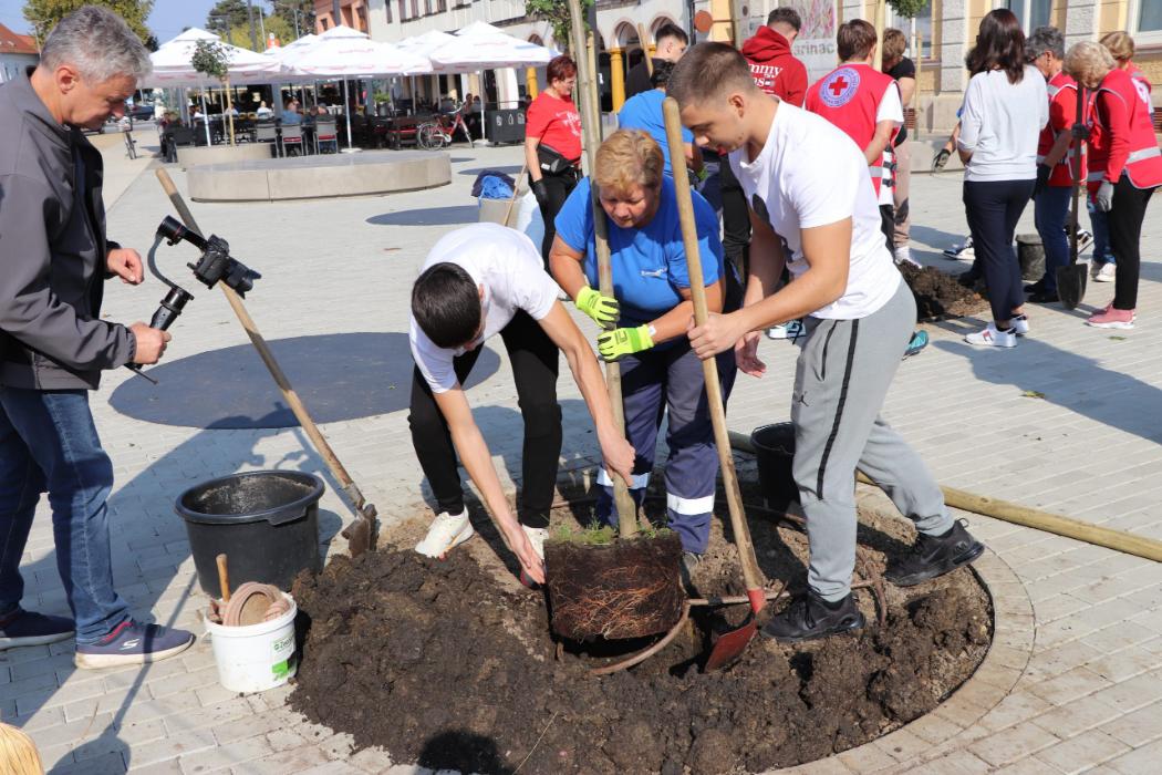 Učenici 4.b razreda Gimnazije Fran Galović sa svojom razrednicom Kristinom Bukvić i djelatnicima Komunalca obilježili su Europski tjedan mobilnosti sadnjom novih stabala koja će krasiti Zrinski trg.