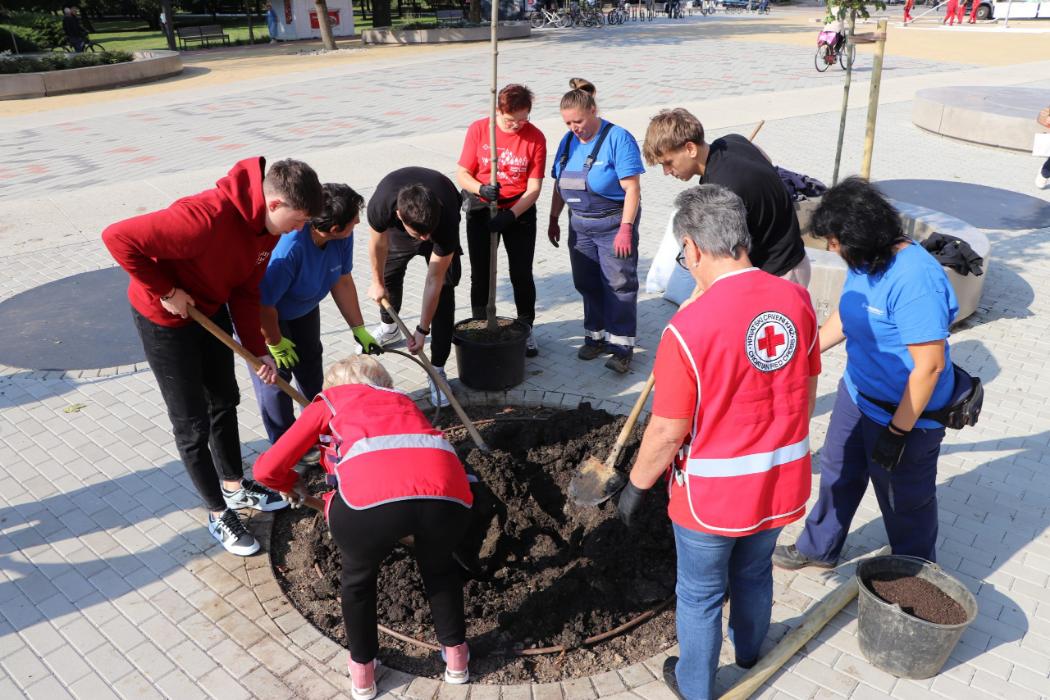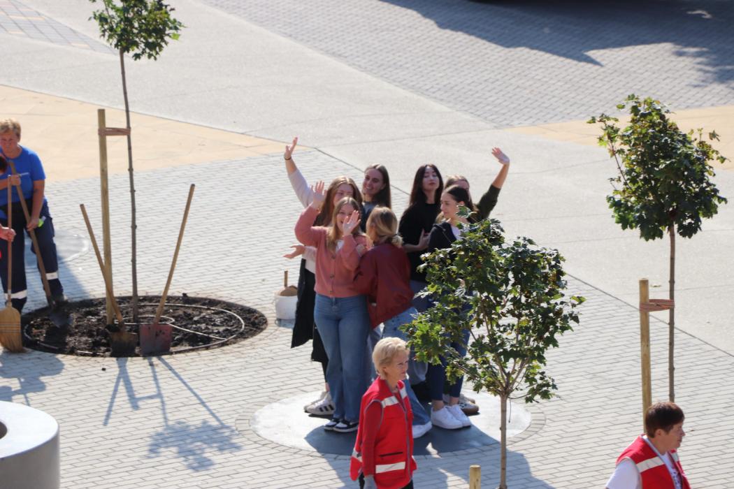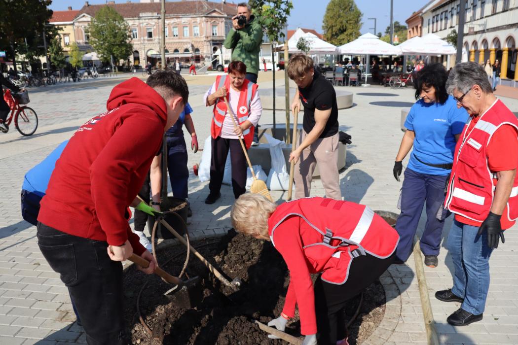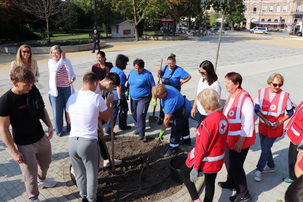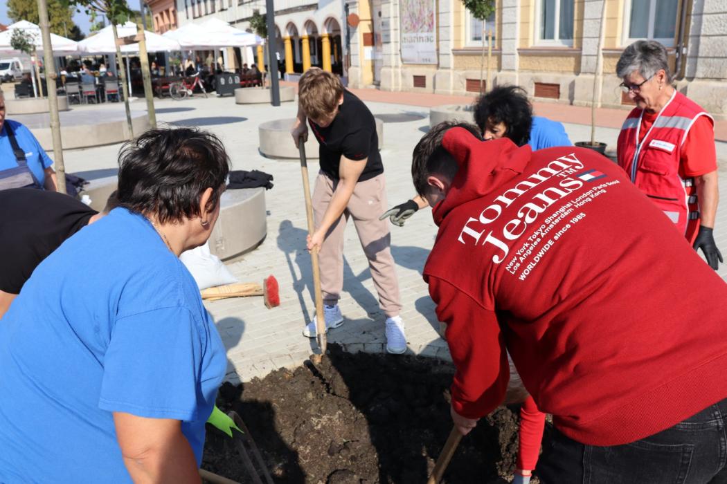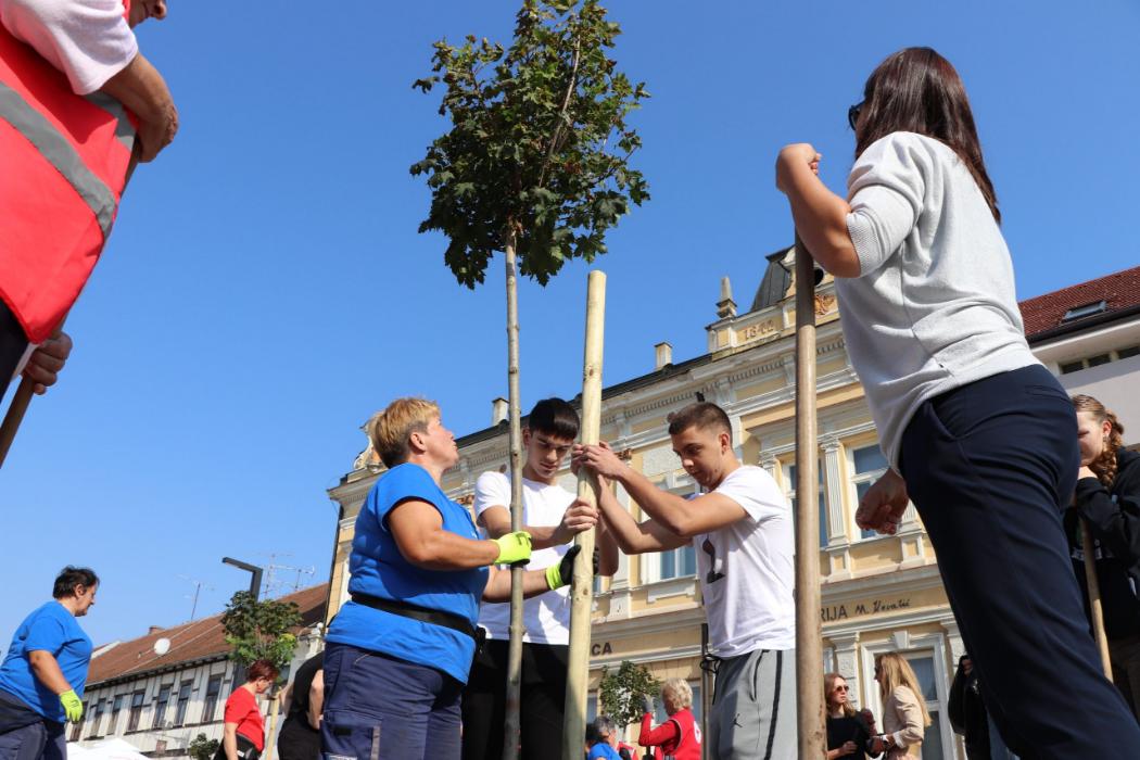 Učenici 4.b razreda Gimnazije Fran Galović sa svojom razrednicom Kristinom Bukvić i djelatnicima Komunalca obilježili su Europski tjedan mobilnosti sadnjom novih stabala koja će krasiti Zrinski trg.