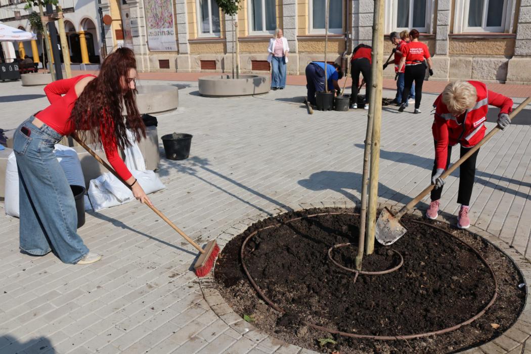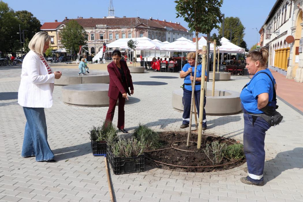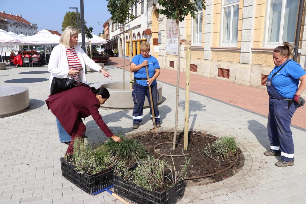 Uz pomoć zaposlenika zelenih površina u Komunalcu i članica Kluba umirovljenika Volonter penzioner, gimnazijalci su iskopali rupe, zasadili stabla te prihranili zemlju kompostom DomKo s Kompostane Herešin. Osim postojećih stabala koja nisu dirana tijekom rekonstrukcije trga, posađeno je 10 novih kuglastih javora koji će dodatno zazeleniti centar grada, a kombinacijom trajnica poput sibirske lavande, bijele i crvene gaure i ukrasnih japanskih trava popunit će se ostatak zelene površine na trgu, tako da će građani uživati u potpuno novom izgledu našeg glavnog gradskog trga.