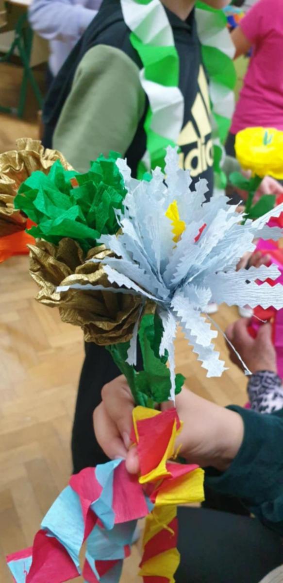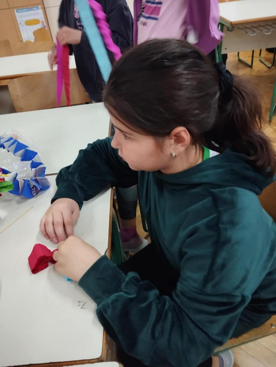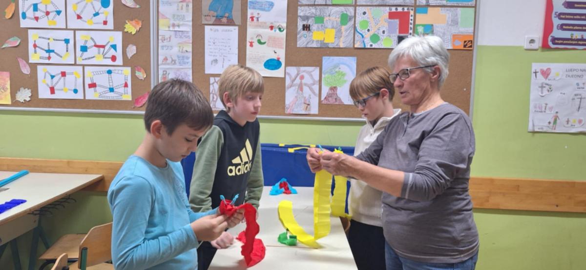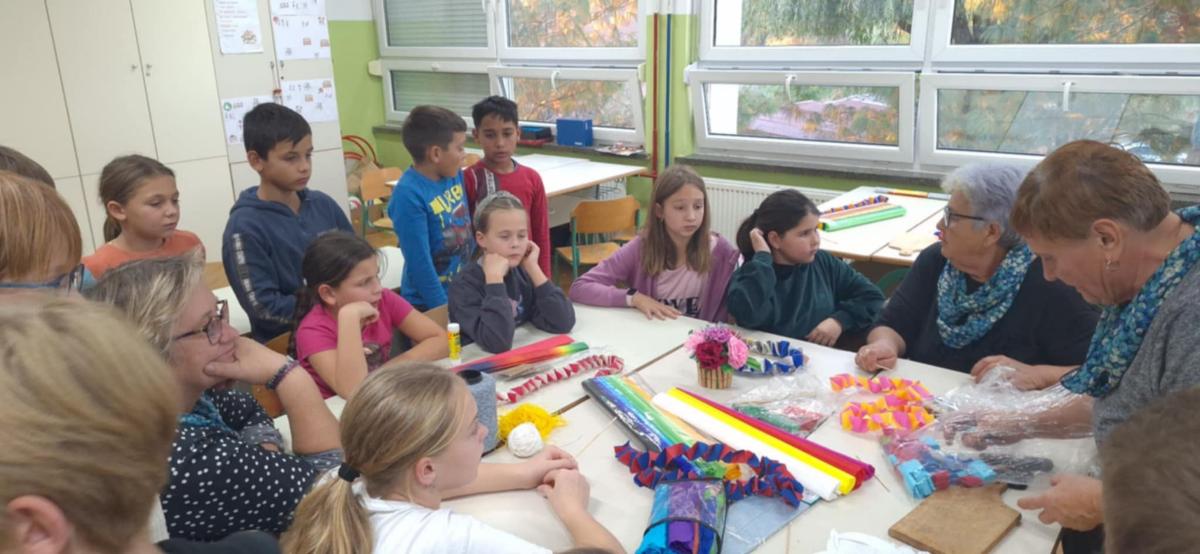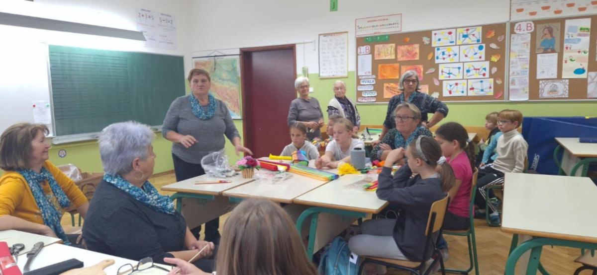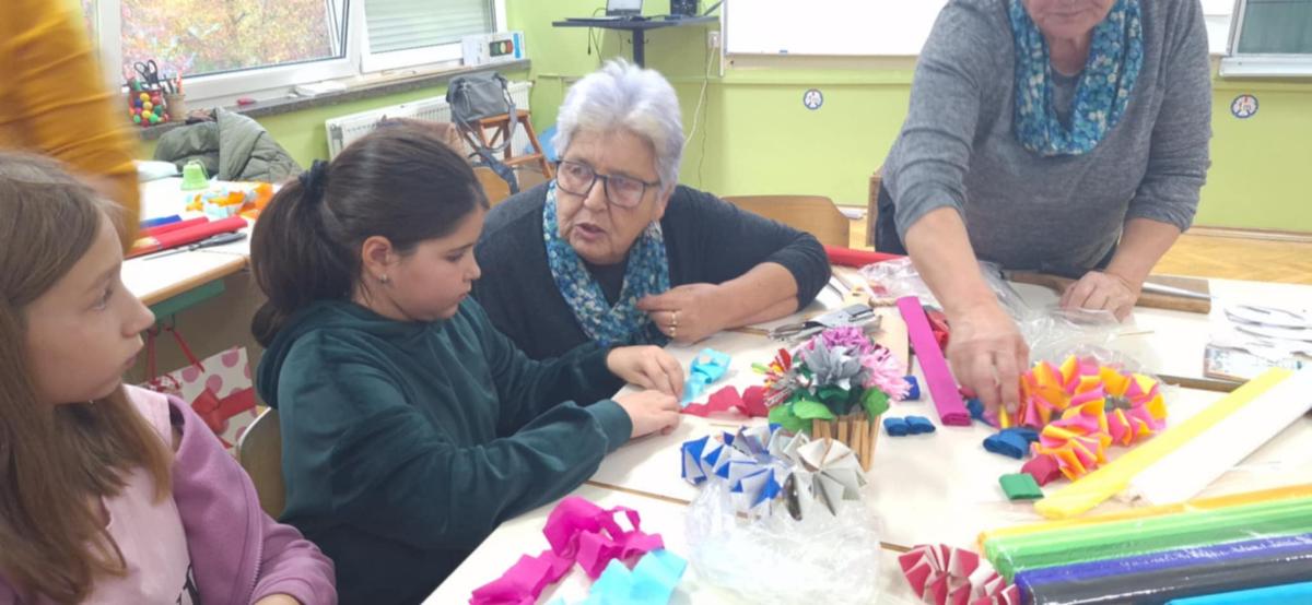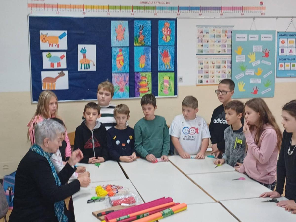 Nakon što je prošlog tjedna dio članica Društva žena Mursko Središće s učenicima radio rukotvorine od krep papira, jučer su umijeće izrade božićnih ukrasa od toga papira pokazale učenicima 4.b razreda, razrednice Zvjezdane Balent, u sklopu izvannastavne aktivnosti domaćinstva.