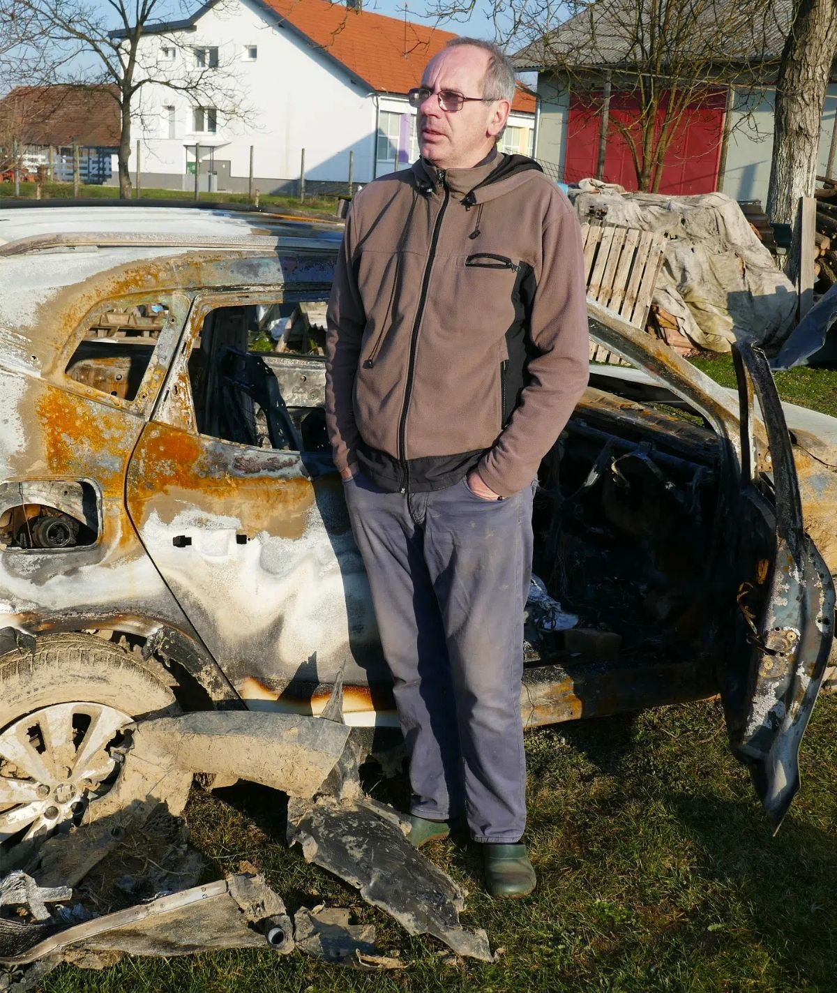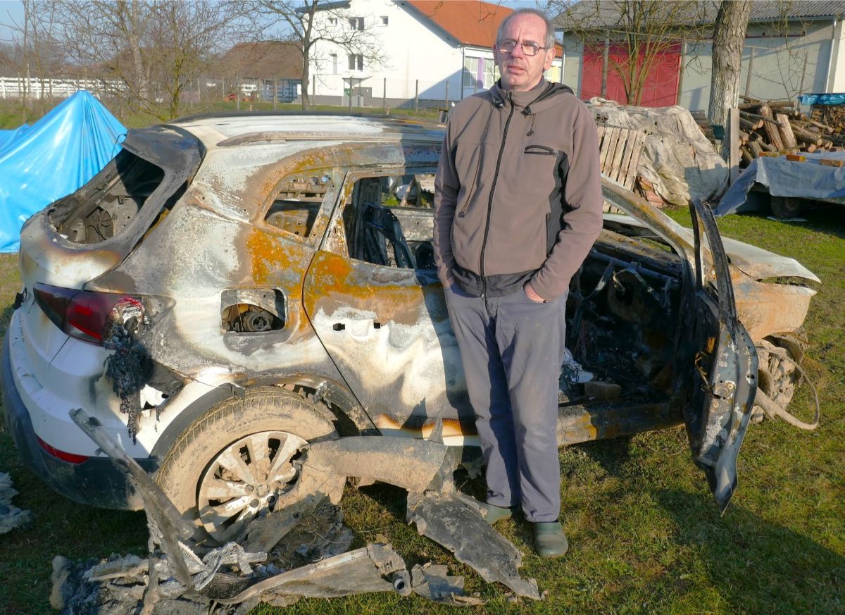 Čim se svanulo već je bio u Pribislavcu. Na kraju ulice, koja vodi uz Feštetićev dvorac prema polju, na oranici je ugledao svoj trogodišnji automobil, koji je izgorio do neprepoznatljivosti. Potekle su mu suze, osjetio je čemer, jad, nemoć da bilo što učini. Nakon očevida su mu rekli da ostatke može odvesti kući. Izgorjelo je sve; sjedala, gume, volan, motor, unutrašnjost… Teško je bilo utvrditi i koje je boje bio automobil.