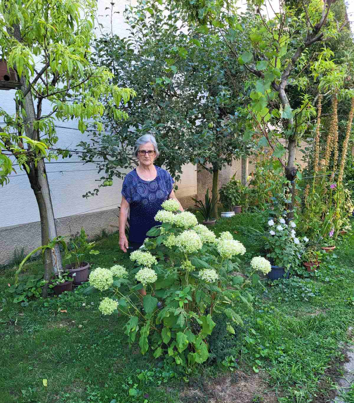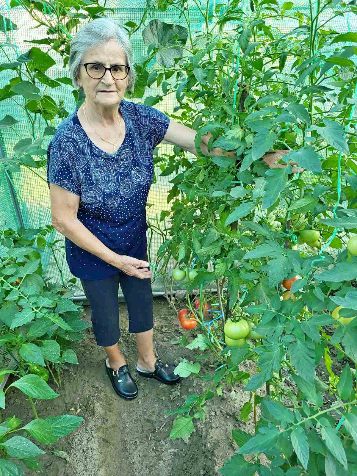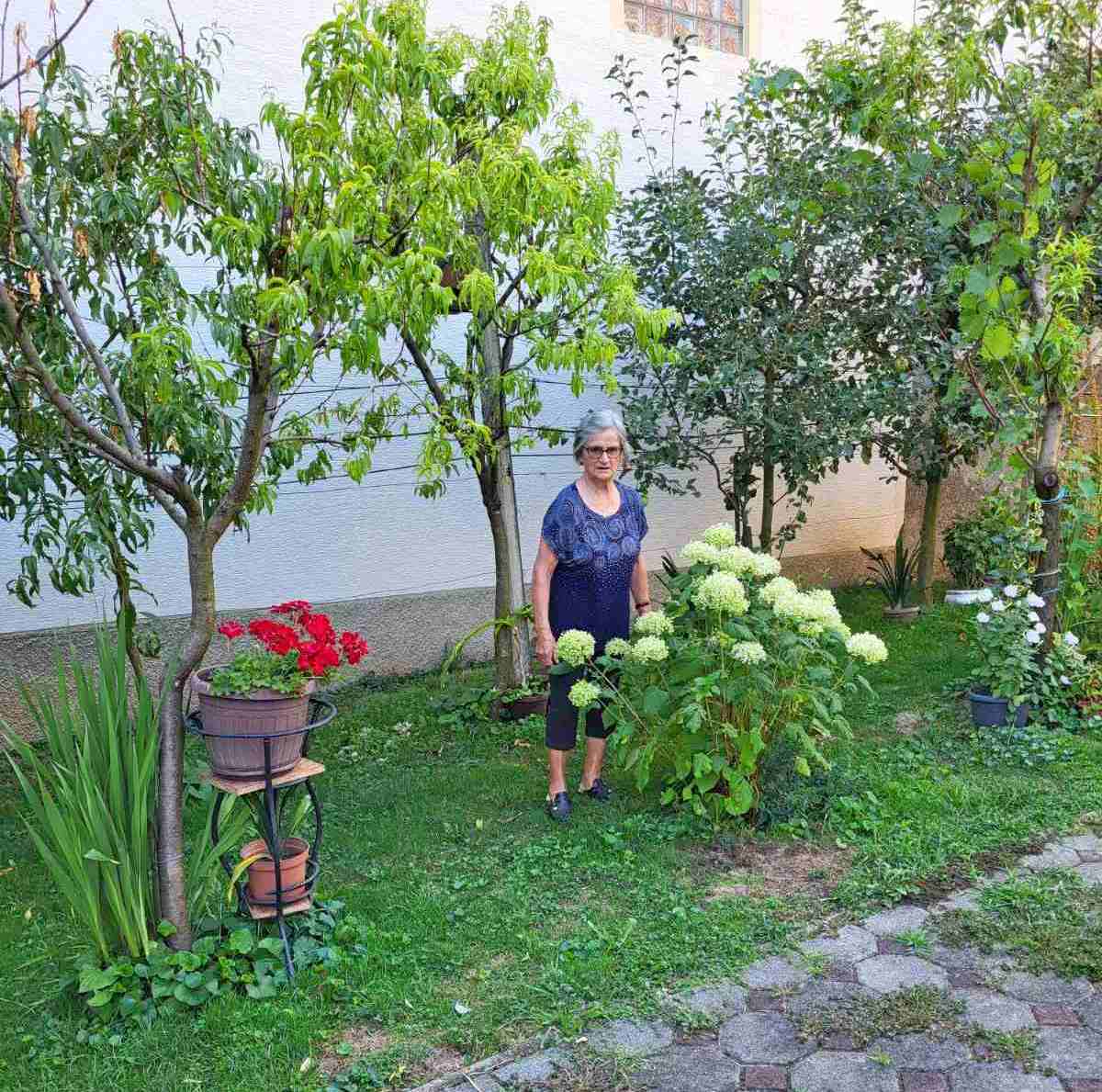 Na vrtu joj uspijeva sve, od prekrasnih hortenzija i ruža do kupina, kruški, rajčica, krastavaca, paprike itd. Cvijeće je u punom cvatu, a povrće joj brigu i ljubav koji ulaže u uzgoj uzvraćaju bogatim plodovima.