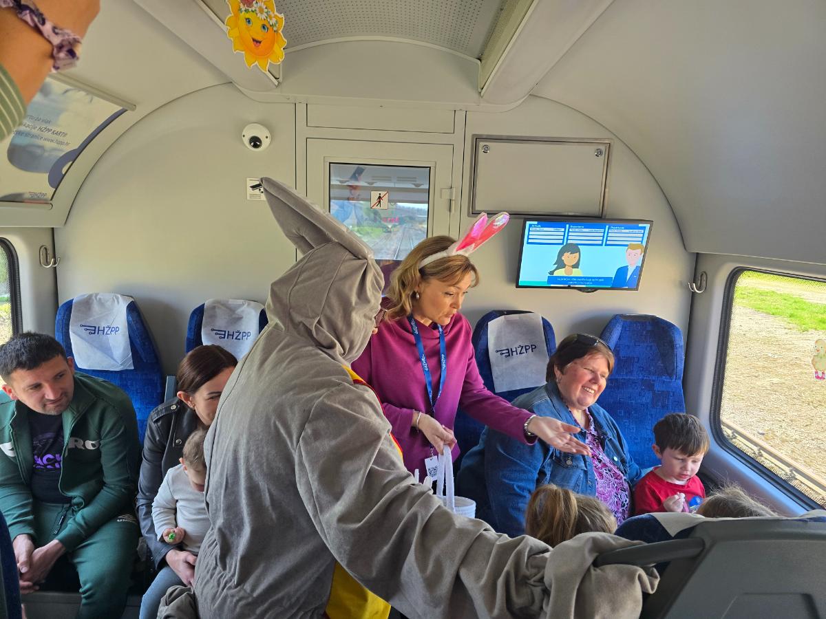 Za najmlađe putnike pripremljena je nezaboravna vožnja jer je u vlaku bio prisutan veliki Uskršnji zeko, koji je dijelio poklone, pjevao, plesao i fotografirao se s mališanima. Uz sve to, djeca su dobila uskrsne poklone, a atmosfera je bila vesela i nezaboravna.