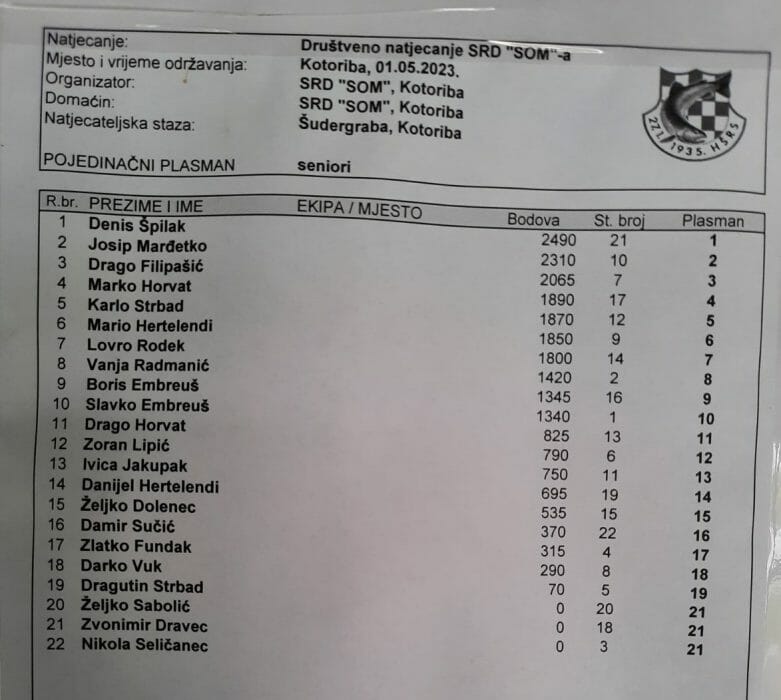 Osim što se dobro jelo i pilo, na jezeru se održalo i uzbudljivo, tradicionalno, prvomajsko Društveno natjecanje“ u ribolovu u organizaciji SRD-a Som, u disciplini lov udicom na plovak. Prijavilo se ukupno 22 natjecatelja u kategorijama kadeta, juniora i seniora, a natjecanje je trajalo 4 sata.