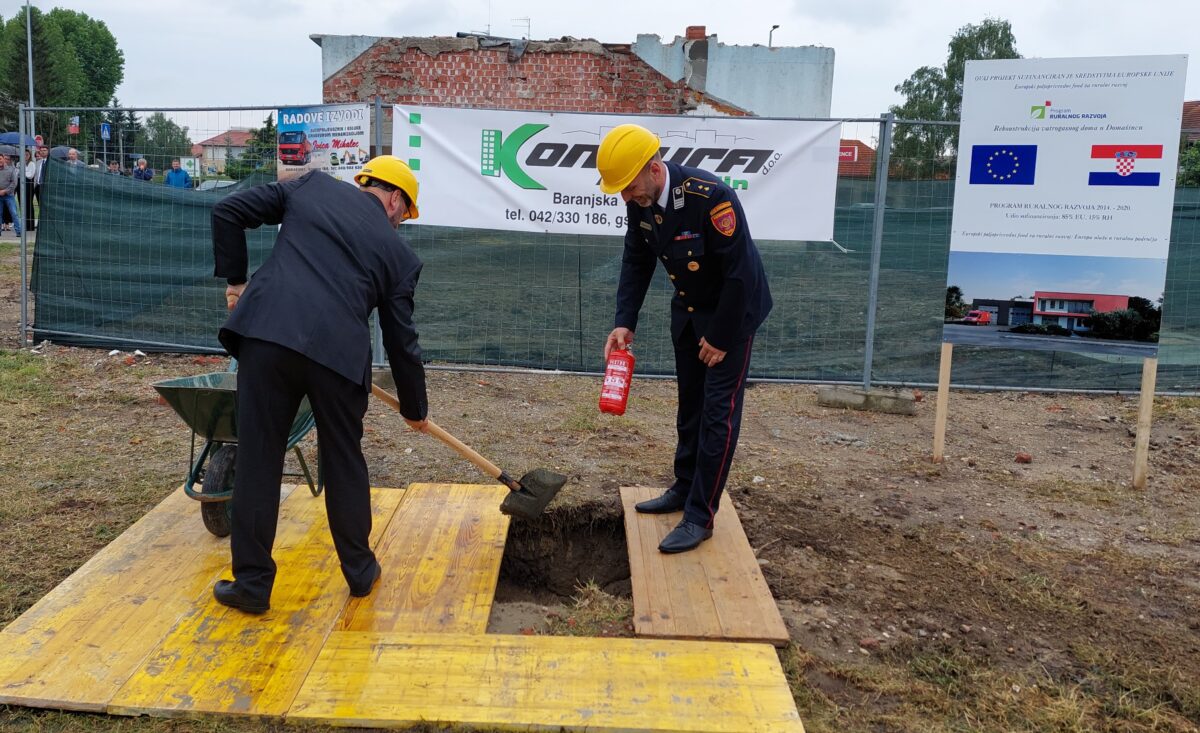 Kamen temeljac svečano su položili načelnik Općine Domašinec Mario Tomašek i predsjednik DVD-a Domašinec Robert Filipović, a svečanosti su prisustvovali i predsjednik JVP-a Čakovec Mladen Kanižaj, predsjednik Vatrogasne zajednice Mađimurske županije Mario Medved, gosti iz Austrije, župan Matija Posavec te mnogi drugi.