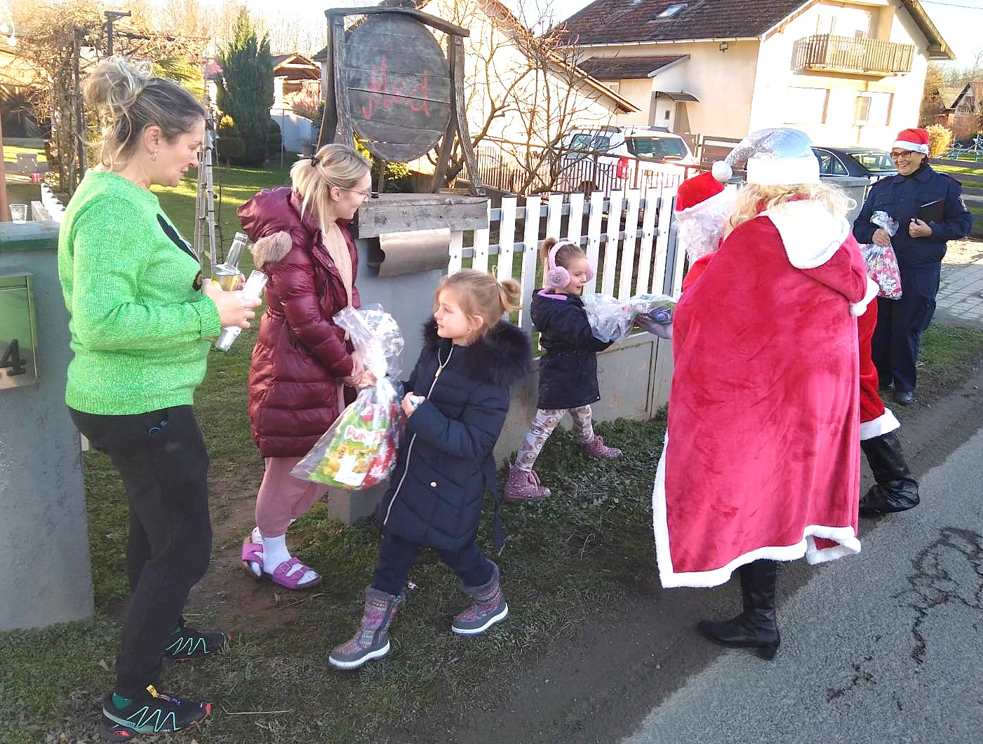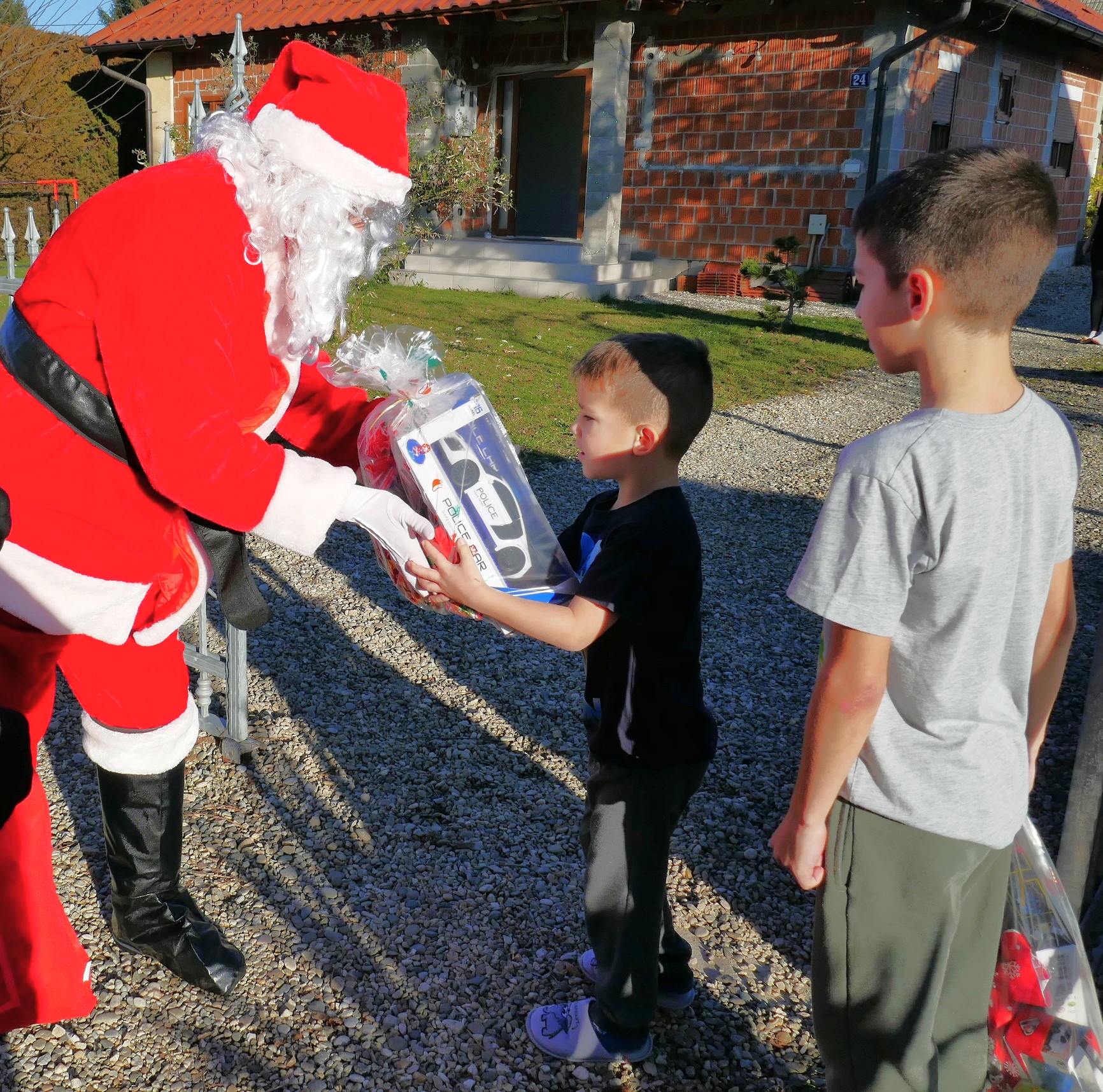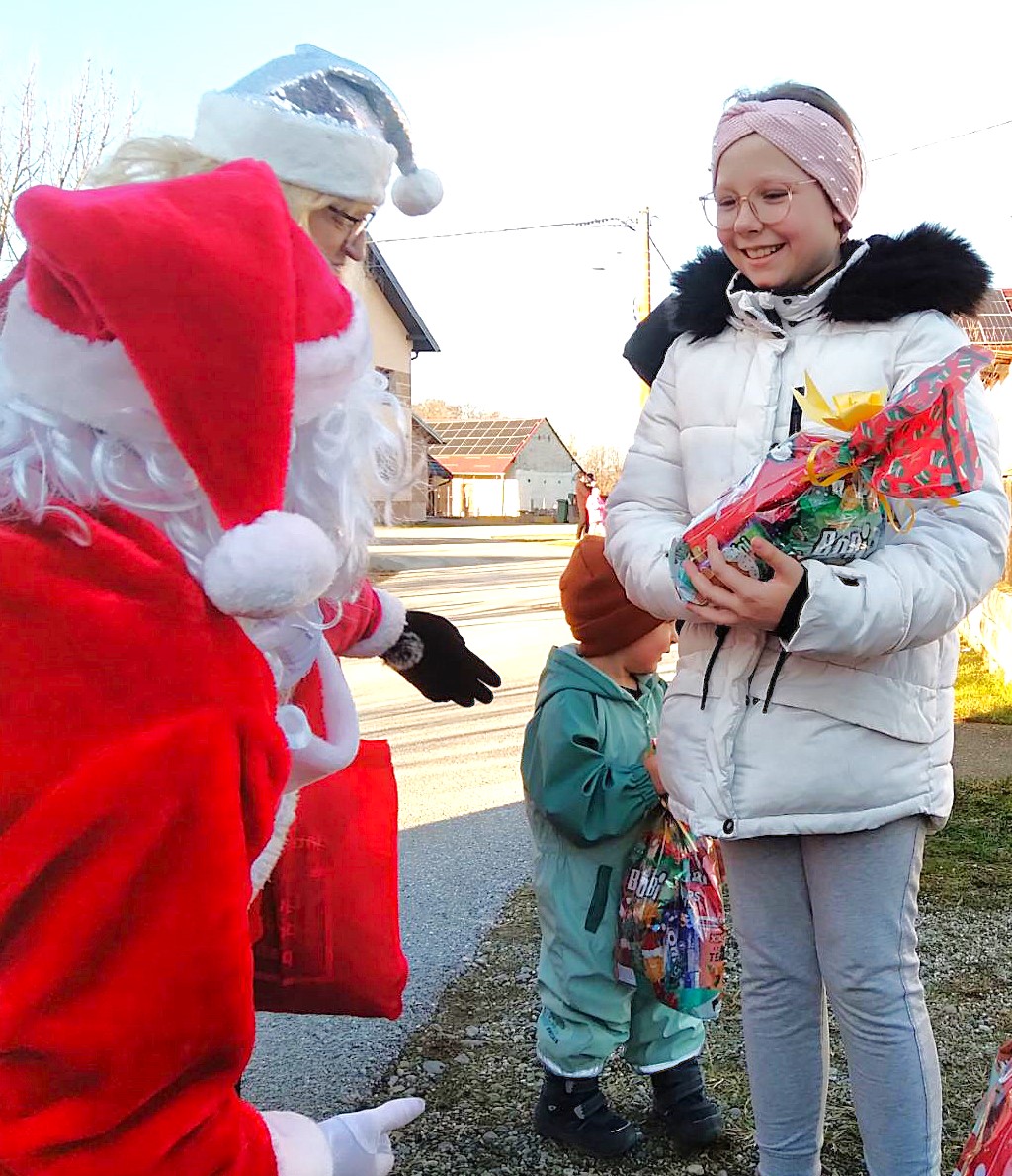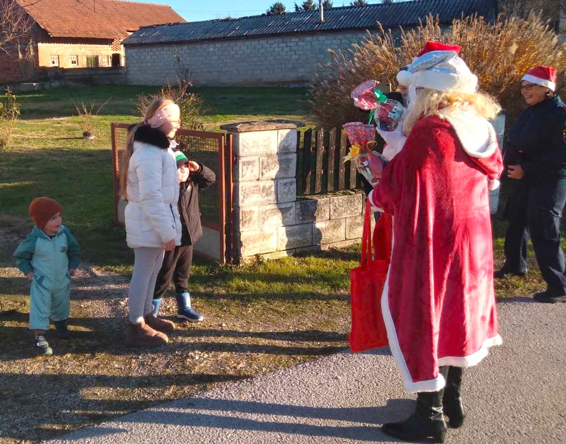 Ekipa vatrogasnih aktivista, odjevena u Djede Mrazove i Bake Mrazice s dva vozila krenula je u obilazak naselja, od kuće do kuće, i veselim mališanima podijelila poklon pakete. Darove je dobilo 101 dijete, što je za dvadesetak više nego lani.