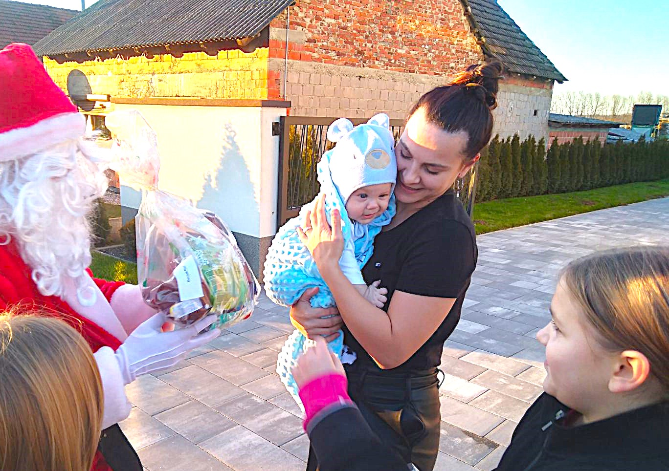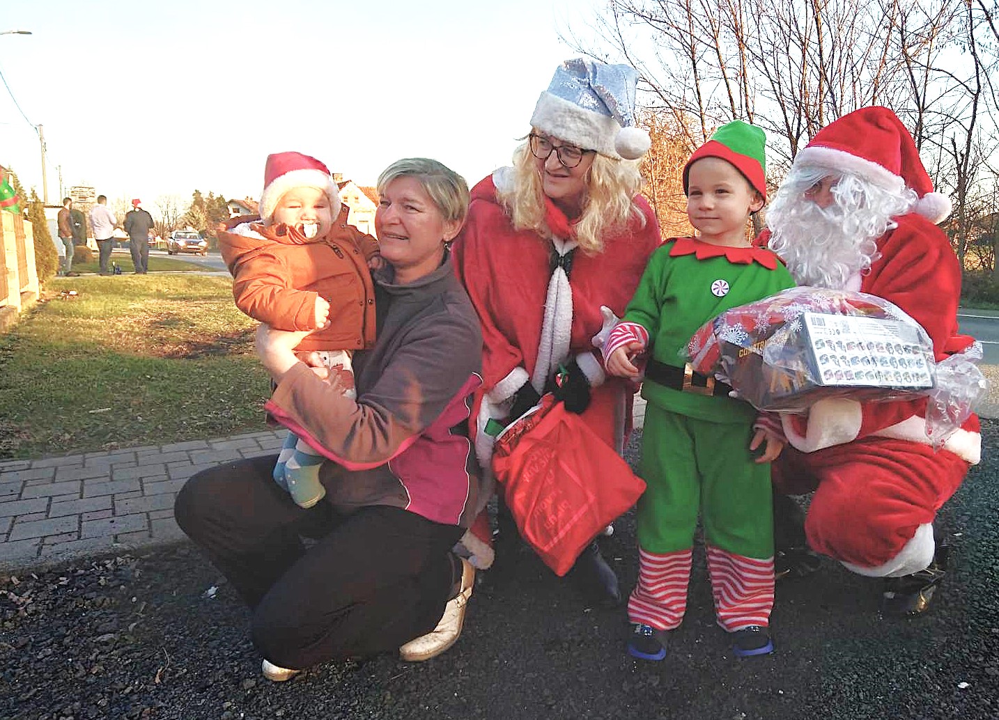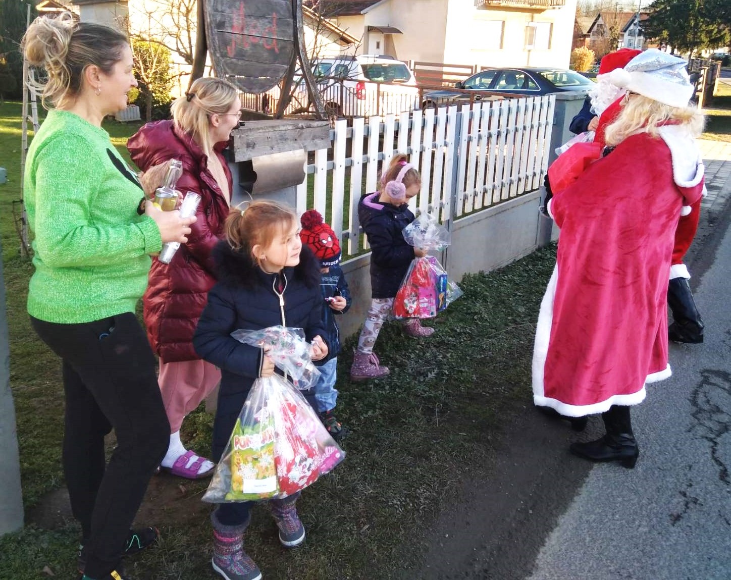 Ekipa vatrogasnih aktivista, odjevena u Djede Mrazove i Bake Mrazice s dva vozila krenula je u obilazak naselja, od kuće do kuće, i veselim mališanima podijelila poklon pakete. Darove je dobilo 101 dijete, što je za dvadesetak više nego lani.