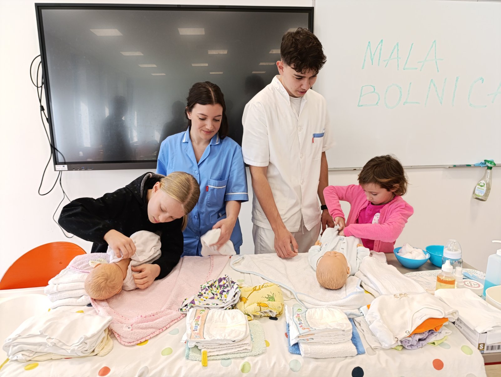 Učenici su pripremili i promotivne materijale, a radionice su obuhvatile i prevenciju malignih bolesti, uz podršku prim. Huseina Saghira, predsjednika Županijske lige protiv raka. Posebno je veselo bilo u „maloj bolnici“ za najmlađe, gdje su djeca mogla naučiti kako se kupa i presvlači beba – radionica koja je pobrala mnogo simpatija roditelja i djece.