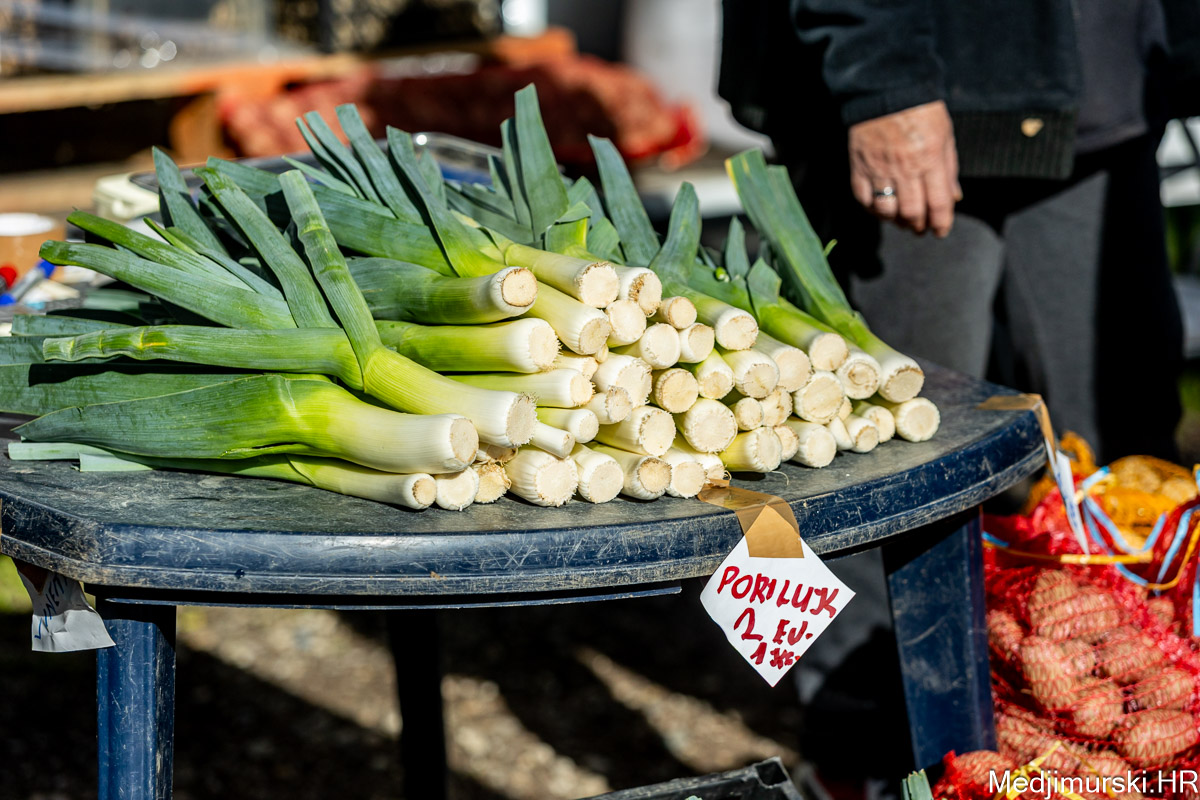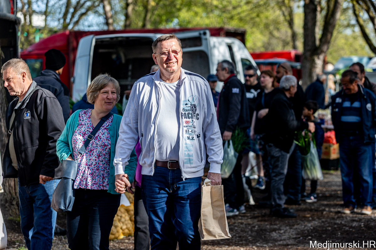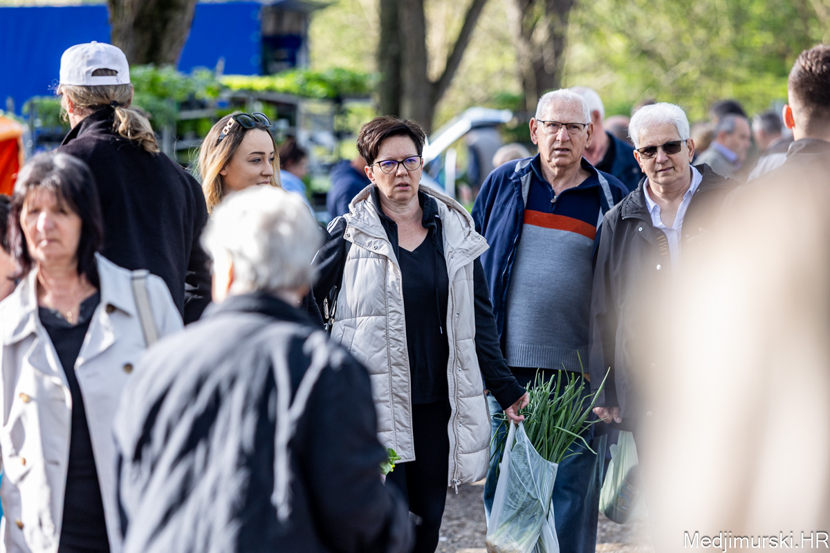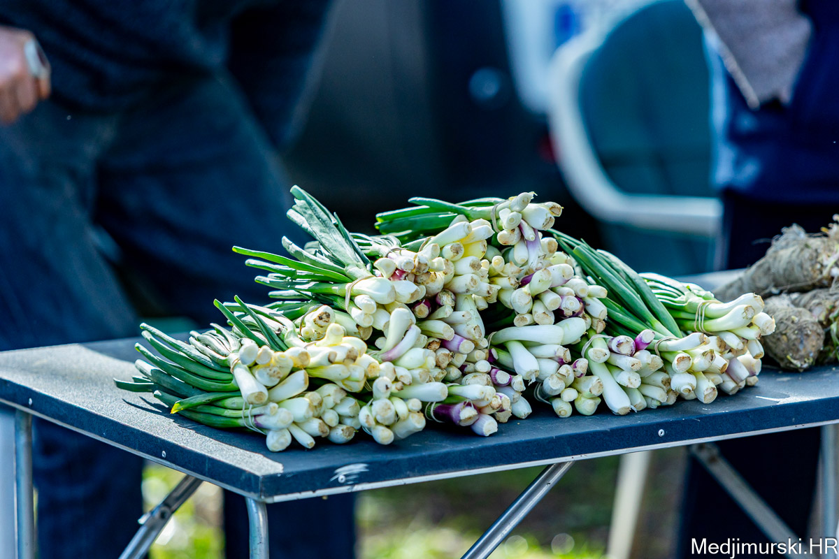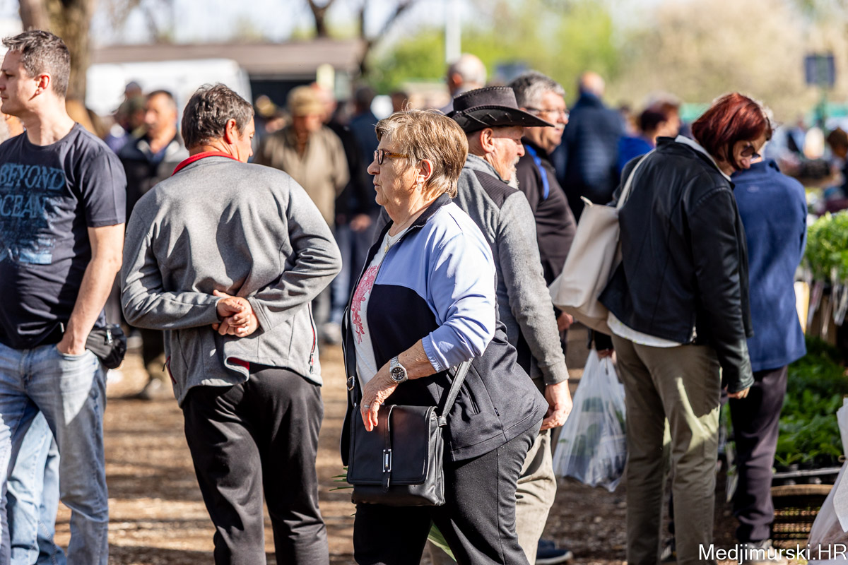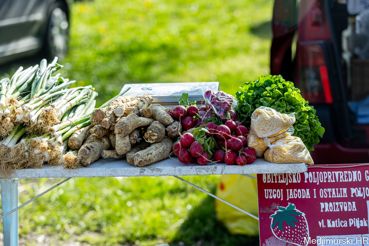 I danas je bilo puno ljudi na čakovečkom sajmu srijedom. Dobro se kupovalo i prodavalo. Posebno namirnice za uskrsni stol. Hren je bio po 5 eura kilogram, vezica sitnijeg korijena hrena 1 euro, a naribani hren u staklenki 5 eura. Mladi luk također je prodavan po 5 eura kg, a vezica mladog luka po 1 euro. Poriluk je nuđen po 2 eura kg. Po 1 euro bile su i vezice crvene rotkvice i blitve.