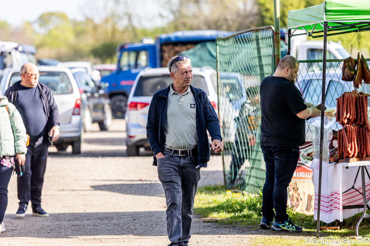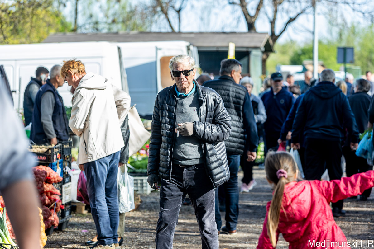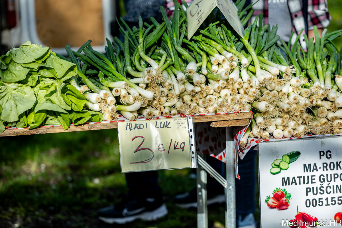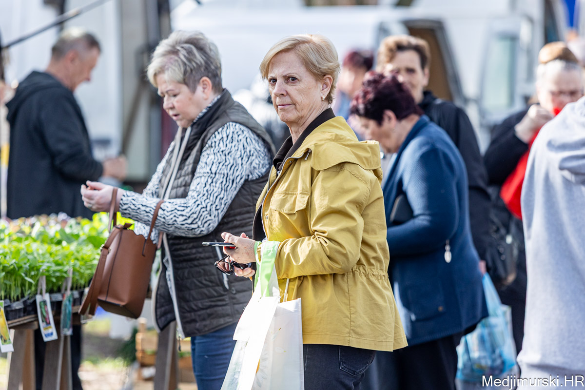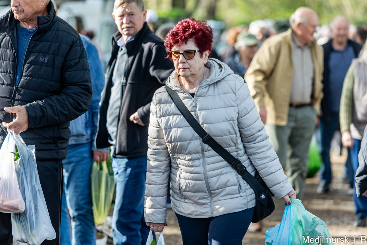 I danas je bilo puno ljudi na čakovečkom sajmu srijedom. Dobro se kupovalo i prodavalo. Posebno namirnice za uskrsni stol. Hren je bio po 5 eura kilogram, vezica sitnijeg korijena hrena 1 euro, a naribani hren u staklenki 5 eura. Mladi luk također je prodavan po 5 eura kg, a vezica mladog luka po 1 euro. Poriluk je nuđen po 2 eura kg. Po 1 euro bile su i vezice crvene rotkvice i blitve.