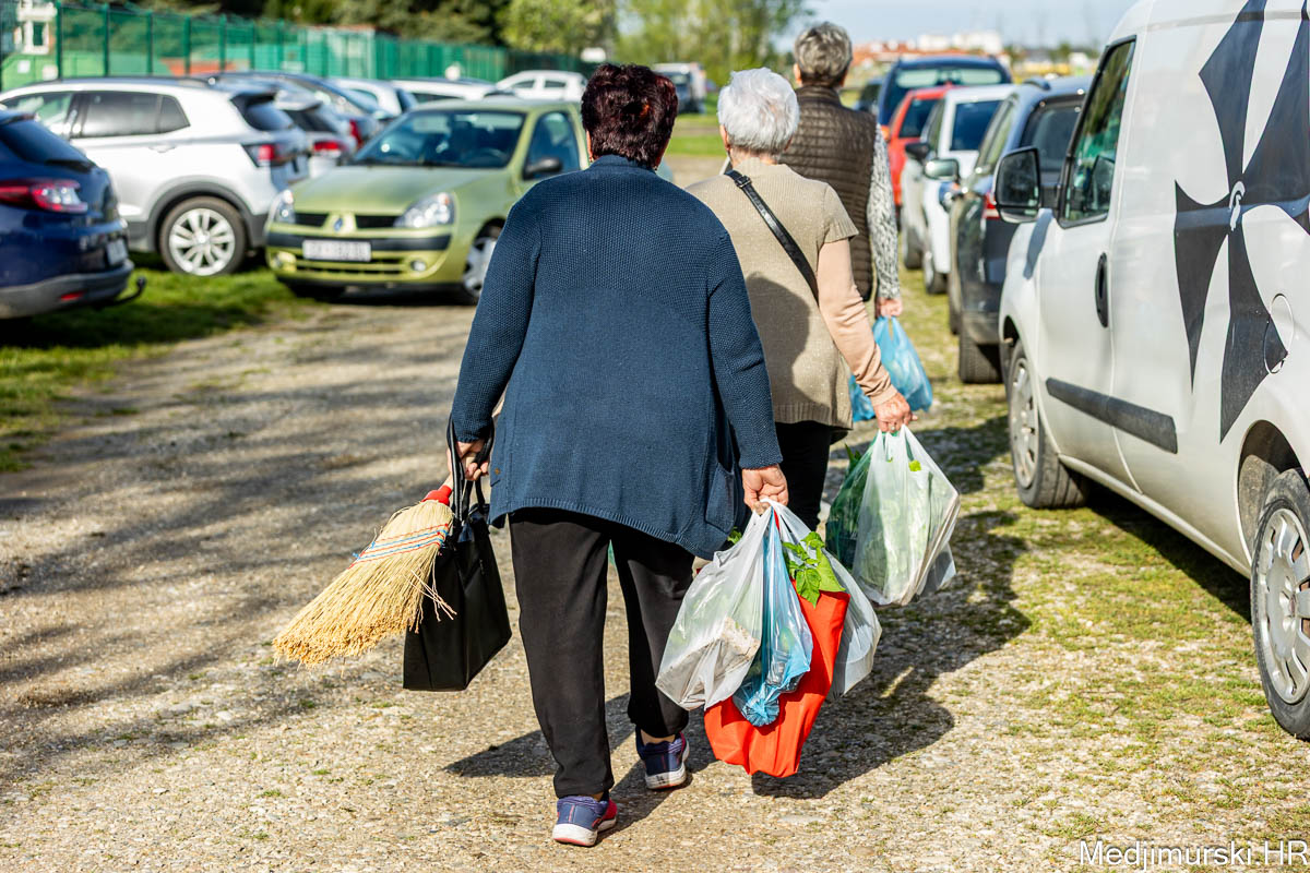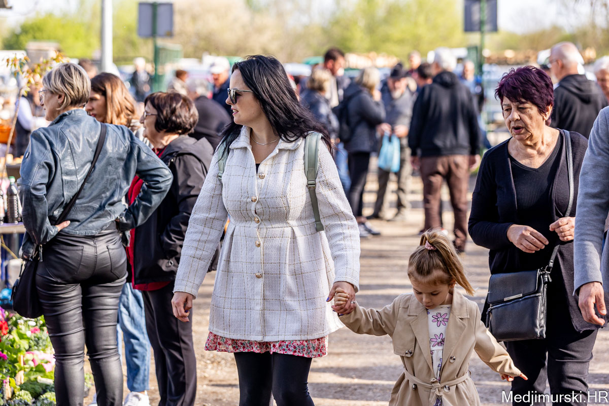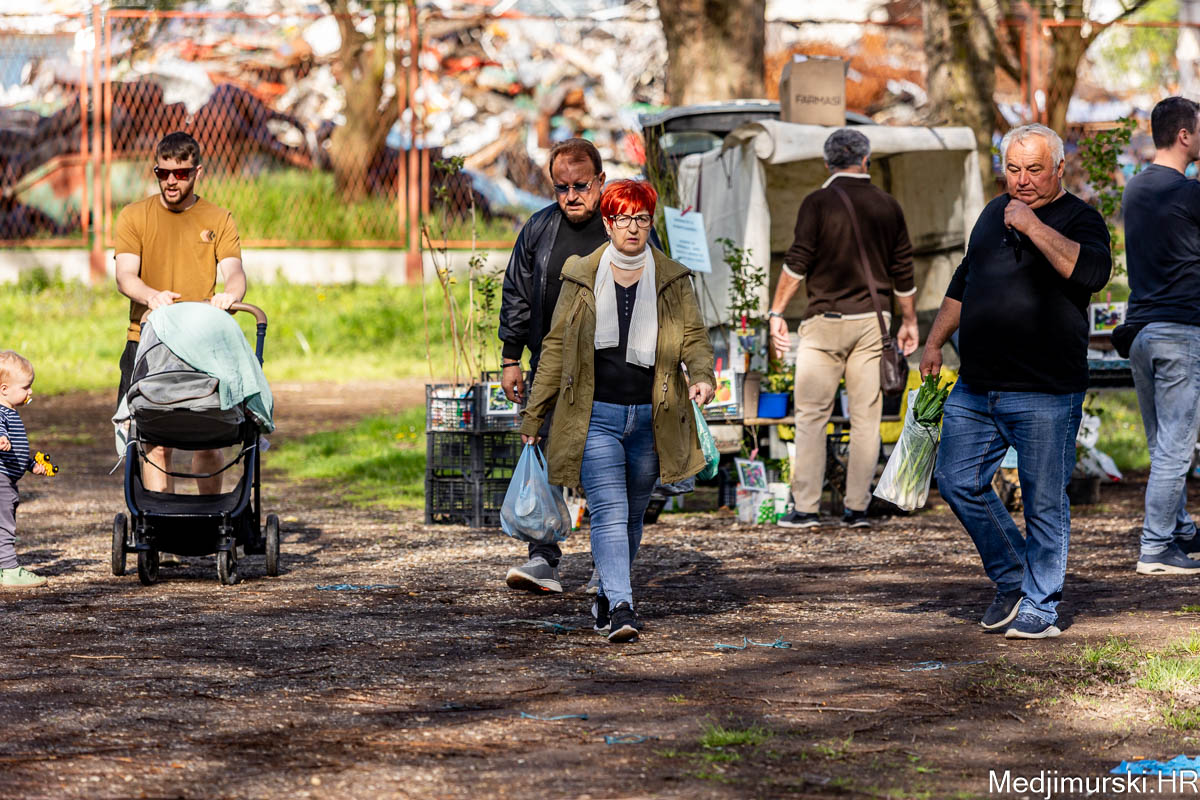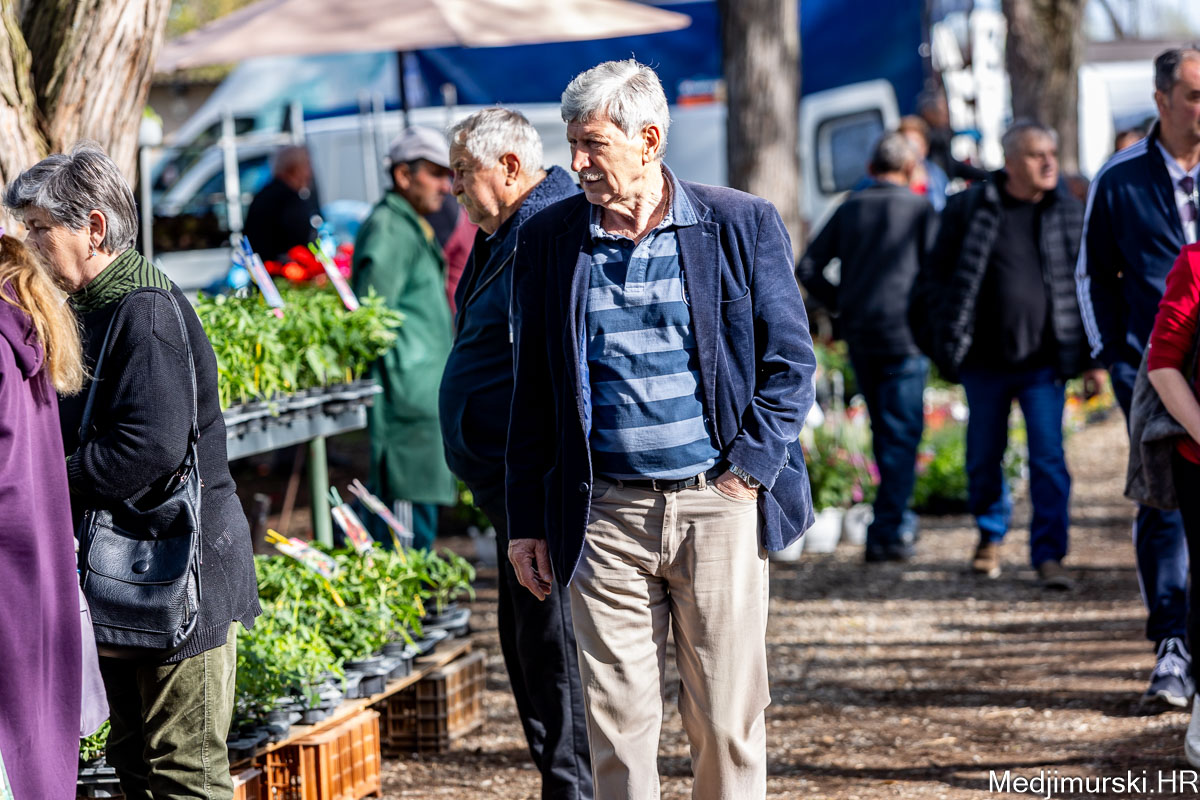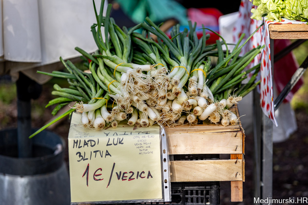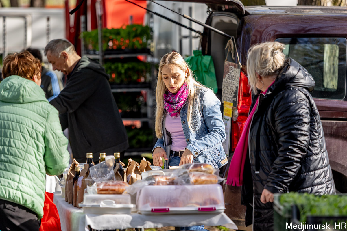 I danas je bilo puno ljudi na čakovečkom sajmu srijedom. Dobro se kupovalo i prodavalo. Posebno namirnice za uskrsni stol. Hren je bio po 5 eura kilogram, vezica sitnijeg korijena hrena 1 euro, a naribani hren u staklenki 5 eura. Mladi luk također je prodavan po 5 eura kg, a vezica mladog luka po 1 euro. Poriluk je nuđen po 2 eura kg. Po 1 euro bile su i vezice crvene rotkvice i blitve.