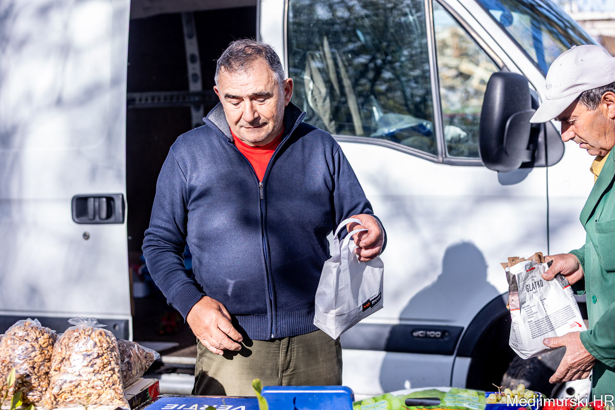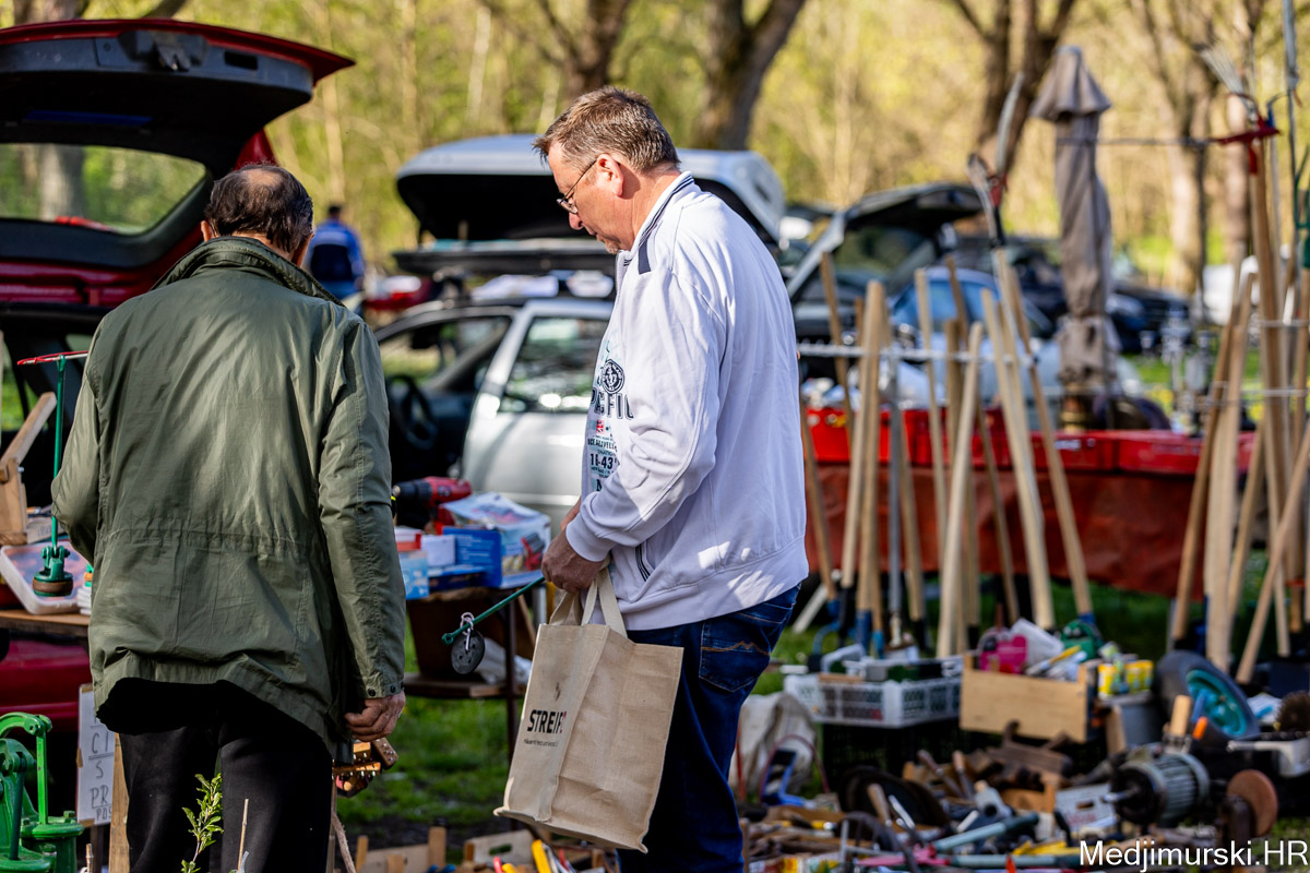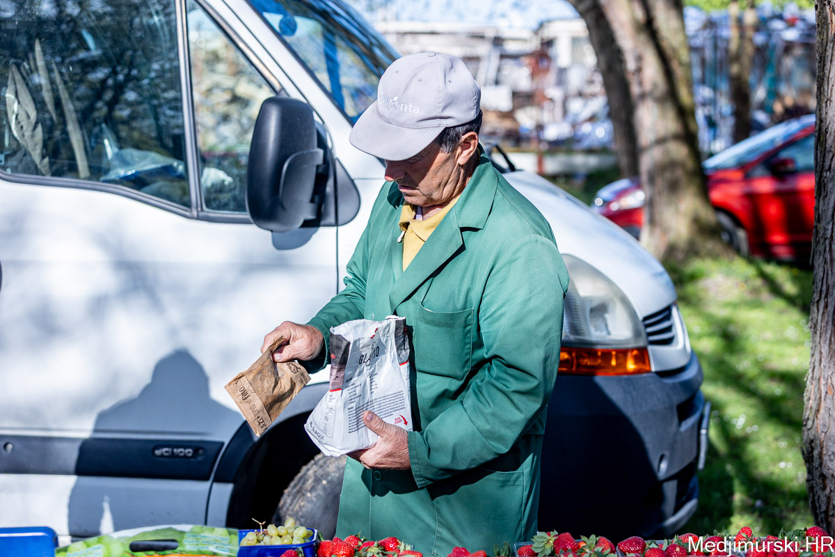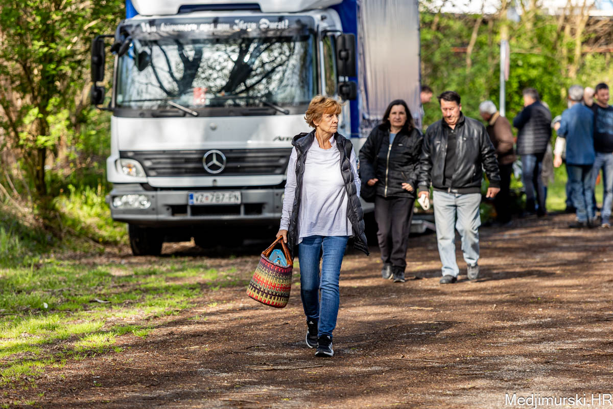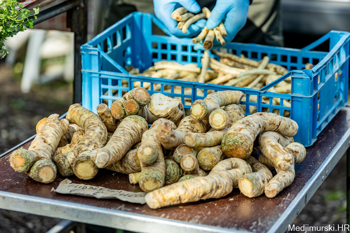 I danas je bilo puno ljudi na čakovečkom sajmu srijedom. Dobro se kupovalo i prodavalo. Posebno namirnice za uskrsni stol. Hren je bio po 5 eura kilogram, vezica sitnijeg korijena hrena 1 euro, a naribani hren u staklenki 5 eura. Mladi luk također je prodavan po 5 eura kg, a vezica mladog luka po 1 euro. Poriluk je nuđen po 2 eura kg. Po 1 euro bile su i vezice crvene rotkvice i blitve.