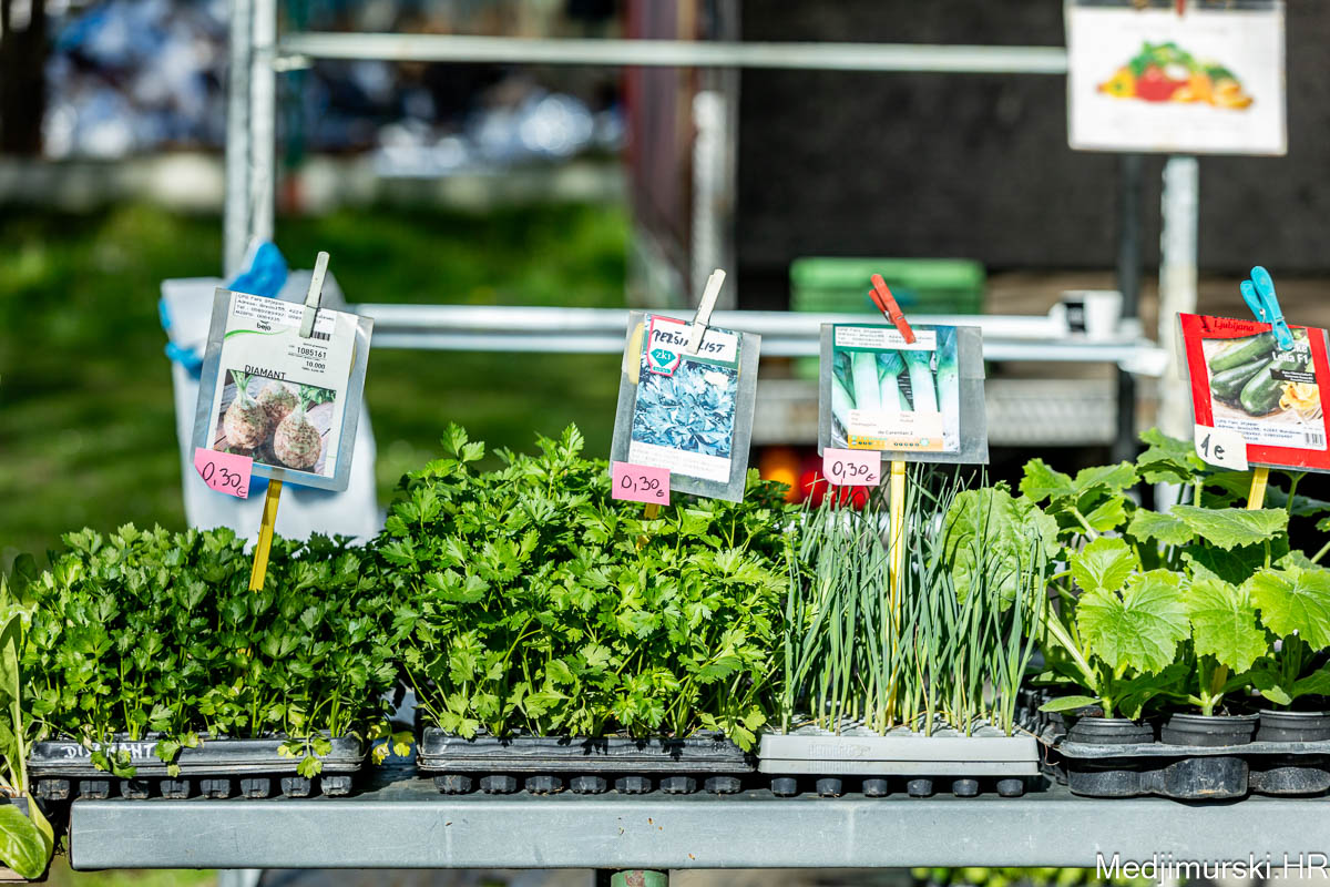 Bilježimo veliku ponudu cvijeća, sadnica voća i presadnica povrća. Presadnice celera, vegete i blitve u kontejnerima su po 1euro komad, a jagoda po 2 i 3 eura komad. Presadnice zelene salate u malim teglicama bile su po 0,40 eura komad. Presadnice cvijeća su od 1 do 5 eura.