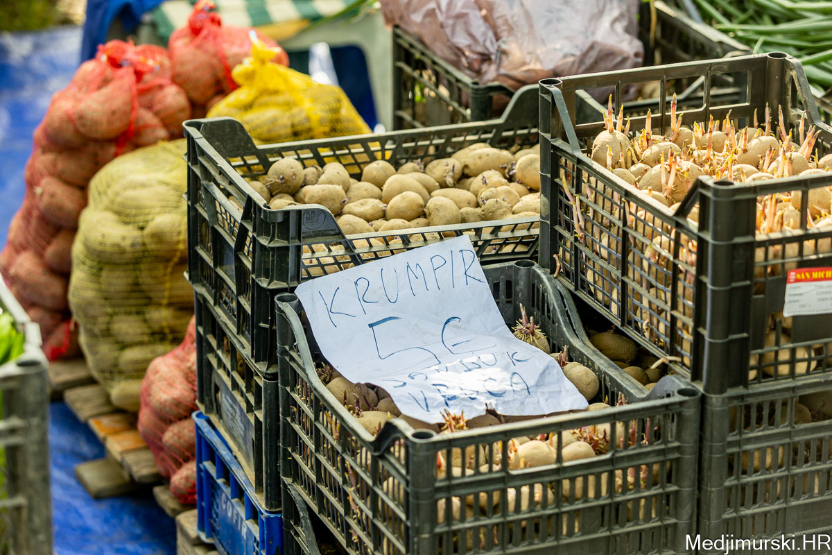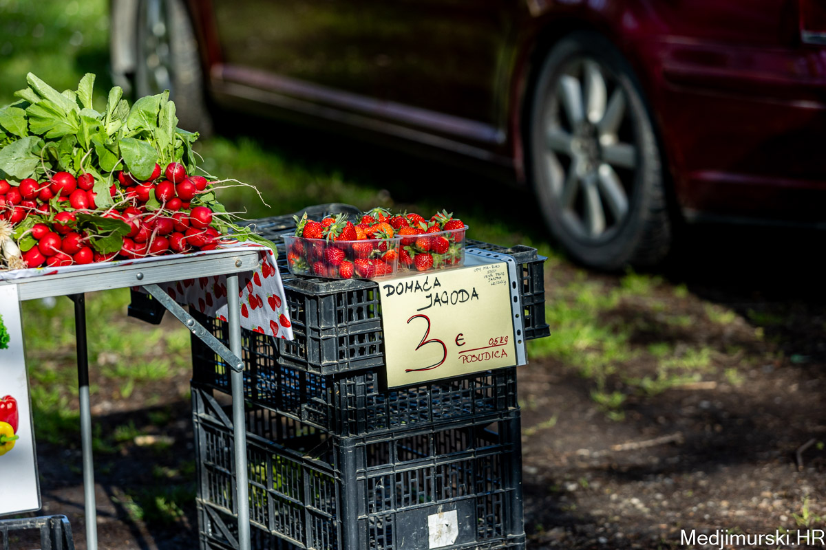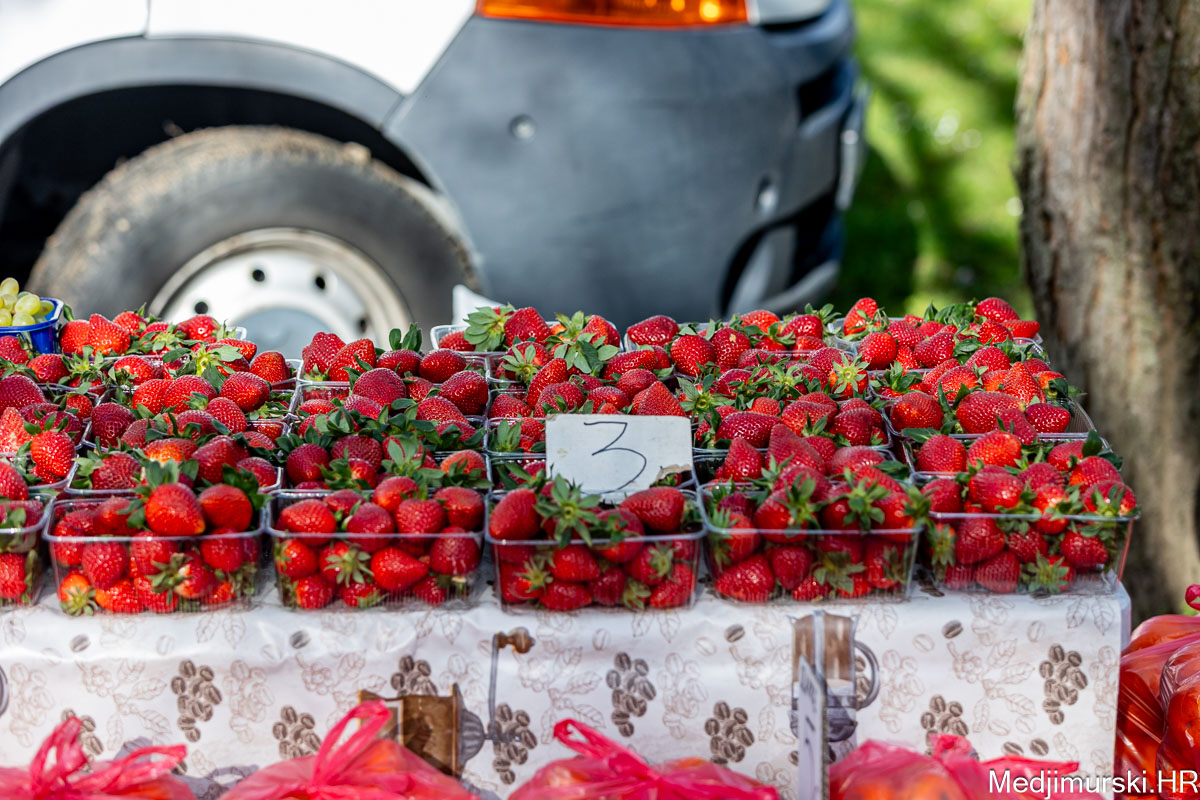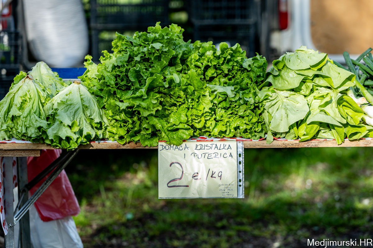 Cijena salate domaće kristalke i puterice je po 2 eura kilogram. Kilogram blitve je po 7 eura, kao i peršina. Krumpir je prodavan po 0,50 eura kilogram, a jagode po 6 eura kg, odnosno 3 eura 50 dkg. Češnjak nuđen po 5 eura kilogram, batat po 1,5 eura kg.
