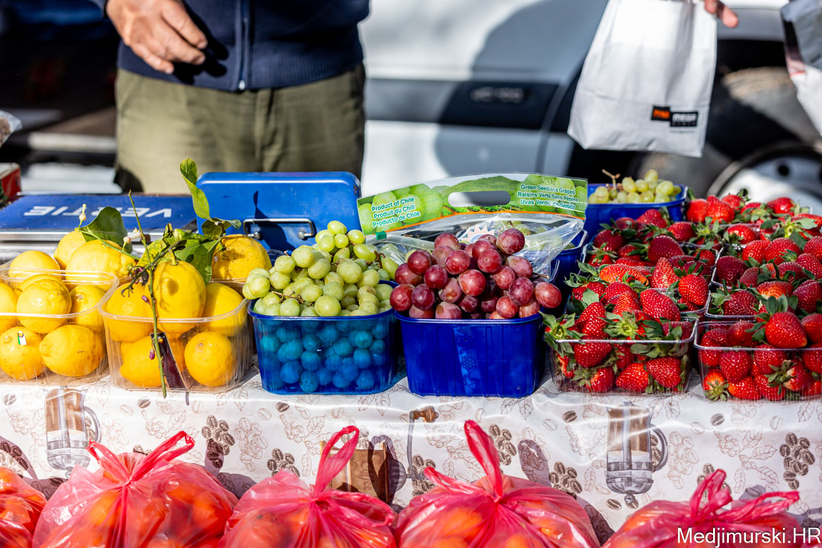 Šampinjoni su nuđeni po 4 eura kilogram, mladi celer po 3 i 4 eura kg, pasternjak po 2,70 eura, a mrkva po 2 eura. Cikla je bila po 1,5 eura kg, slatki feferoni po 4, a ljuti čak po 7 eura kilogram. Cvjetača po 2 eura kg.