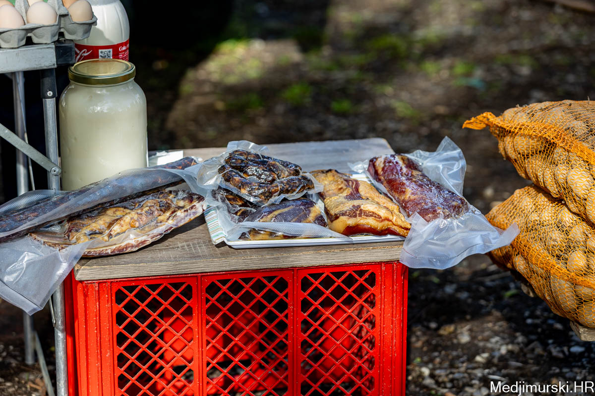 Opet bilježimo i dobru ponudu suhomesnatih proizvoda. Kilogram suhog karea košta 20 eura kilogram, suha vratina ima istu cijenu, kulen je 35 eura kg, domaći jeger 12 eura, domaća suha kobasica također 12 eura, a domaći špek čak 18 eura. Recimo i to da kilogram čvaraka na sajmu stoji 30 eura. Mađarske kobasice za kuhanje ili sušenje bile su po 10 eura kg.