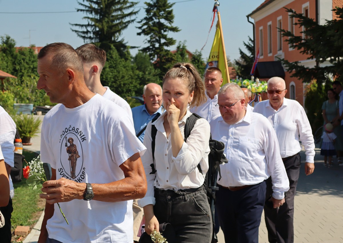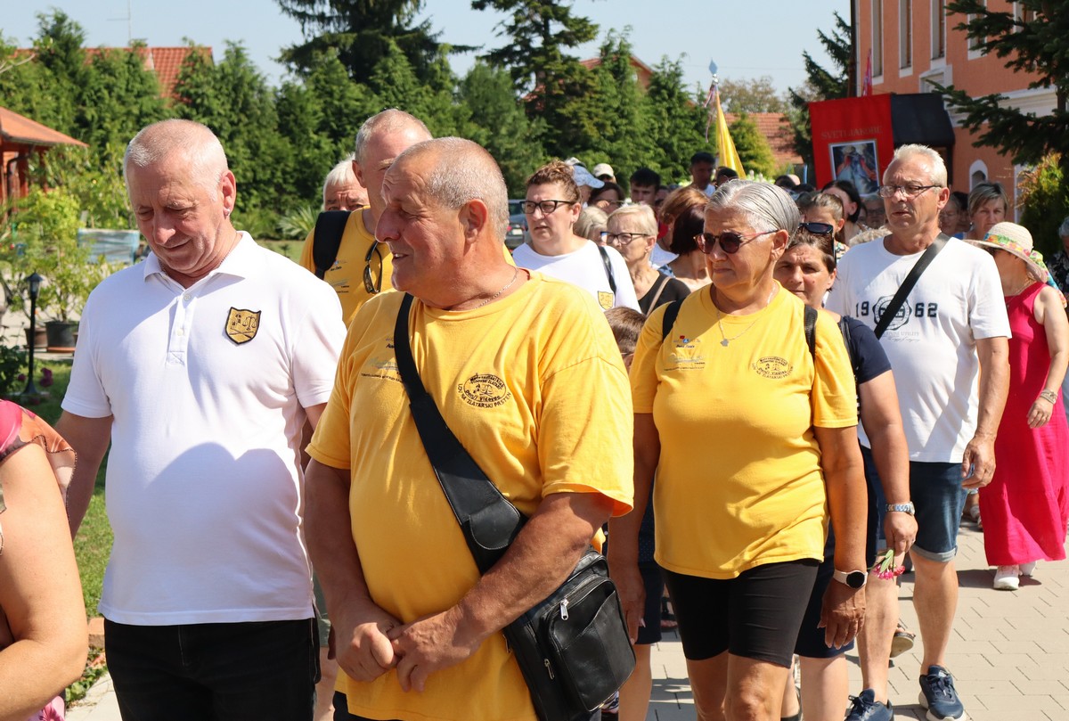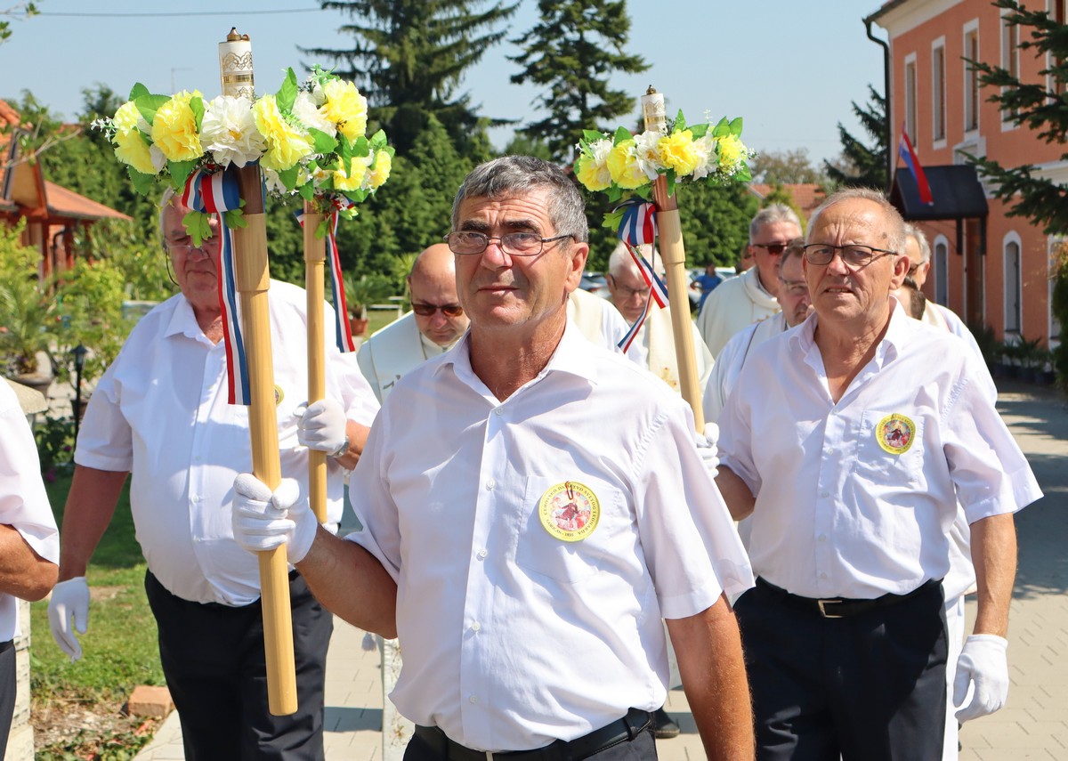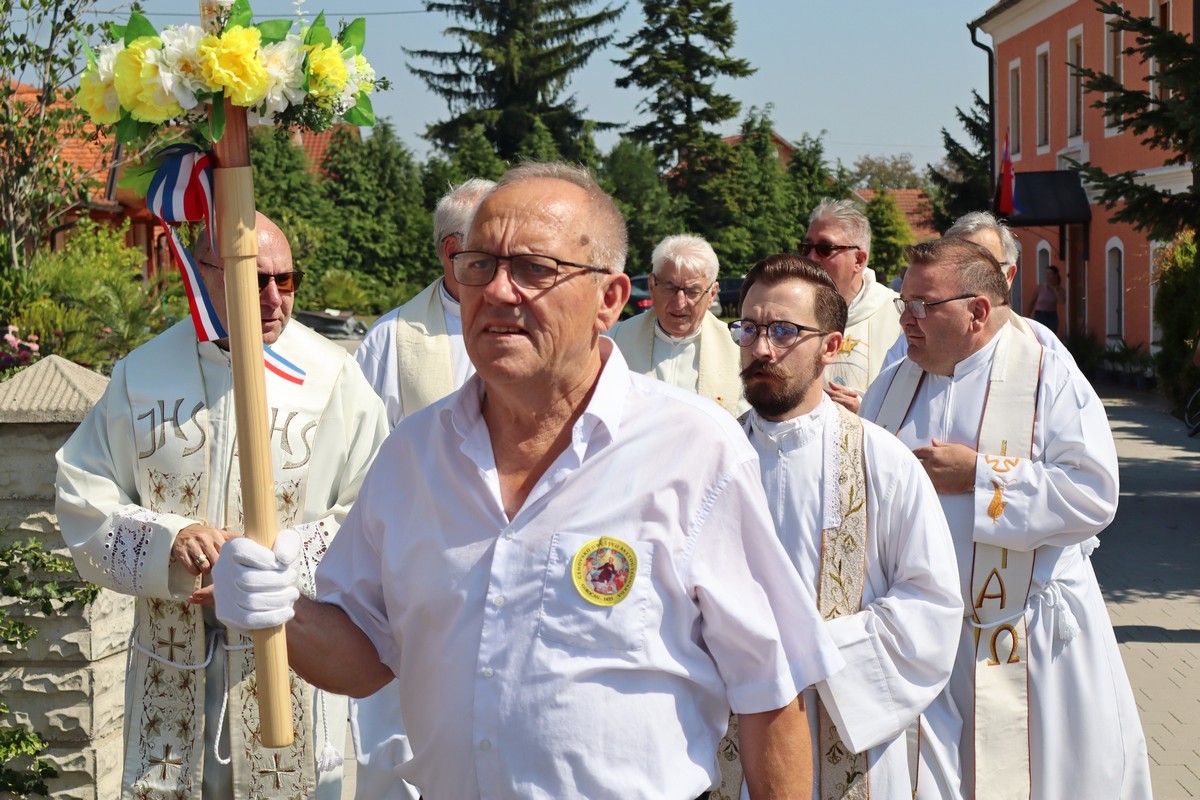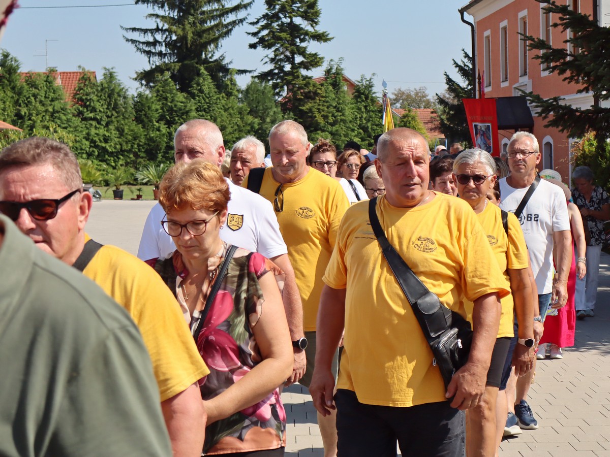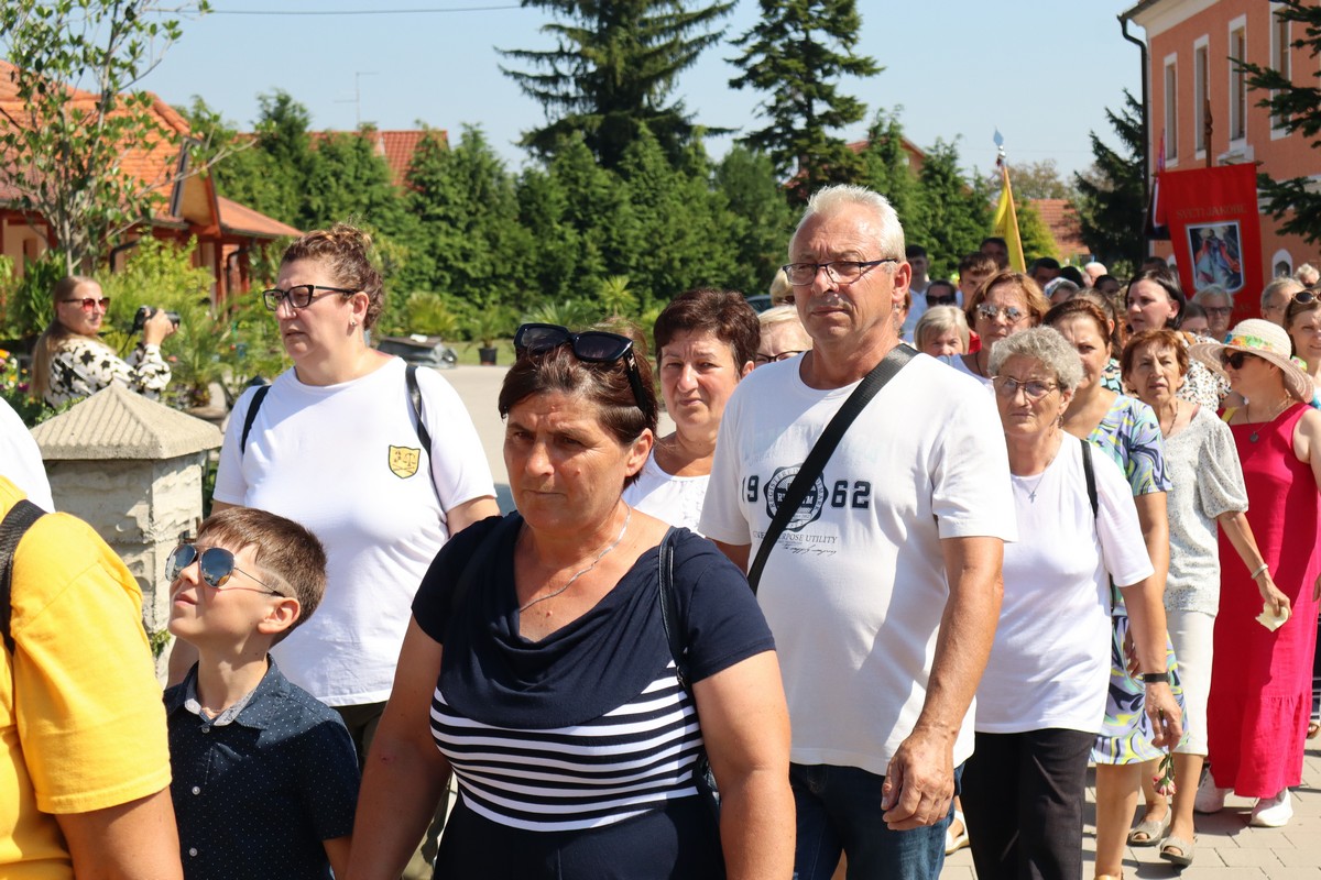 Povorka hodočasnika okupila se u dvorištu farofa na osvježenju i zakusci, nakon čega su krenuli u crkvu Uznesenja Blažene Djevice Marije na Hodočasničku svetu misu u 11 sati, koju je predvodio prečasni Antun Štefan, župnik iz Štefanca.