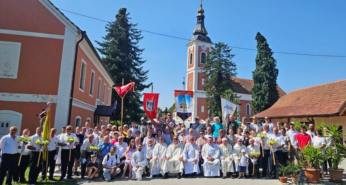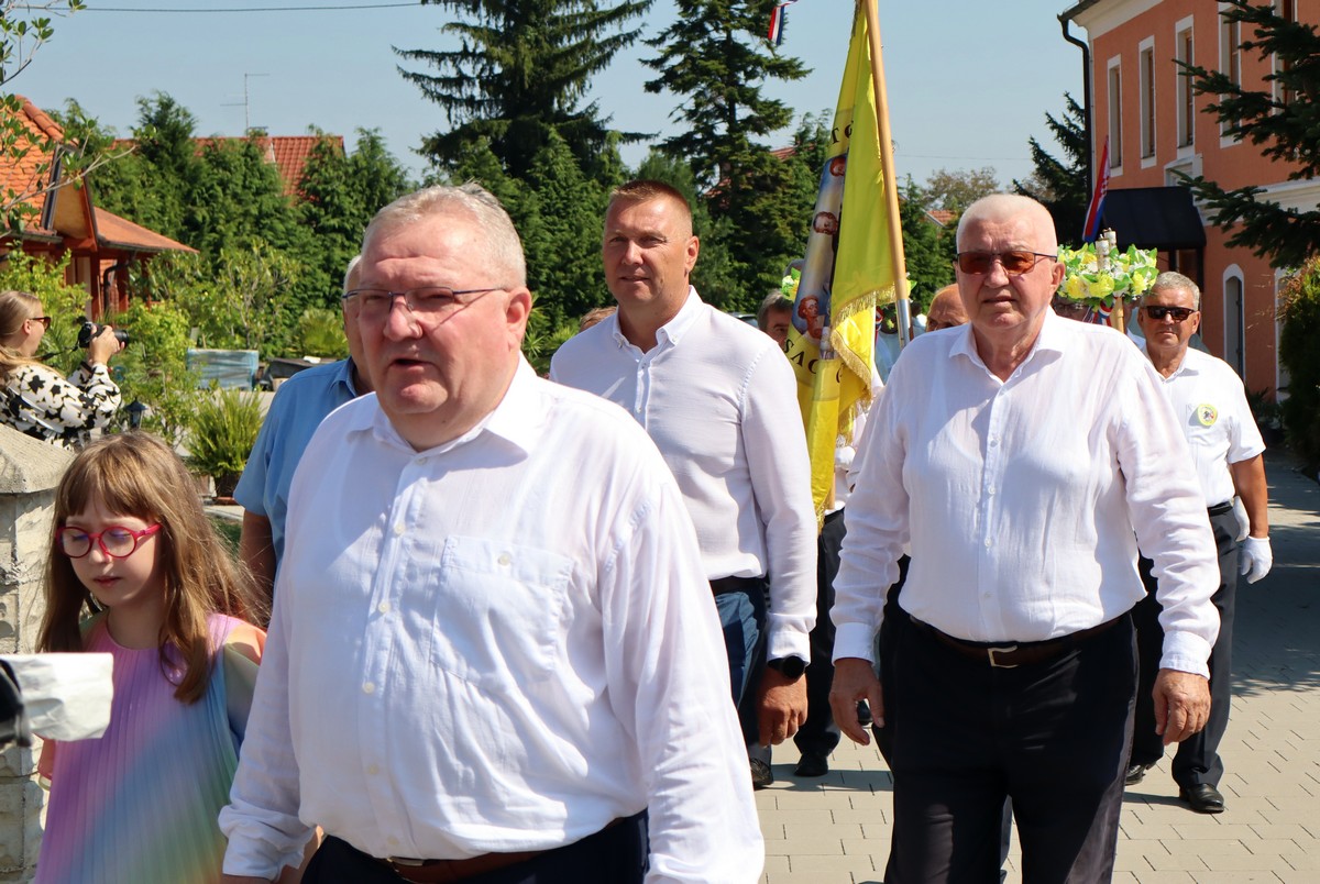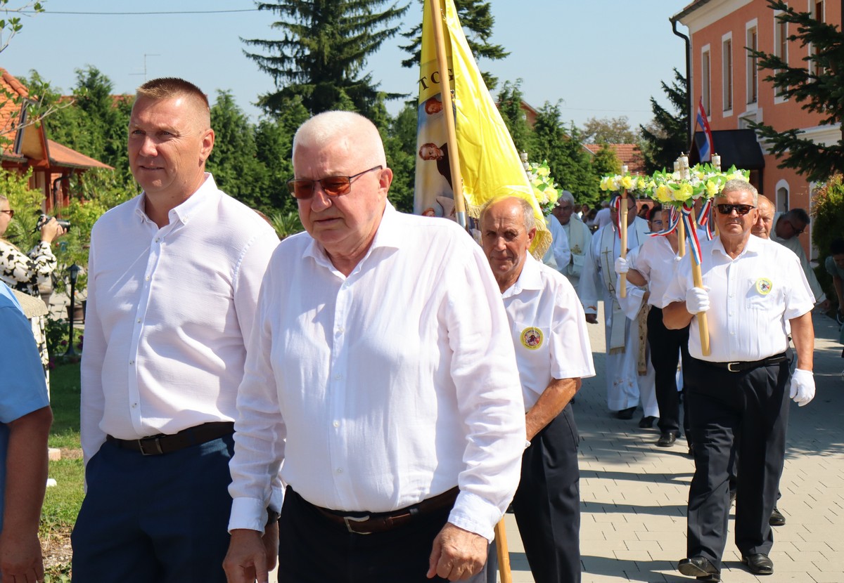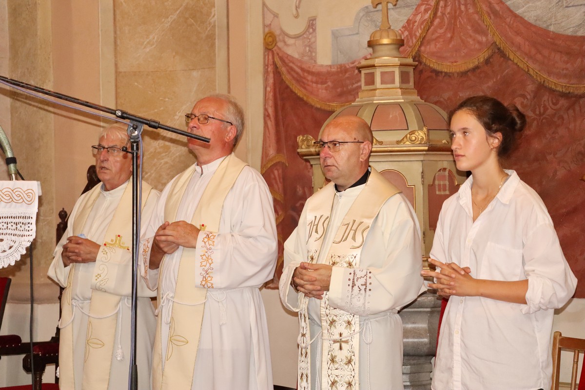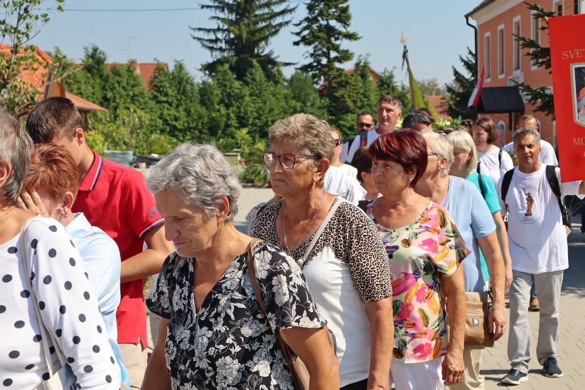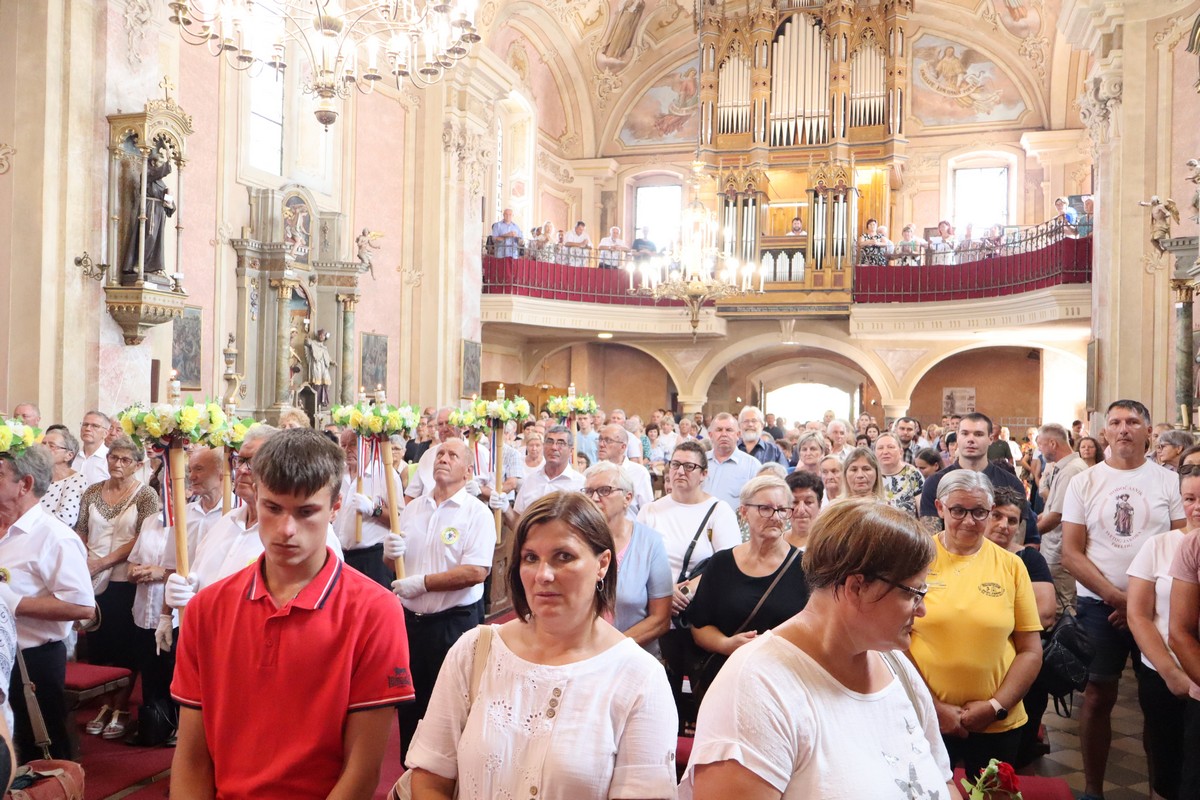 Povorka hodočasnika okupila se u dvorištu farofa na osvježenju i zakusci, nakon čega su krenuli u crkvu Uznesenja Blažene Djevice Marije na Hodočasničku svetu misu u 11 sati, koju je predvodio prečasni Antun Štefan, župnik iz Štefanca.