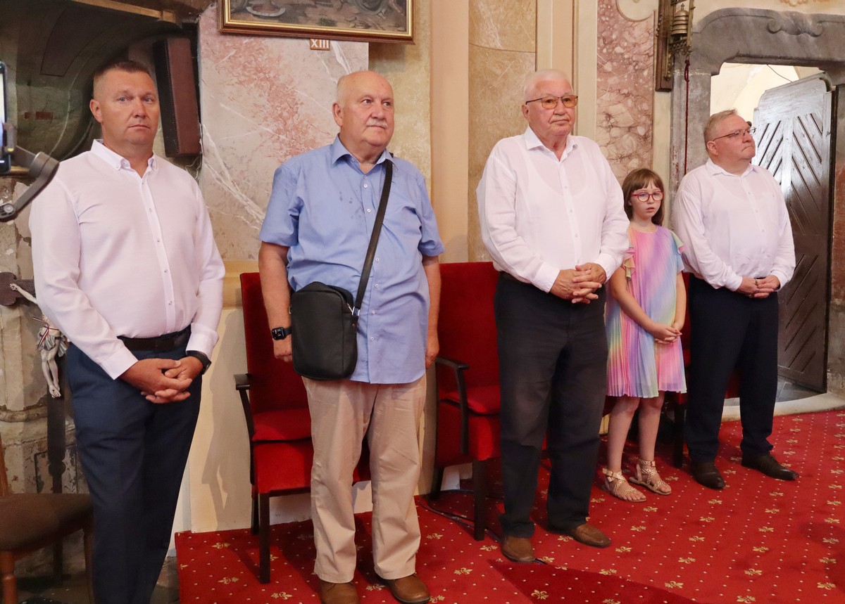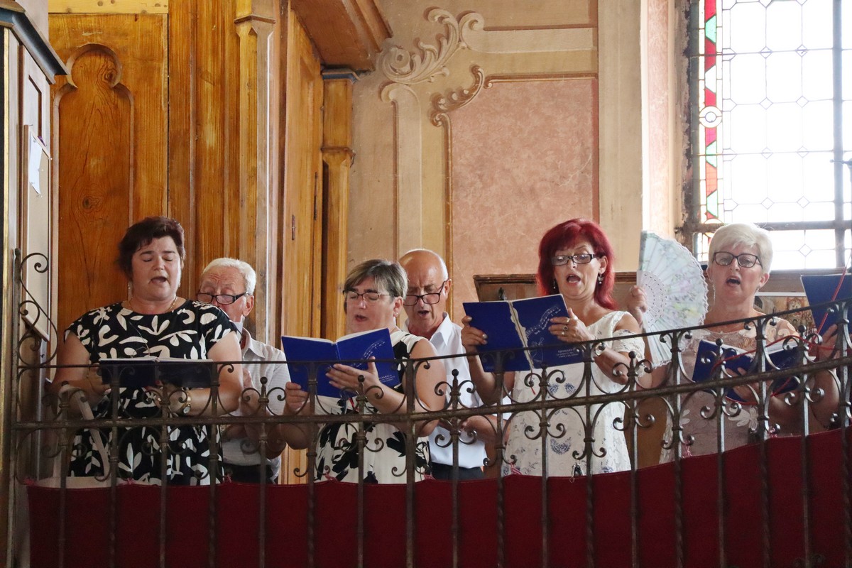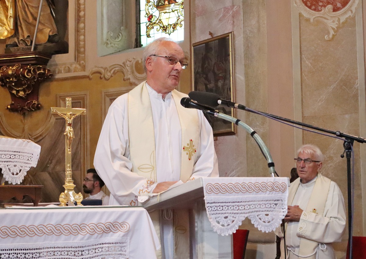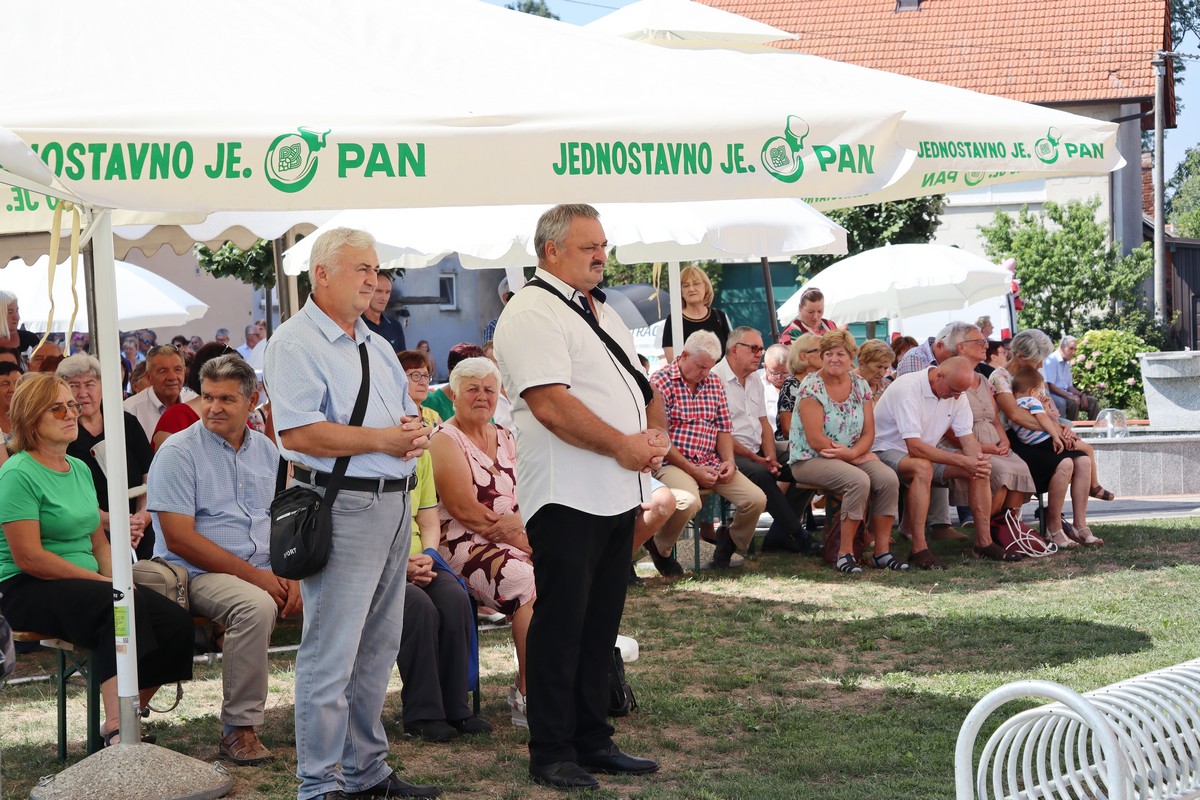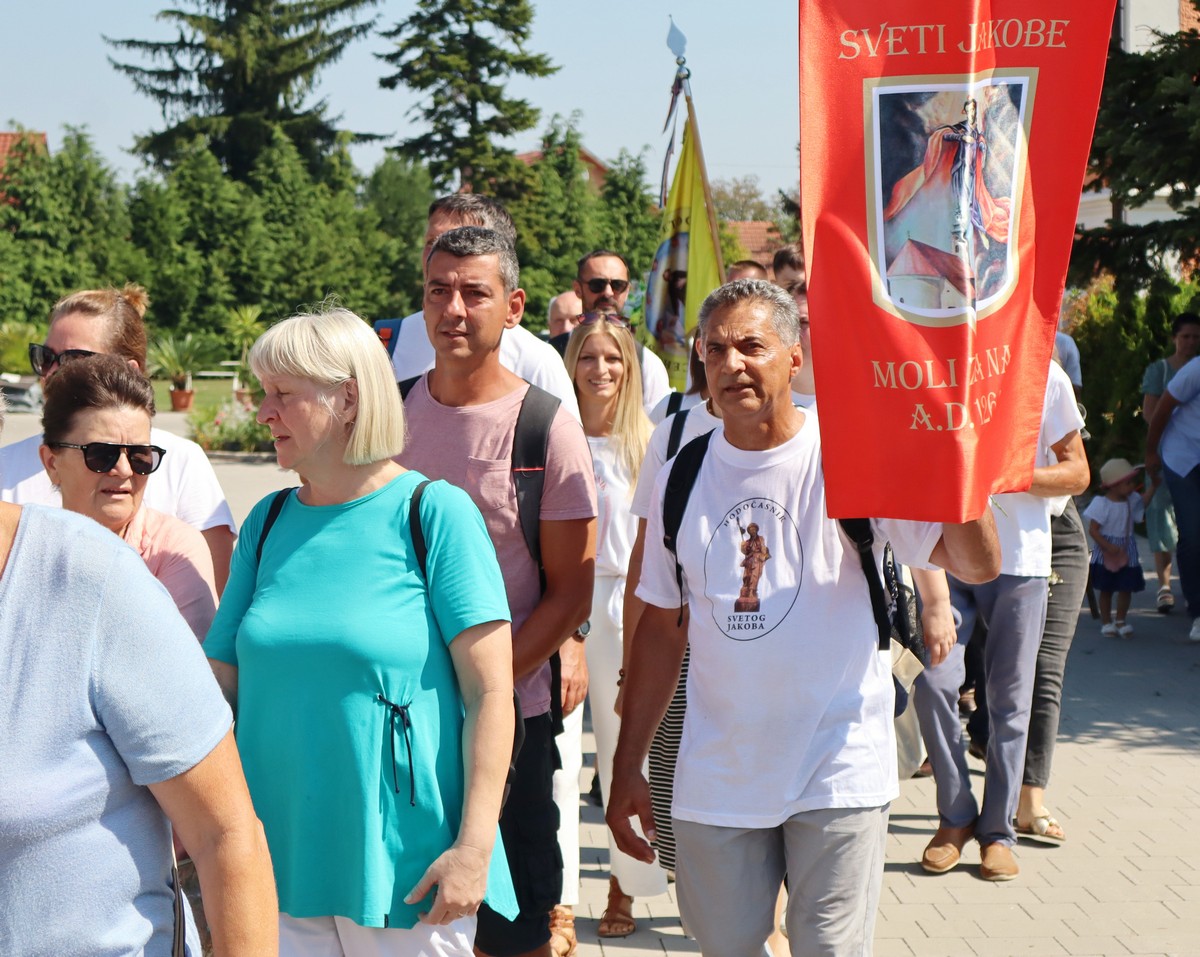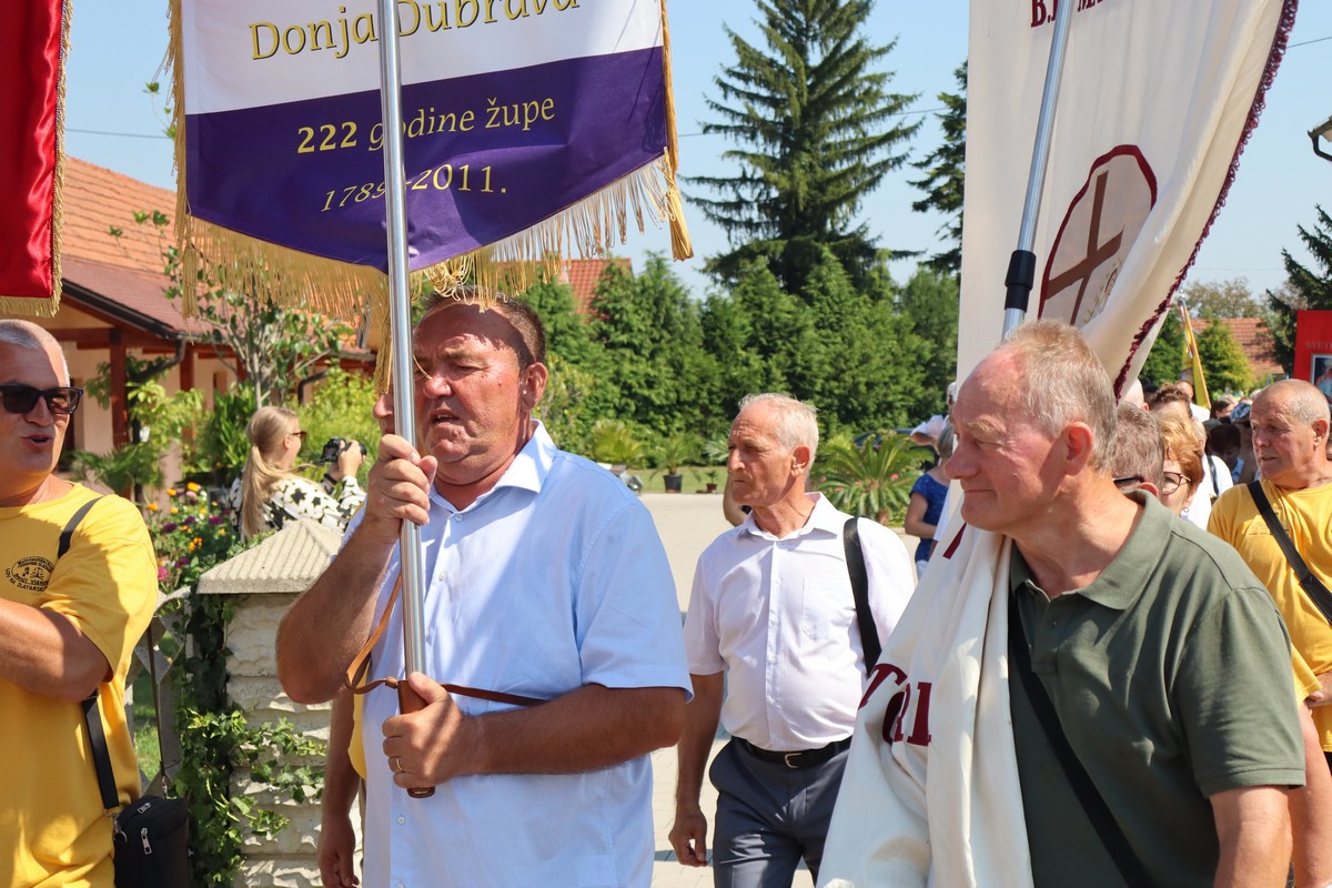 Povorka hodočasnika okupila se u dvorištu farofa na osvježenju i zakusci, nakon čega su krenuli u crkvu Uznesenja Blažene Djevice Marije na Hodočasničku svetu misu u 11 sati, koju je predvodio prečasni Antun Štefan, župnik iz Štefanca.