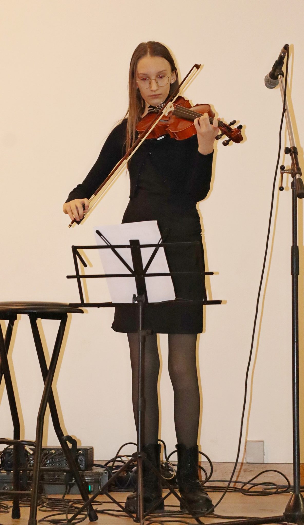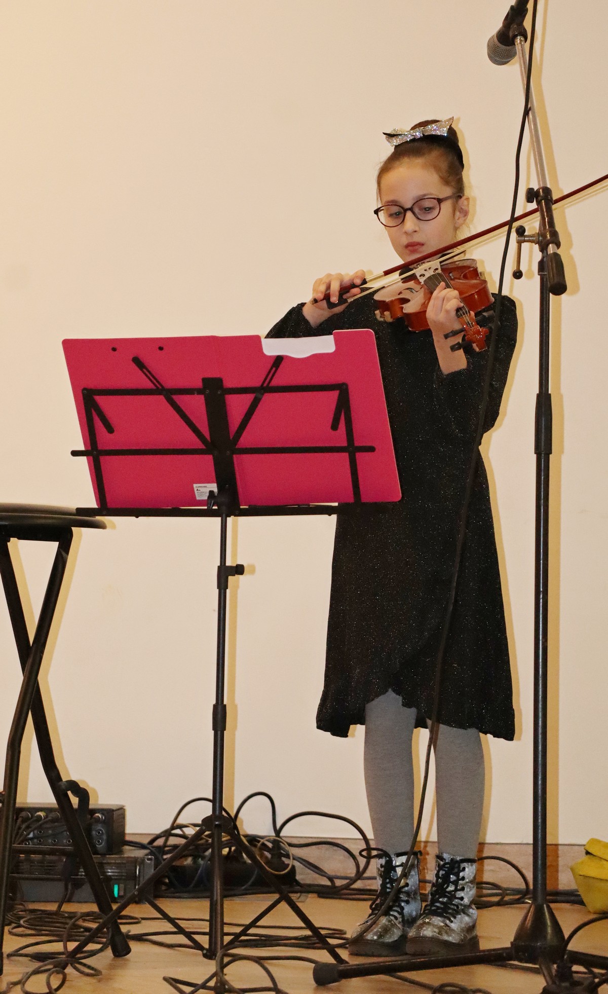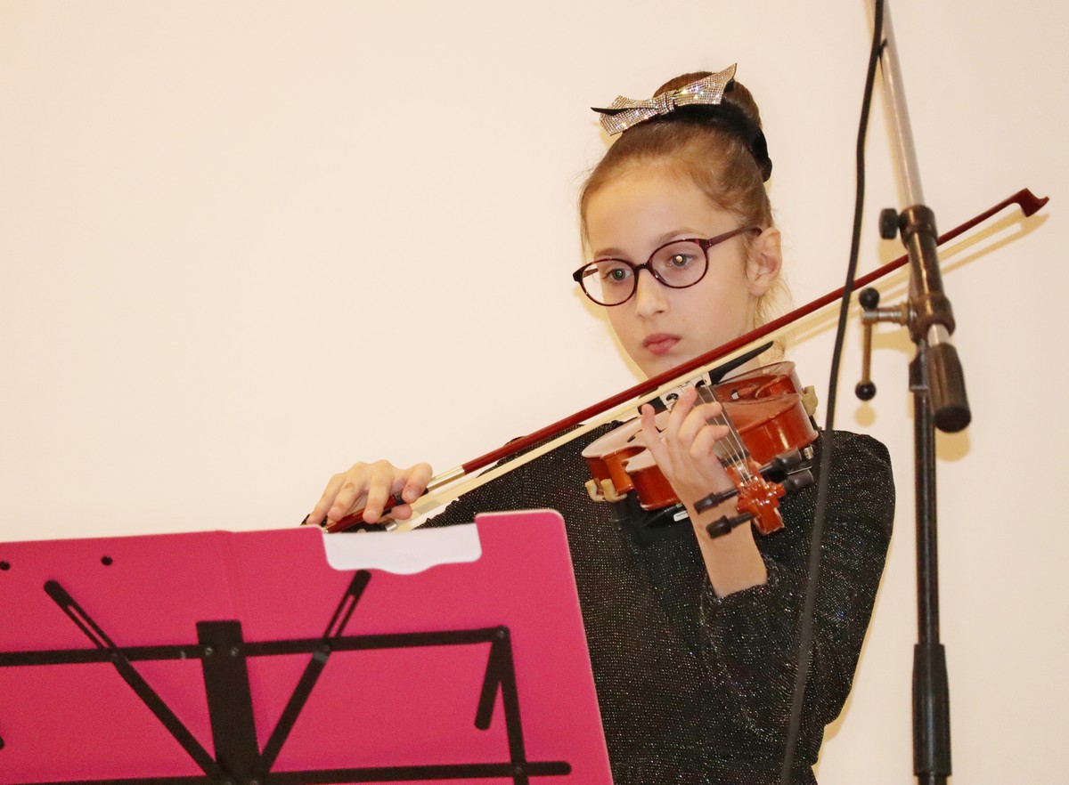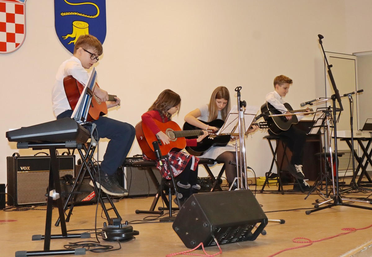 Dvoranom su se orili zvukovi vokala te različitih instrumenata, kao što su violina, sintisajzer, glasovir, klarinet, harmonika, gitare i ukulele, a u solo ili skupnoj izvedbi roditelji, bake i djedovi mogli su čuti izvedbe poznatih božićnih te ostalih pjesama kao što su „Carol of the Bells“, „Can’t take my exes of you“, „We wish you a merry Christmas“, „O Christmas tree“ ili „Sultans od swing“ Dire Straitsa, kao i poznatih klasika kao što su „Solfeggio“ Johana Sebastiana Bacha ili „Mala serenada“ Josepha Haydna.