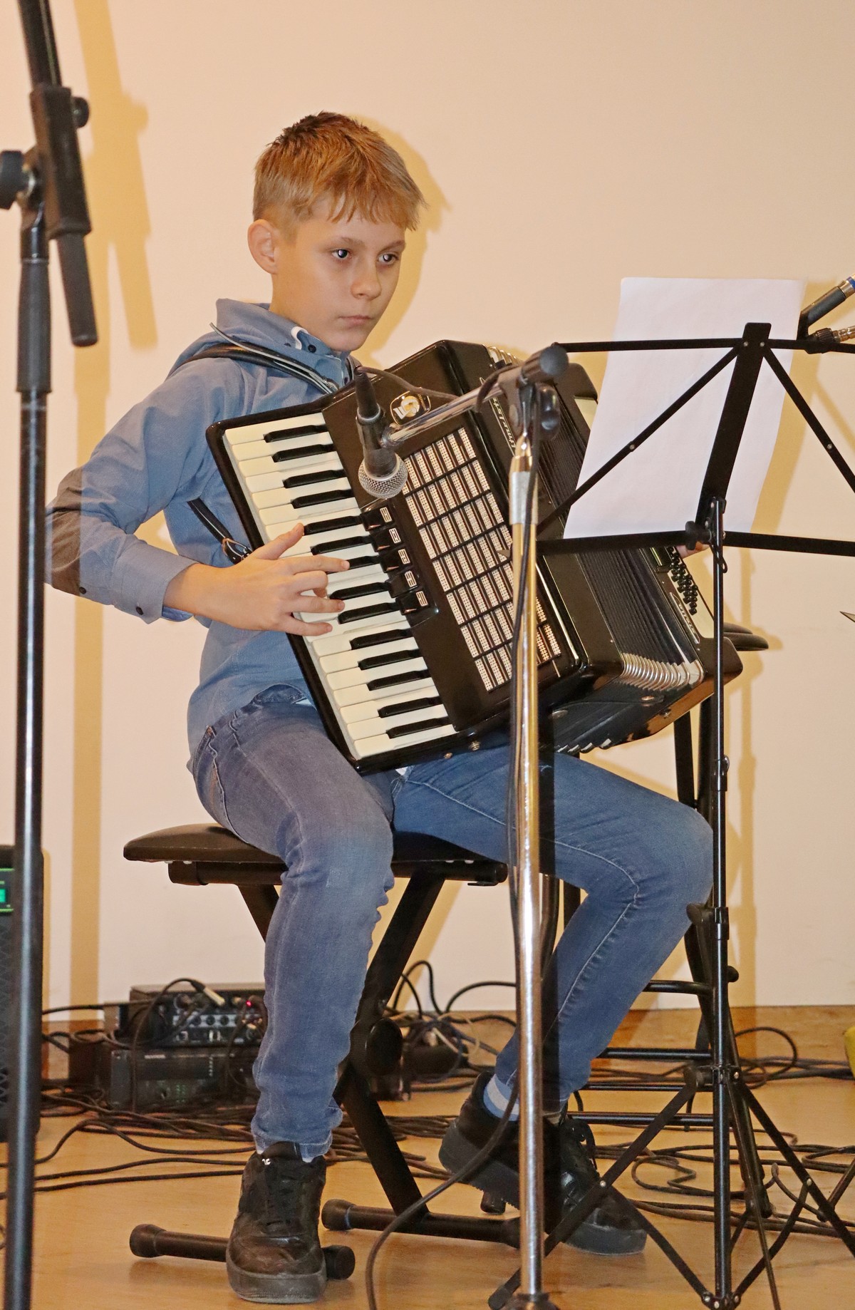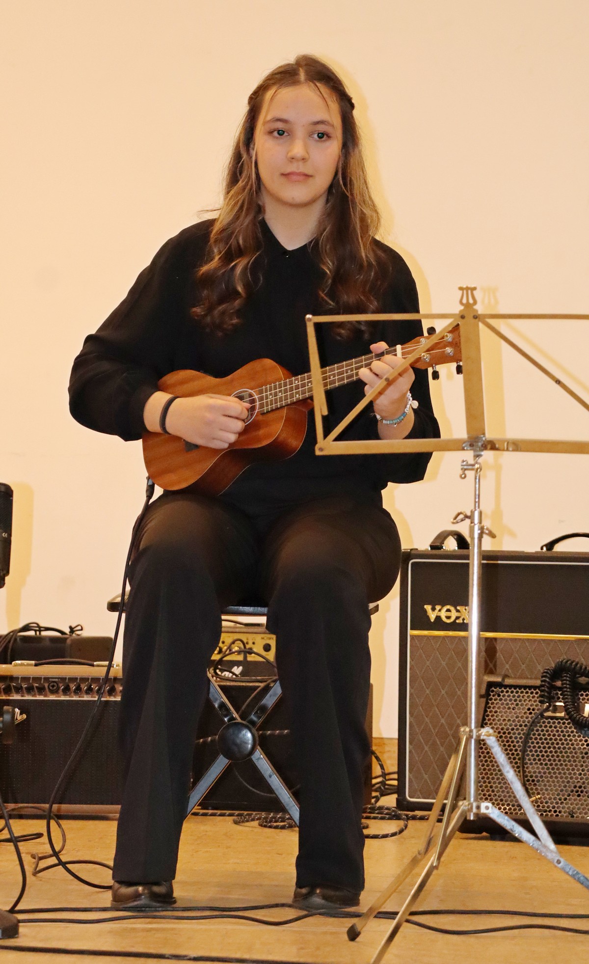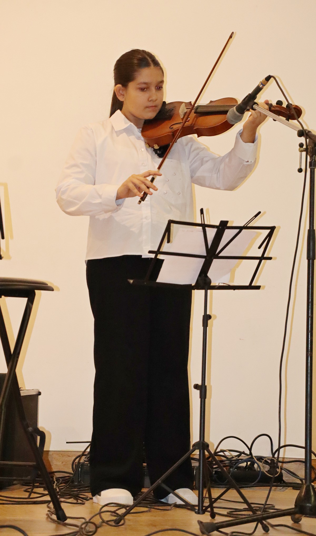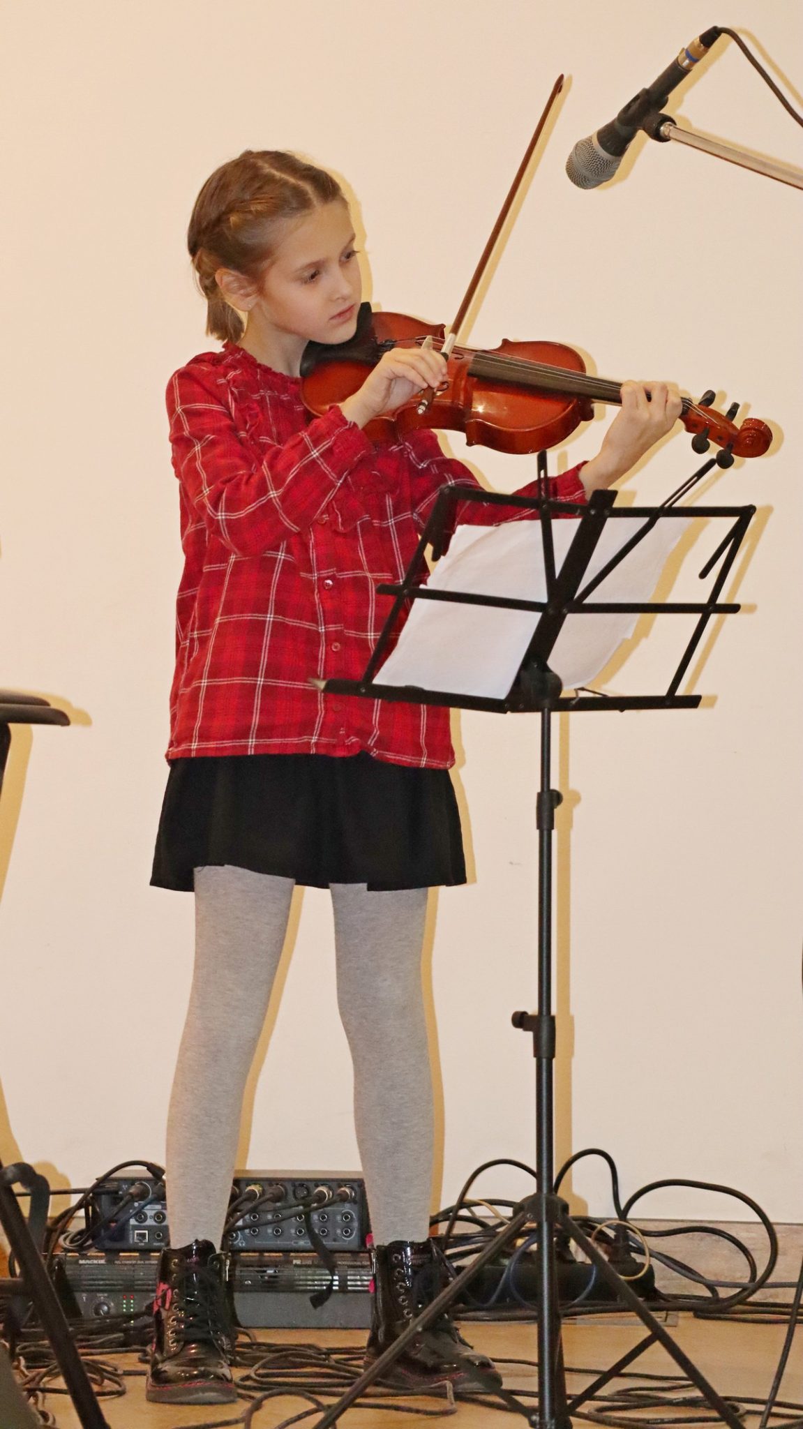 Dvoranom su se orili zvukovi vokala te različitih instrumenata, kao što su violina, sintisajzer, glasovir, klarinet, harmonika, gitare i ukulele, a u solo ili skupnoj izvedbi roditelji, bake i djedovi mogli su čuti izvedbe poznatih božićnih te ostalih pjesama kao što su „Carol of the Bells“, „Can’t take my exes of you“, „We wish you a merry Christmas“, „O Christmas tree“ ili „Sultans od swing“ Dire Straitsa, kao i poznatih klasika kao što su „Solfeggio“ Johana Sebastiana Bacha ili „Mala serenada“ Josepha Haydna.