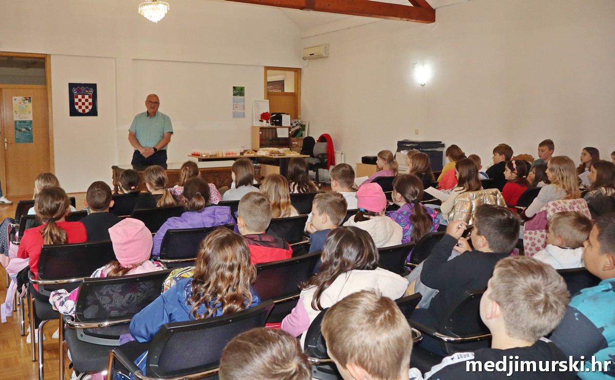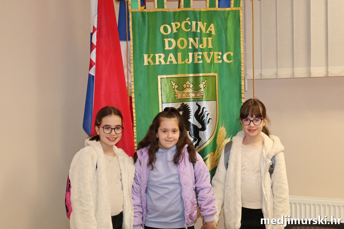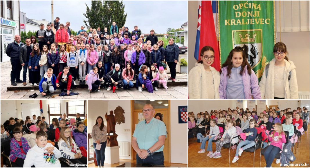 Više od 70 mališana od 1. do 4. razreda iz Osnovne škole Hodošan te njezinih područnih škola iz Svetog Jurja u Trnju i Palinovca, iz naselja Hodošan, Donji Hrašćan, Donji Pustakovec, Sveti Juraj u Trnju i Palinovec, zajedno s ravnateljem OŠ Hodošan Damirom Kovačićem i učiteljicama, posjetilo je danas, 6. svibnja 2025. godine Općinu Donji Kraljevec.