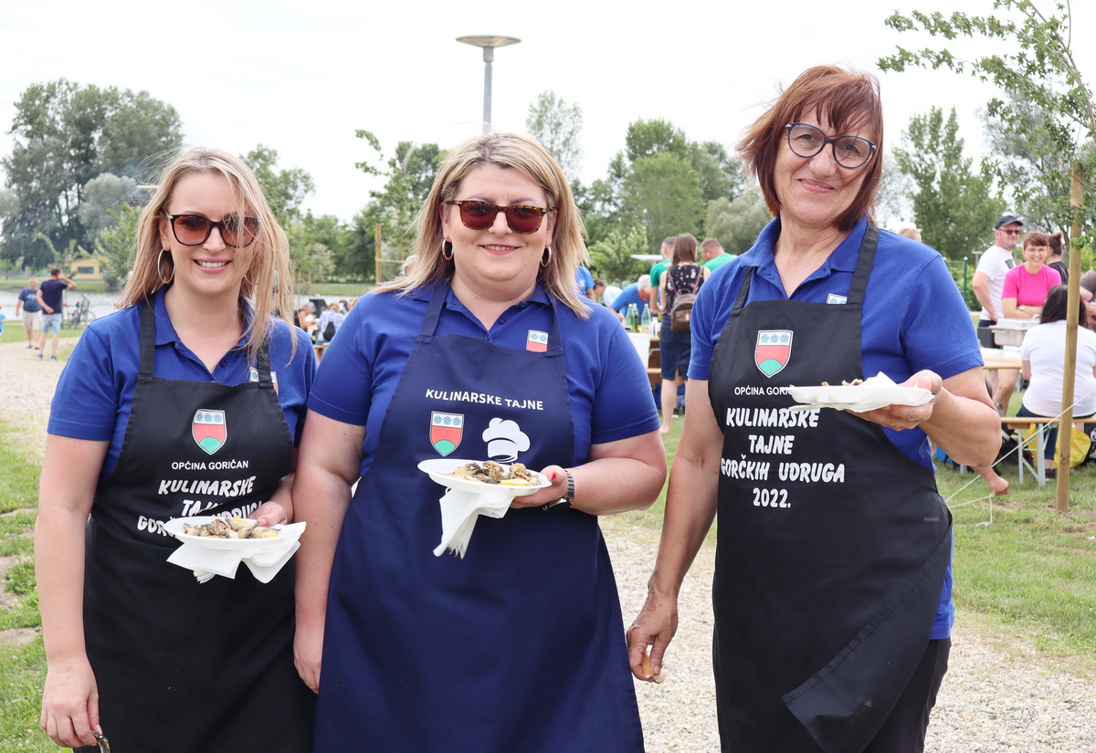 Tako se tu mogu naći, primjerice, juha od vrganja, pohani patuljasti somići, pečeni šnicli, dinstano meso s povrćem, pohana piletina i krumpir salata, meso s roštilja, hot dog, špageti bolonjez i dr. Ovom veselom druženju priključio se i načelnik Općine Goričan Emanuel Sinković, koji u ime tima općine kuha fiš paprikaš.